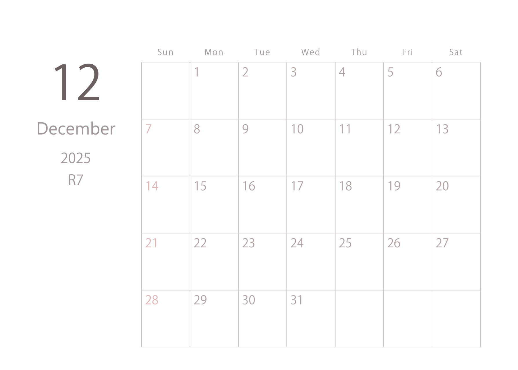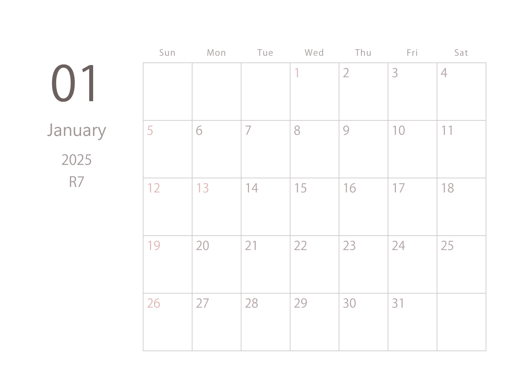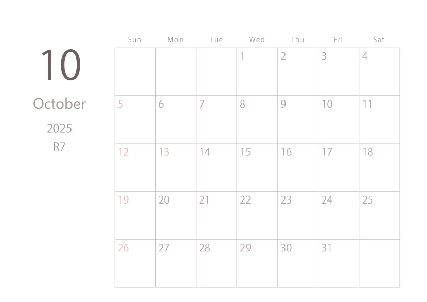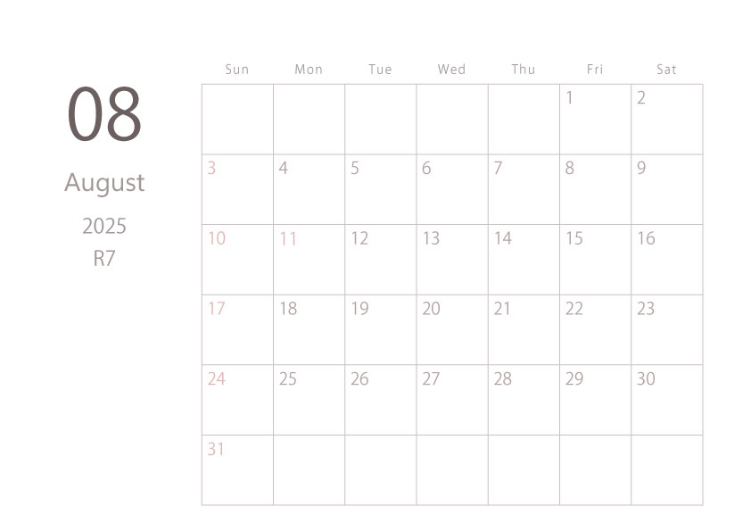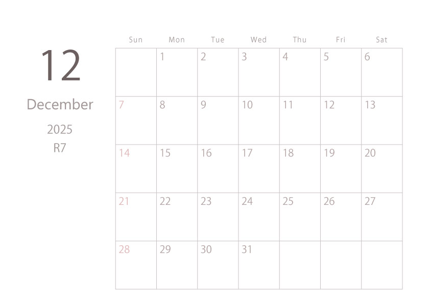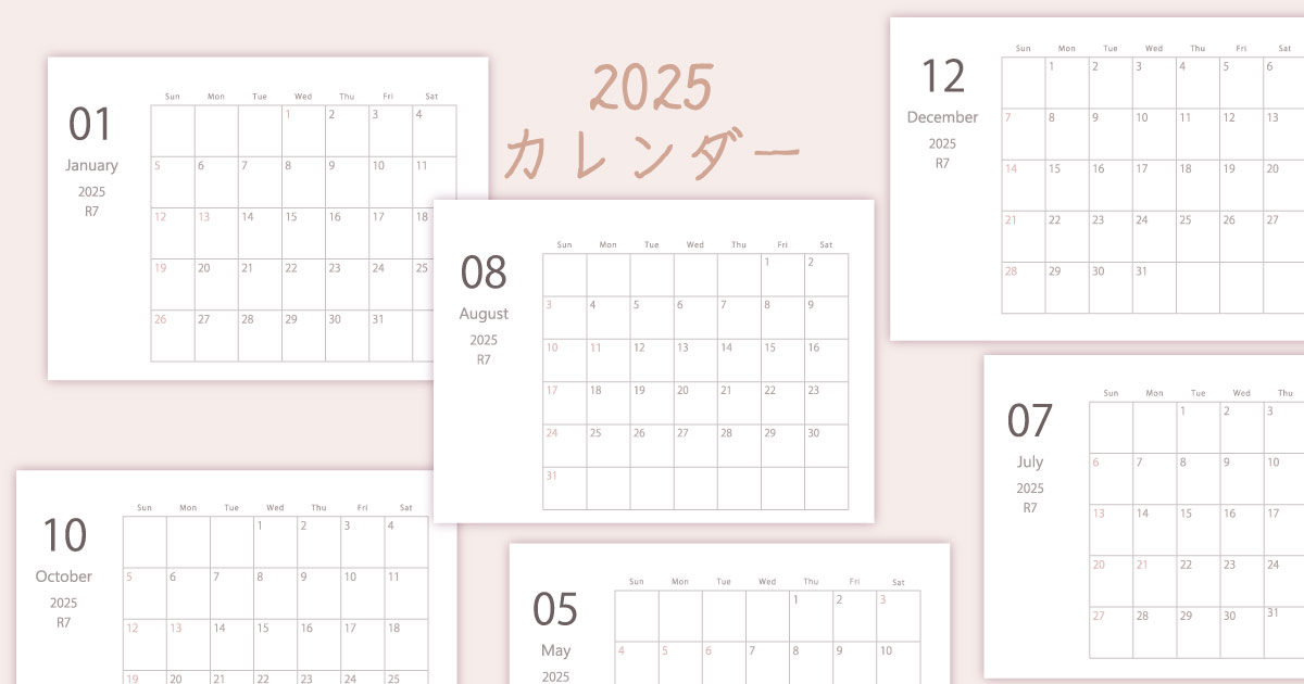 2025年令和7年カレンダー 横型01 12ヶ月分