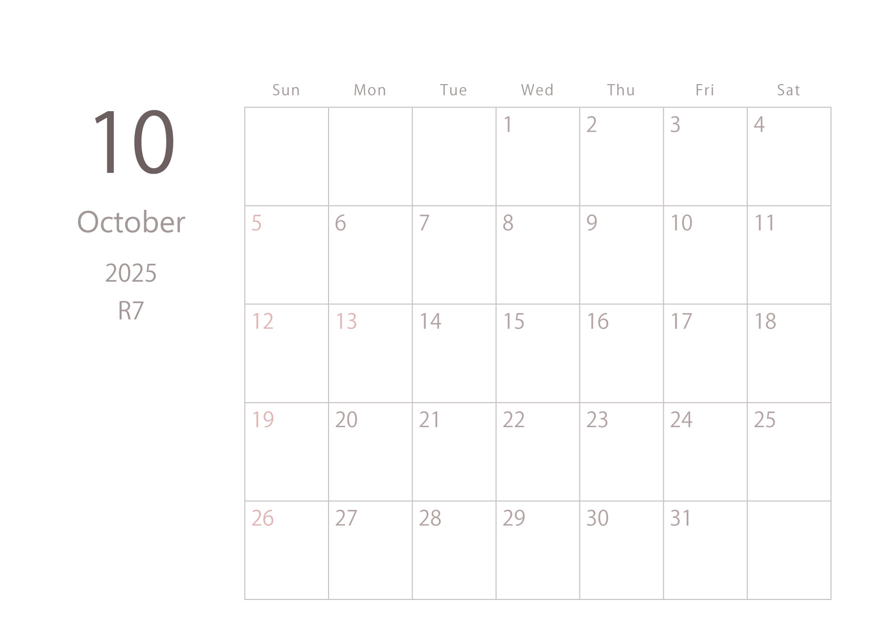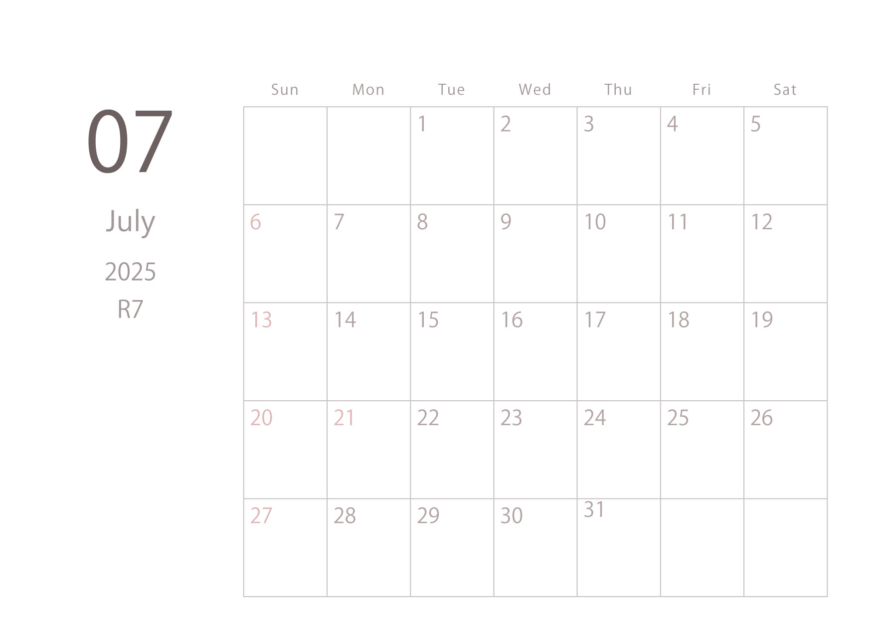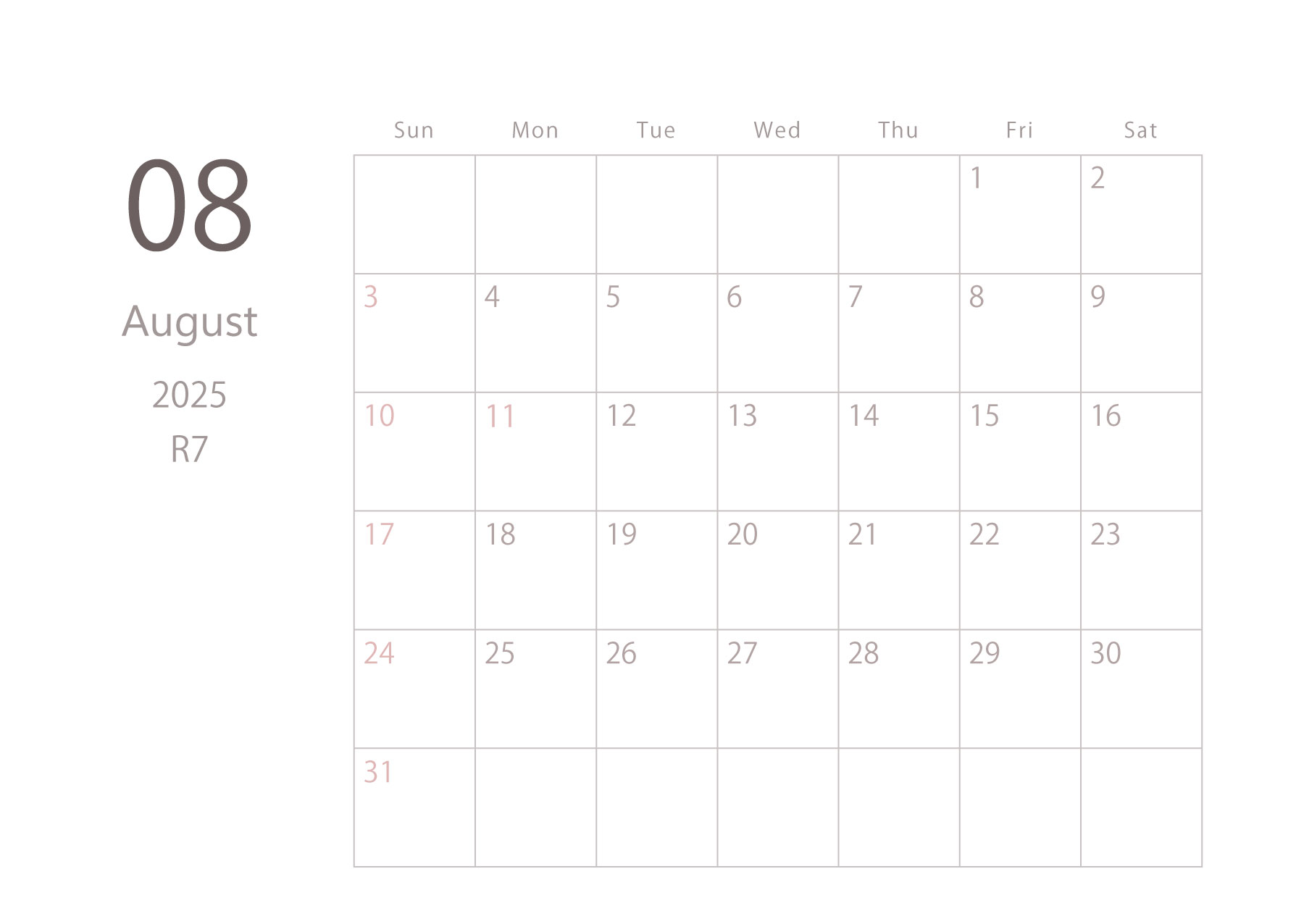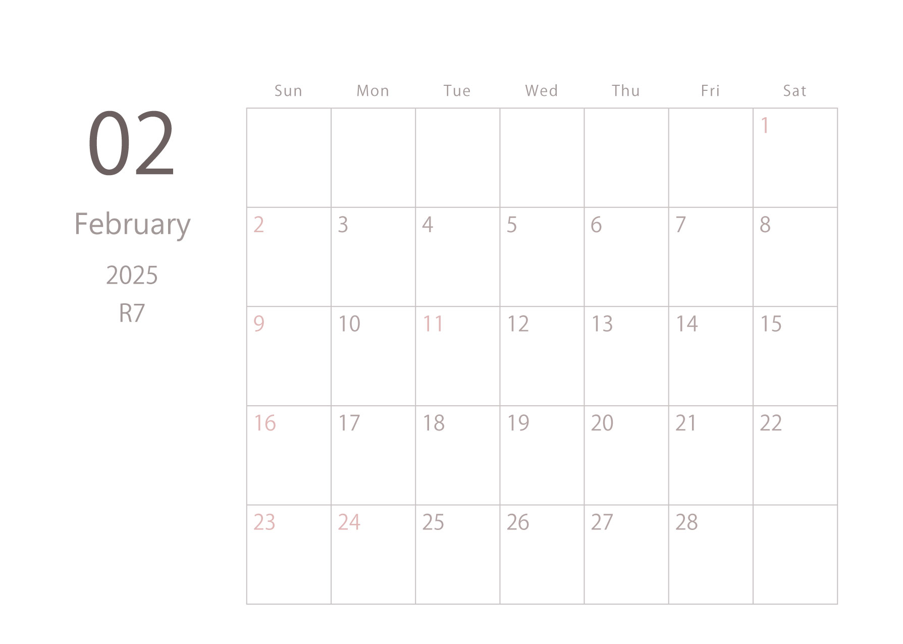 2025年令和7年カレンダー 横型01 12ヶ月分