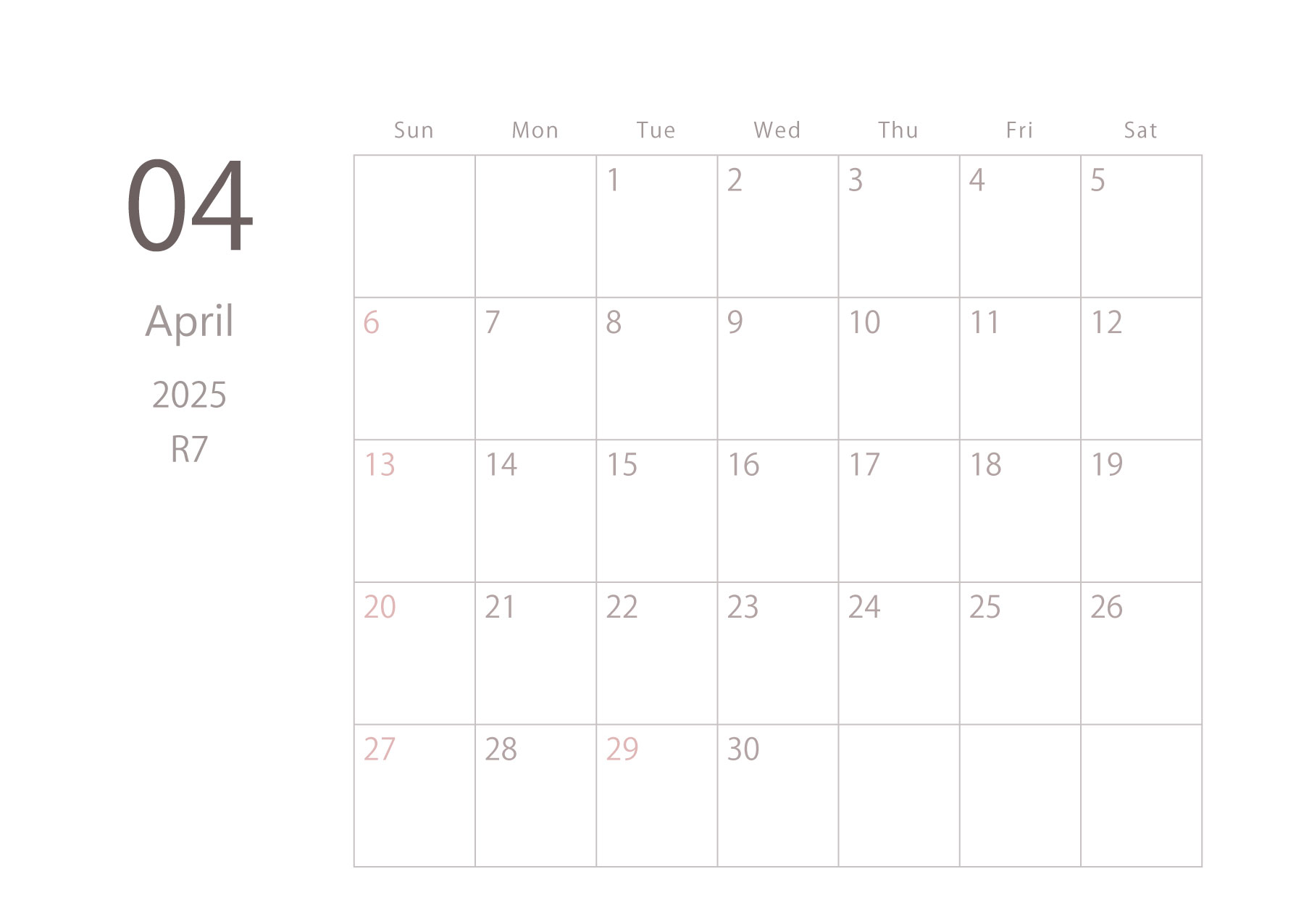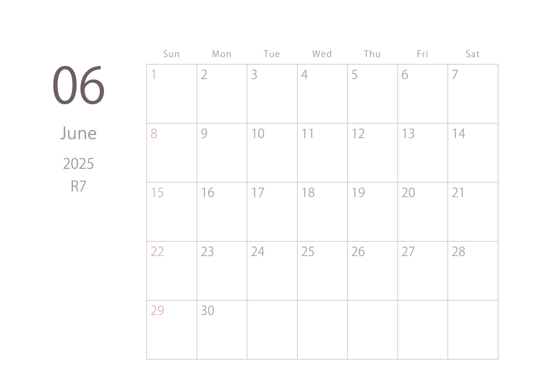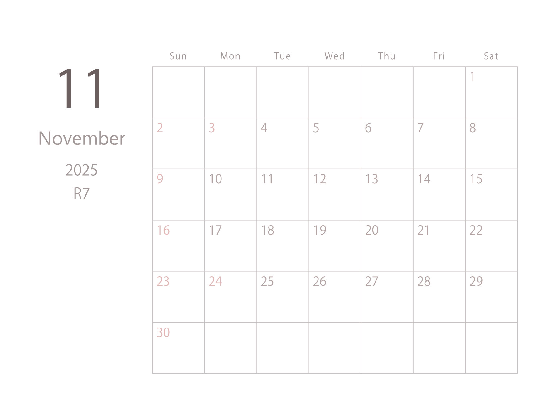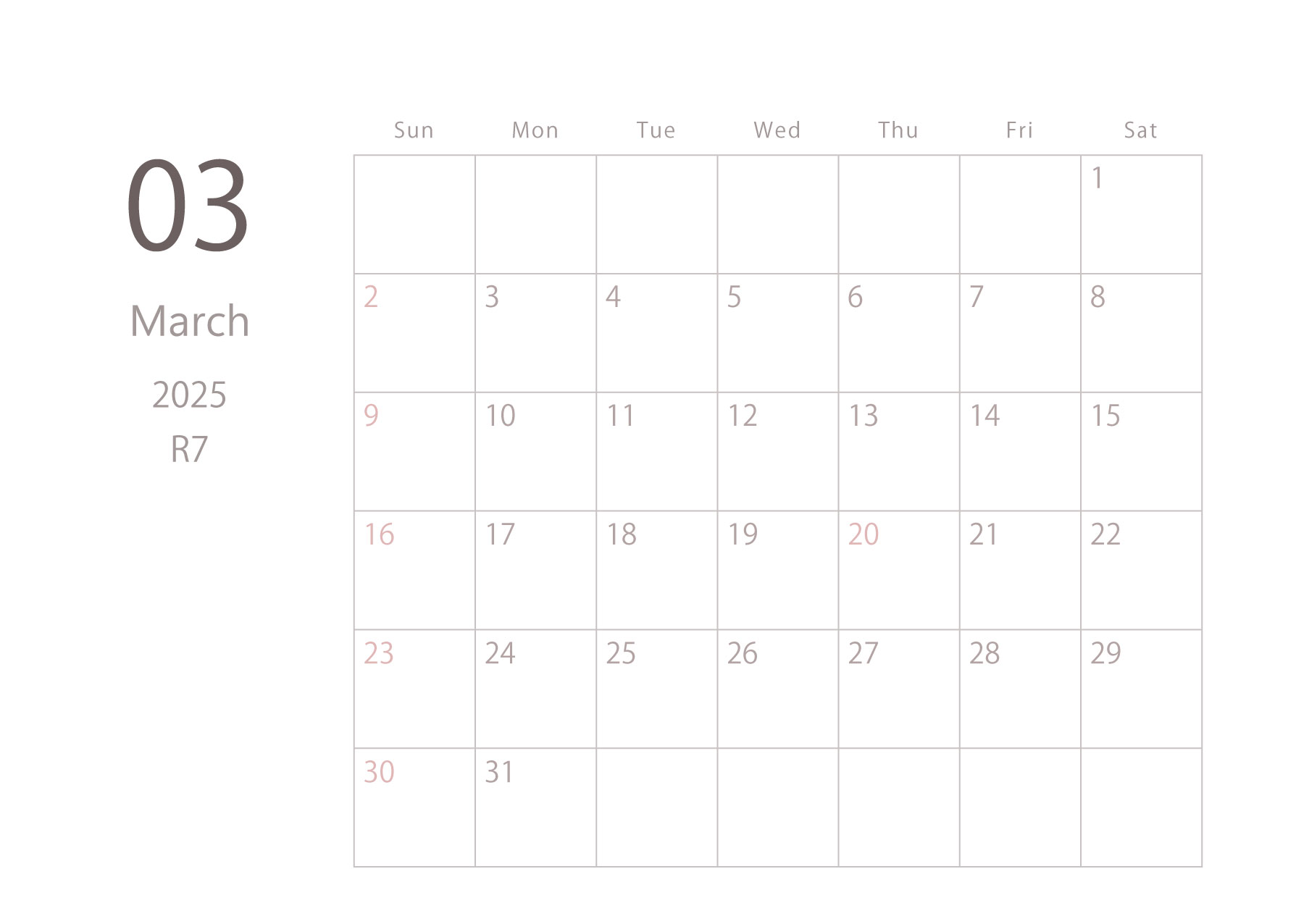 2025年令和7年カレンダー 横型01 12ヶ月分