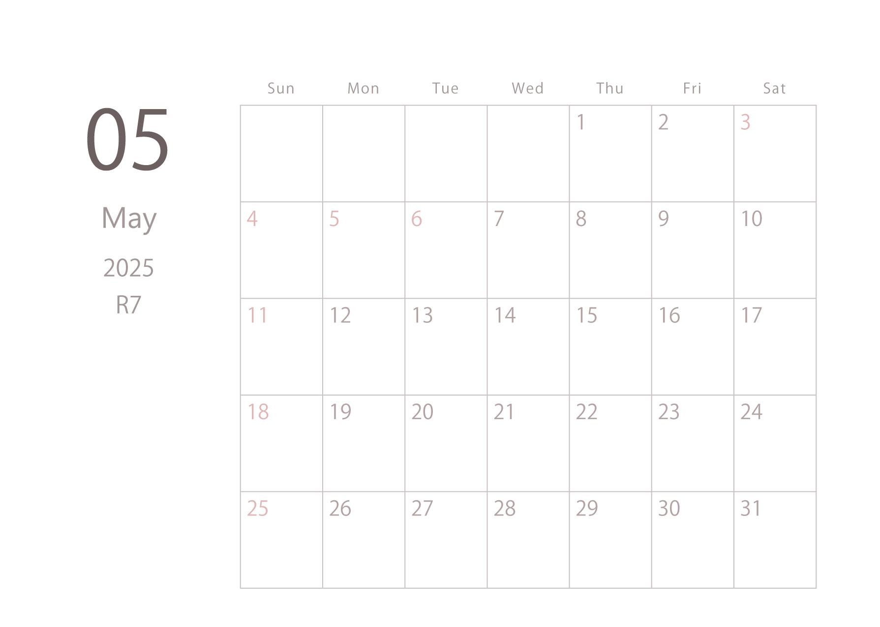 2025年令和7年カレンダー 横型01