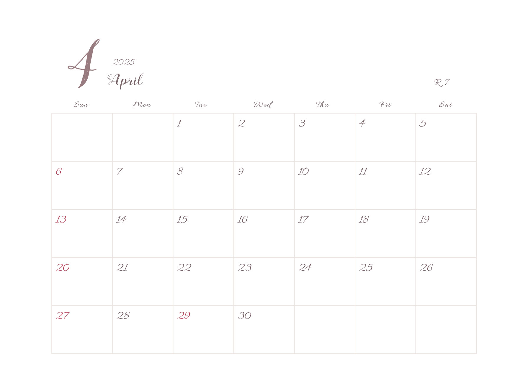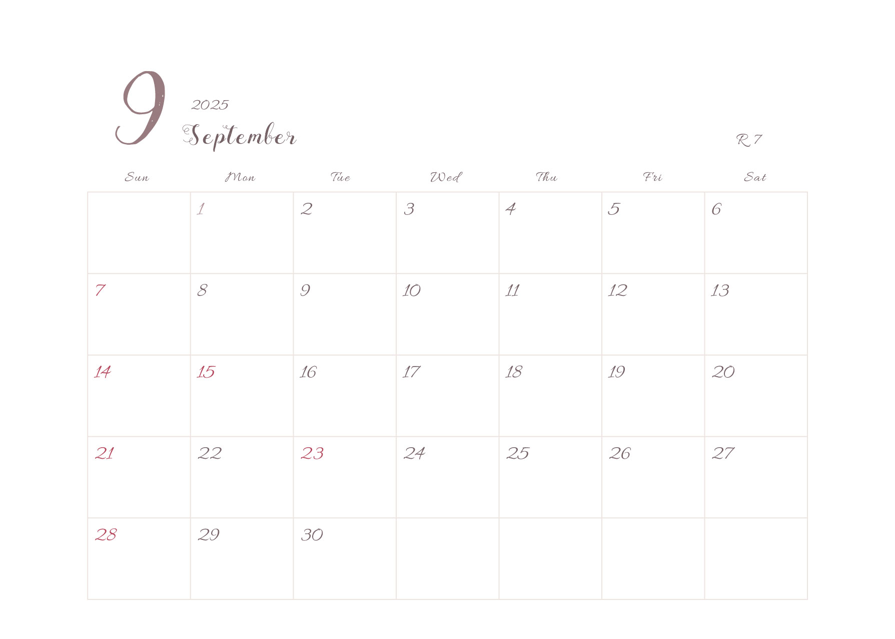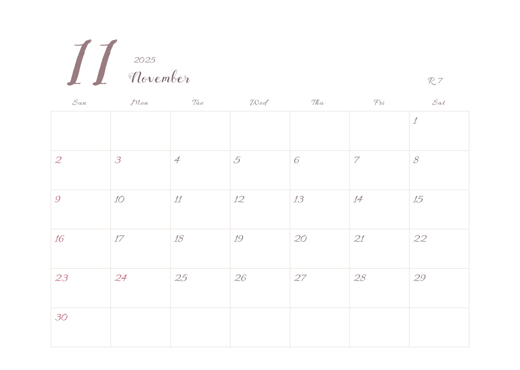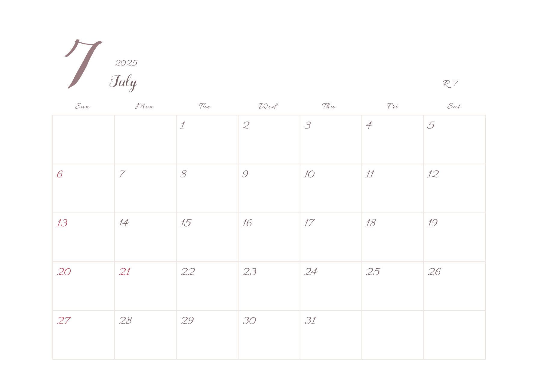 2025年令和7年カレンダー 横型03 12ヶ月分