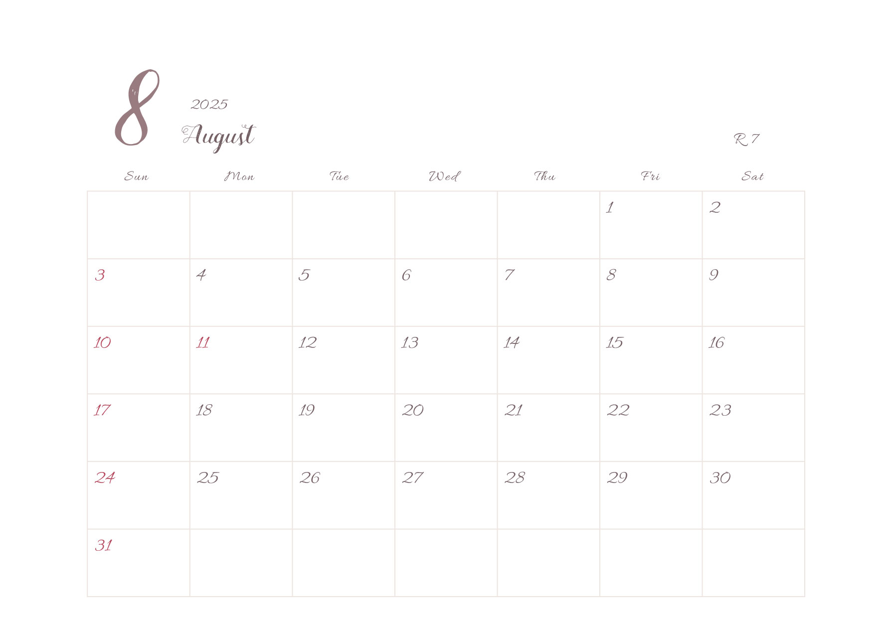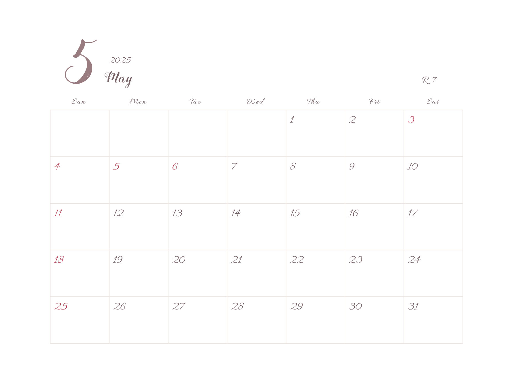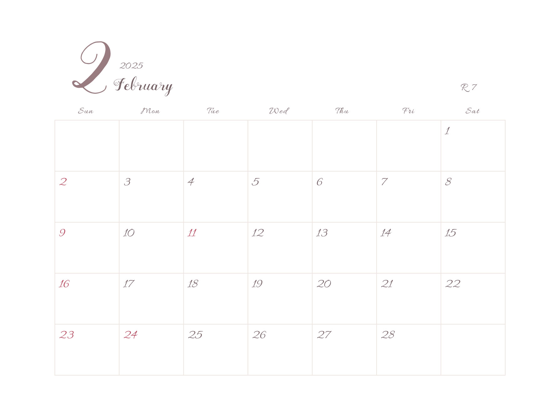 2025年令和7年カレンダー 横型03