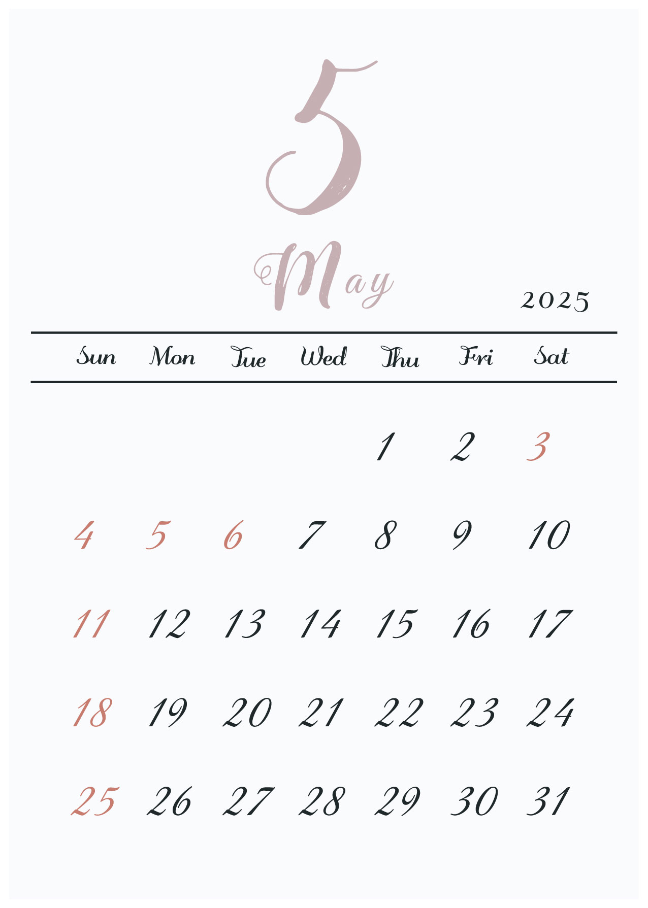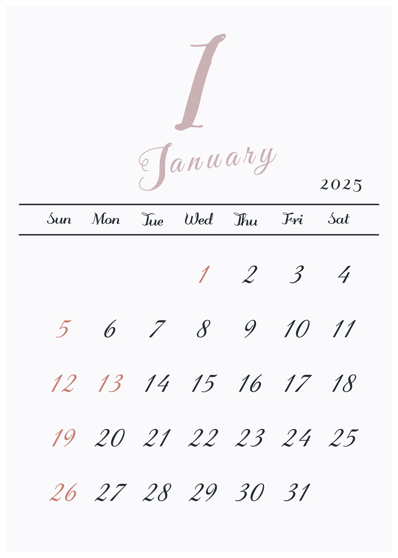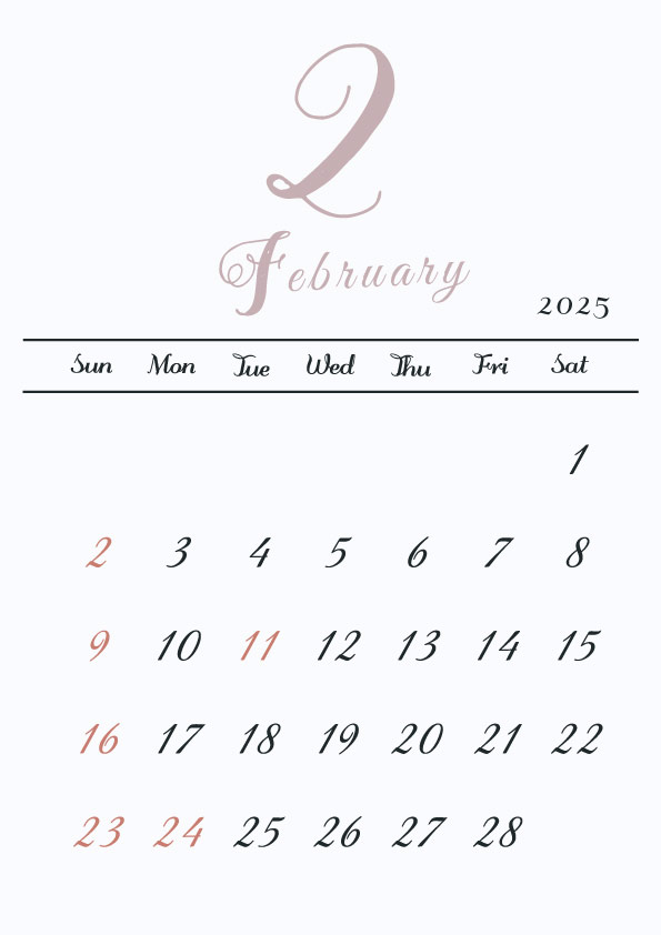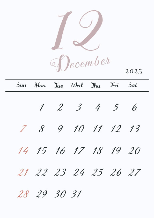 2025年令和7年の縦型カレンダー