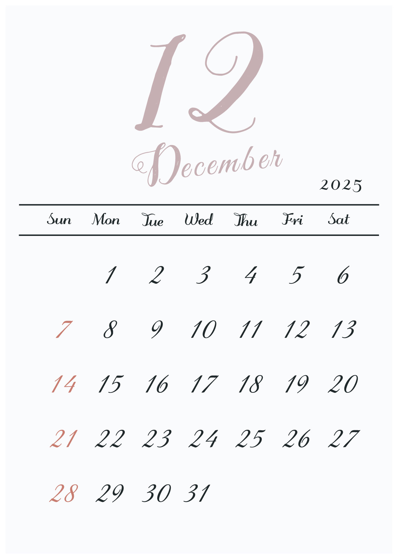 2025年令和7年カレンダー 縦型07 12ヶ月分