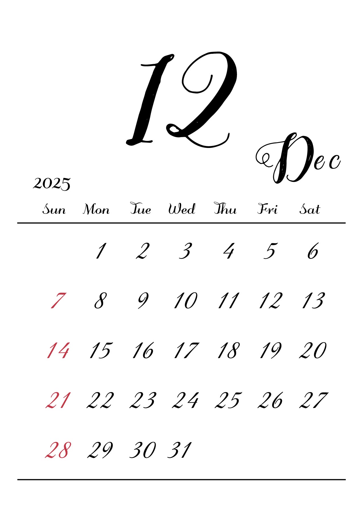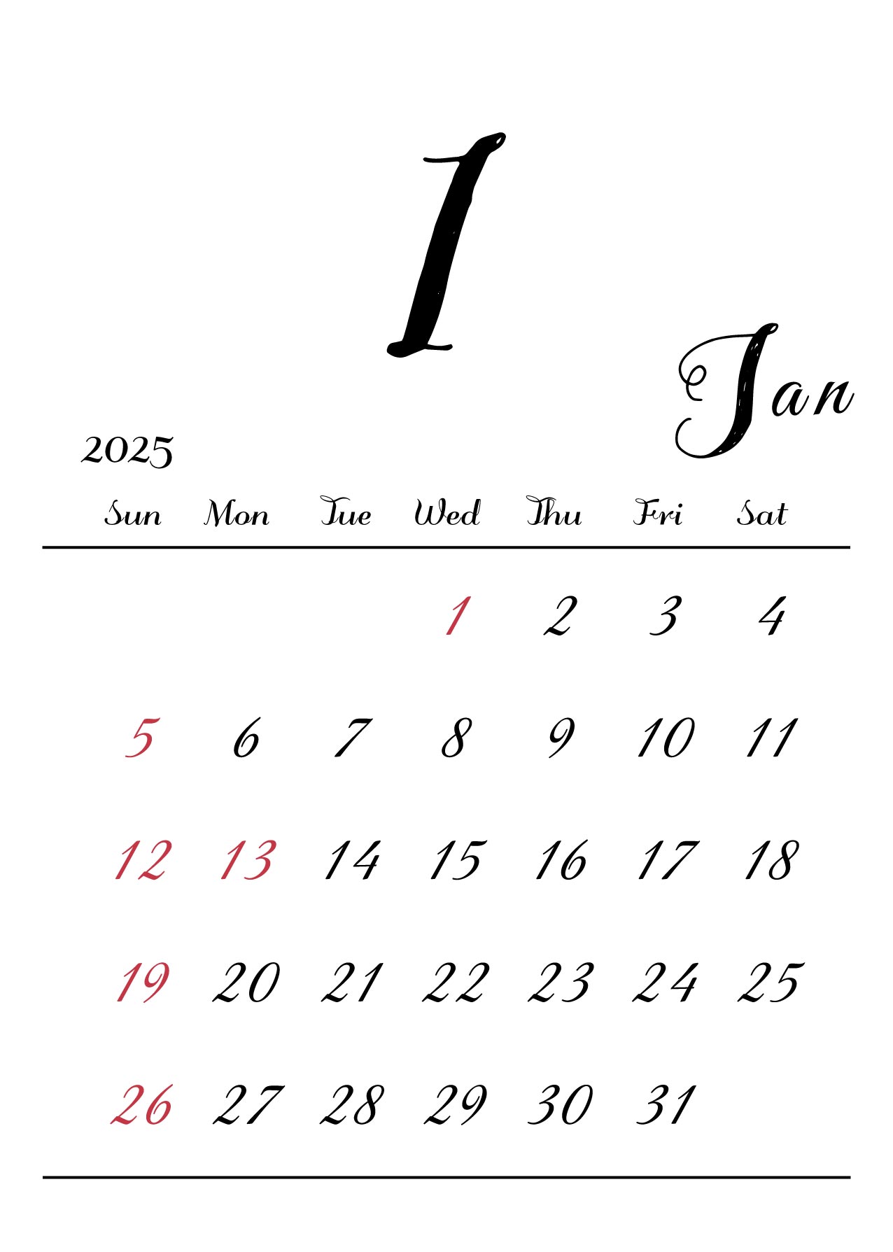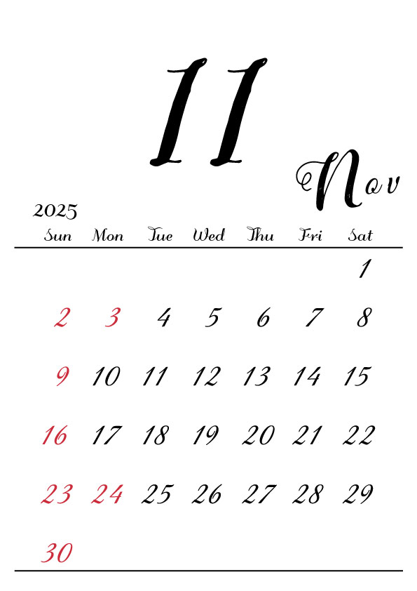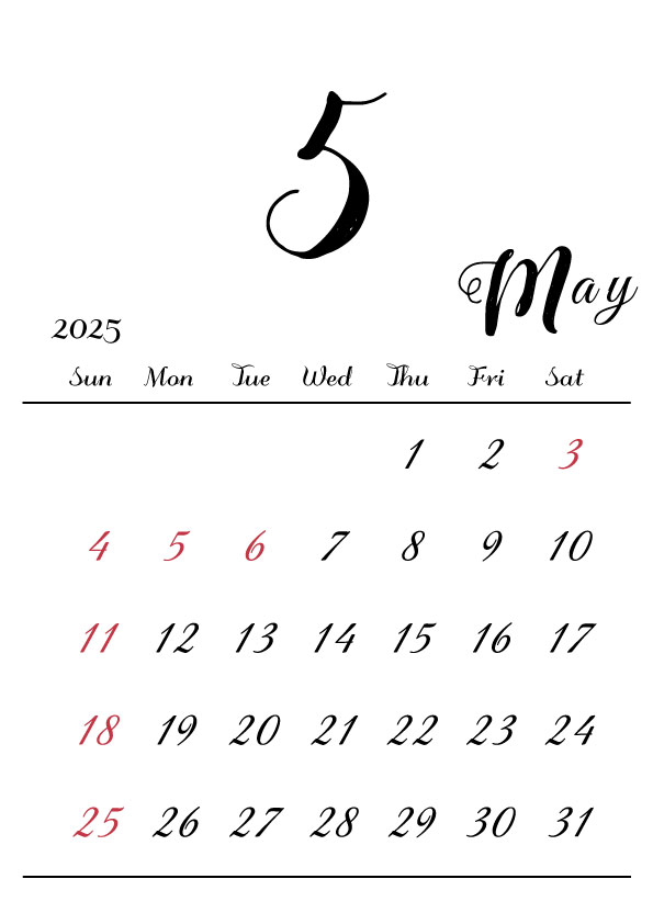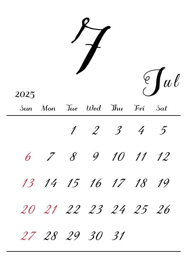 2025年令和7年の縦型カレンダー