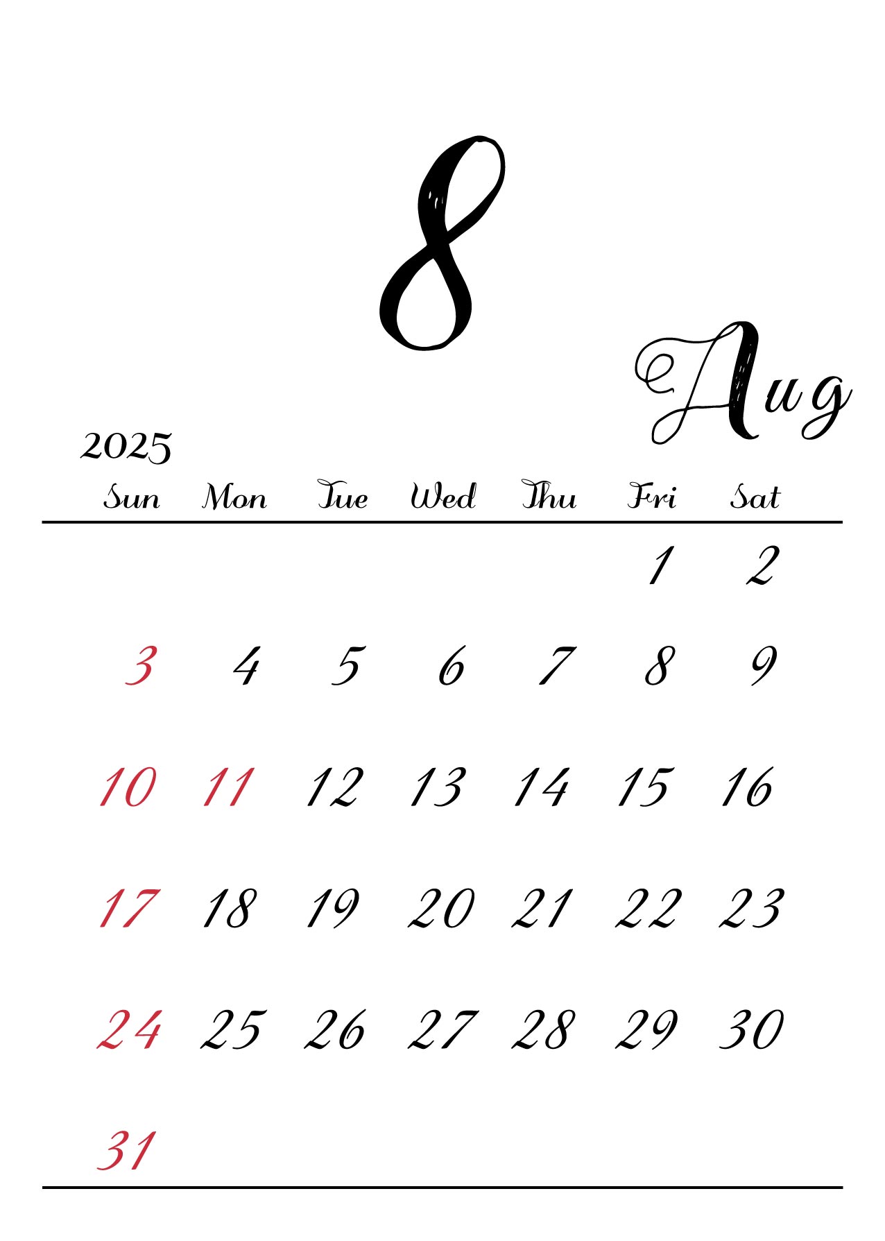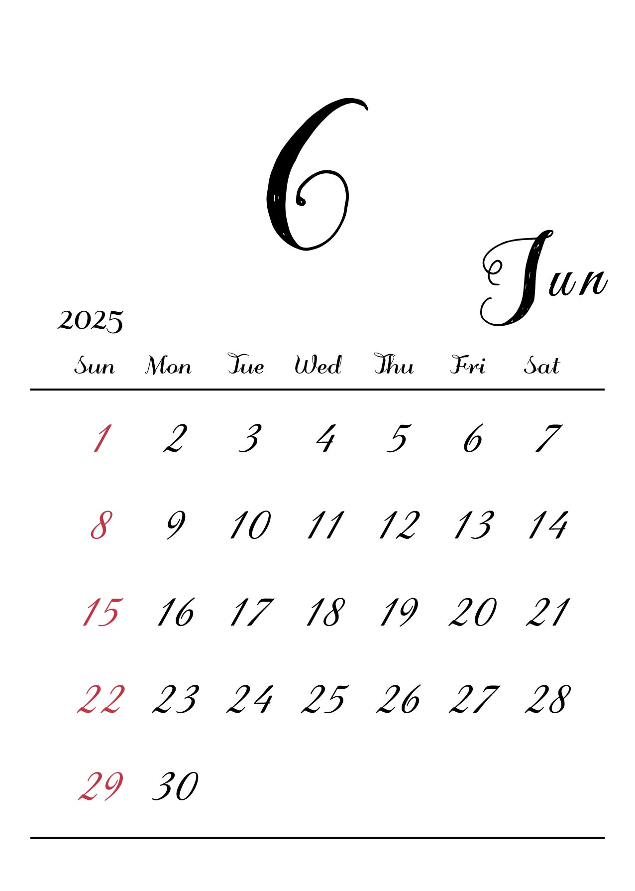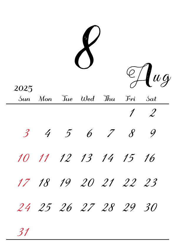 月の数字を大きくメインにしたシンプルでおしゃれなデザインです
