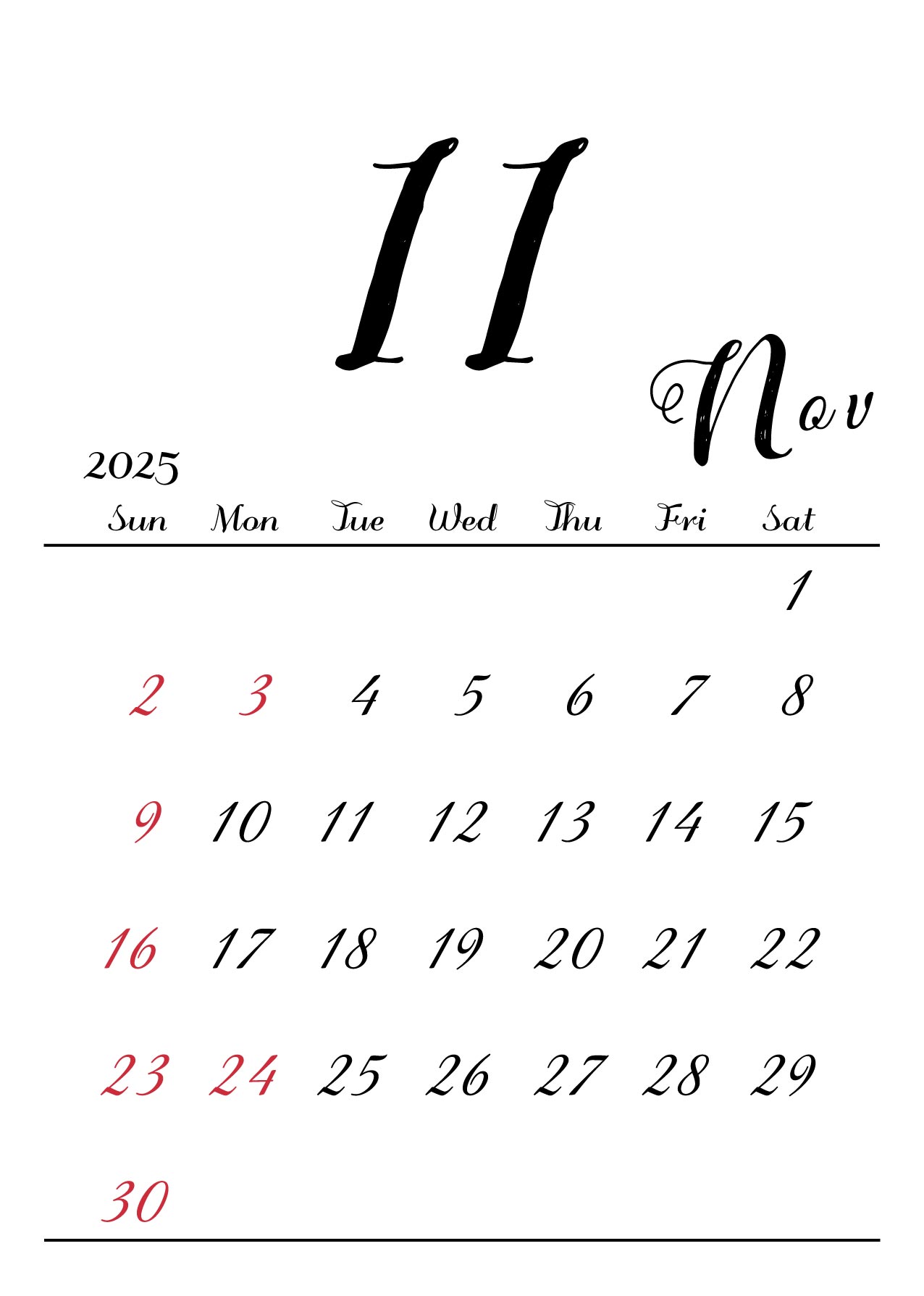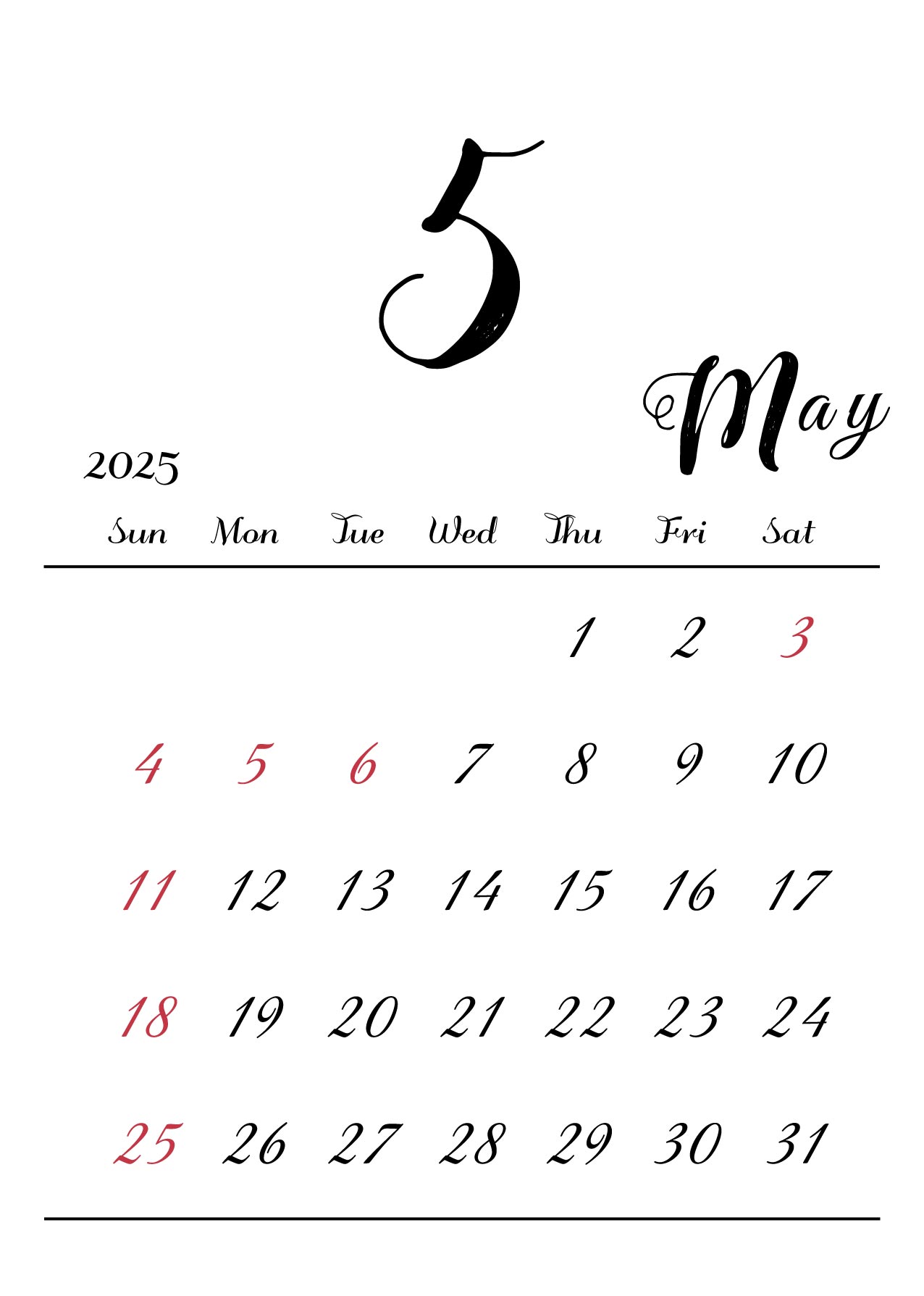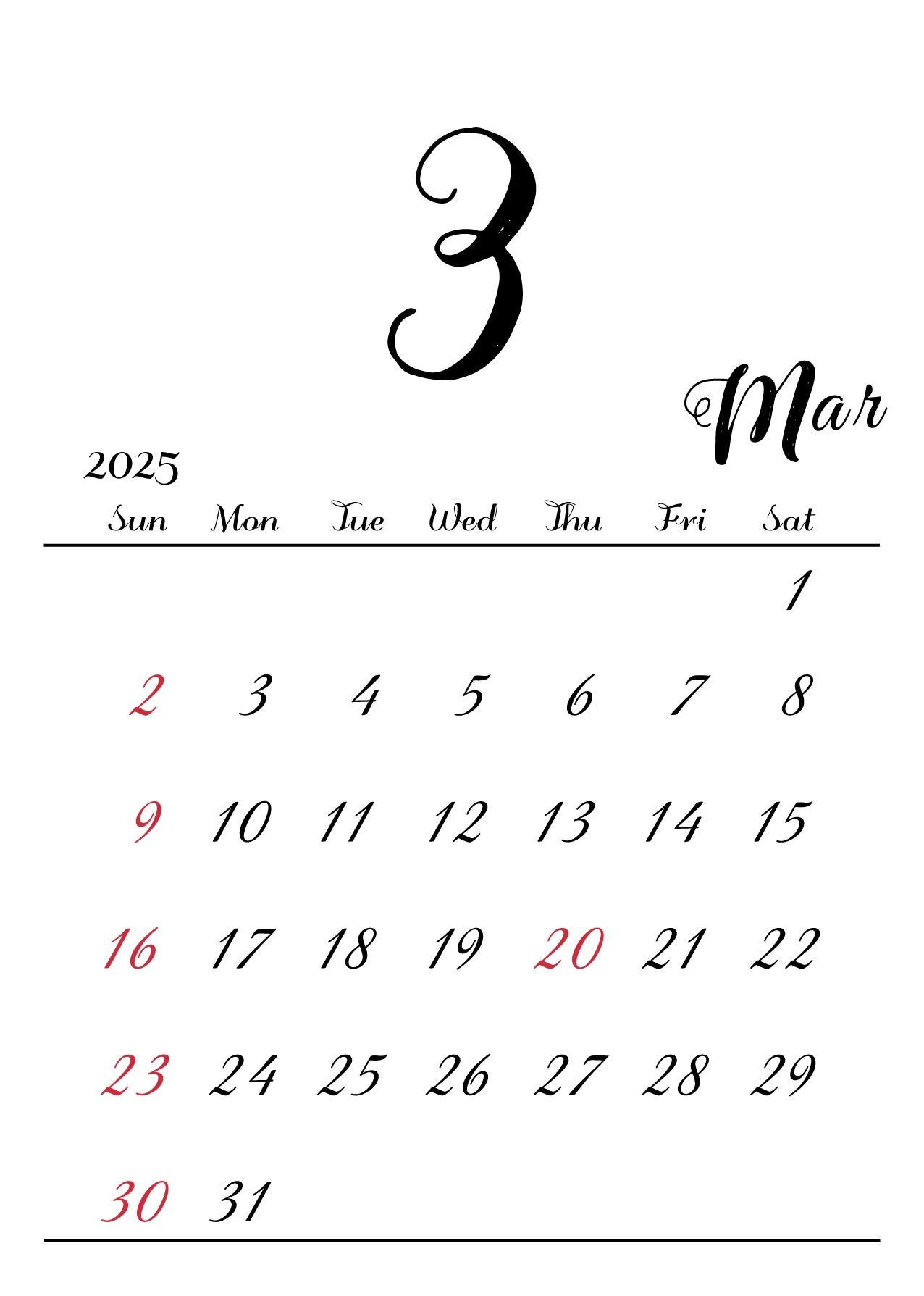 月の数字を大きくメインにしたシンプルでおしゃれなデザインです