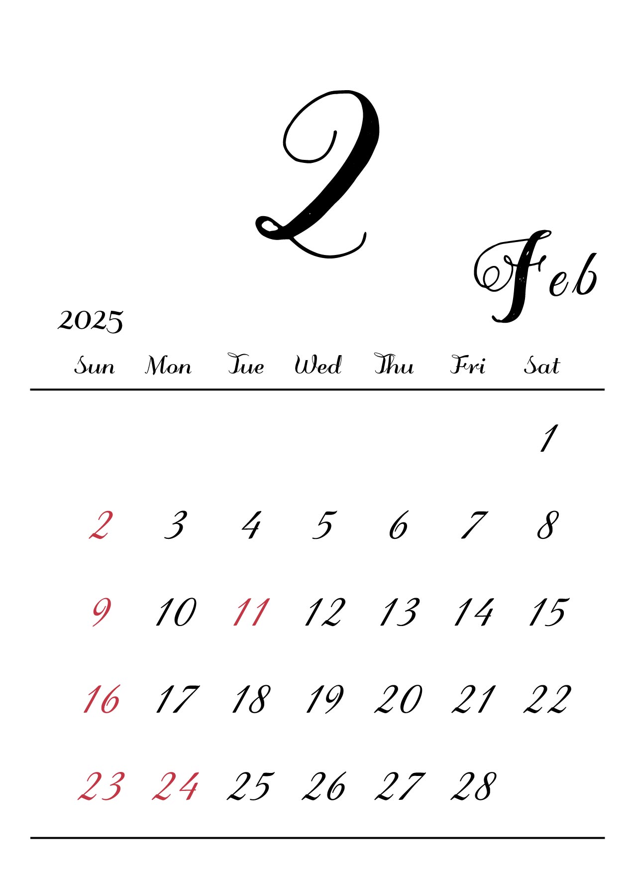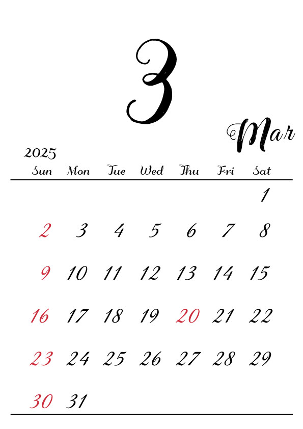 2025年令和7年カレンダー 縦型09