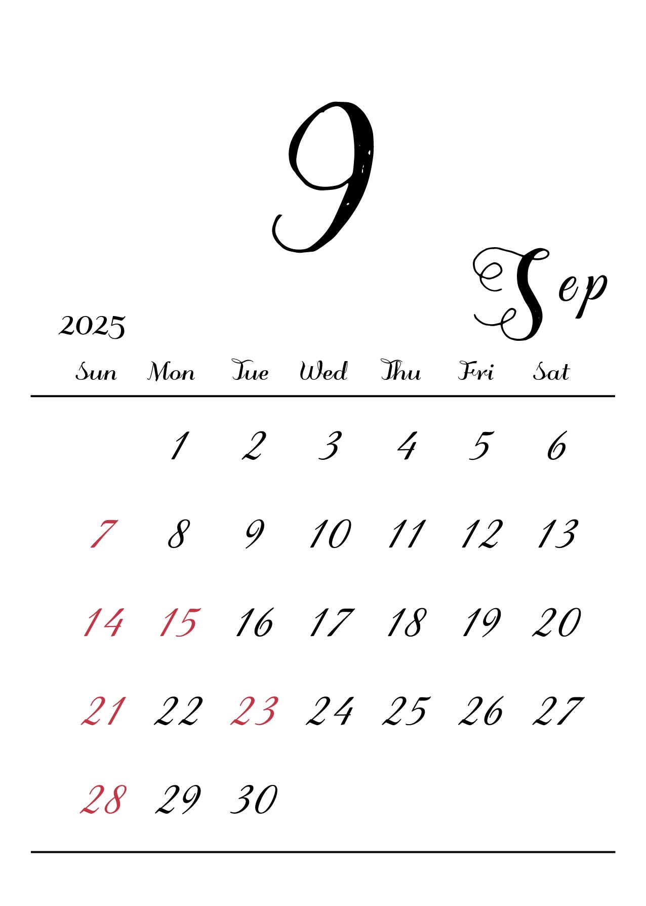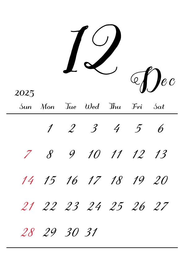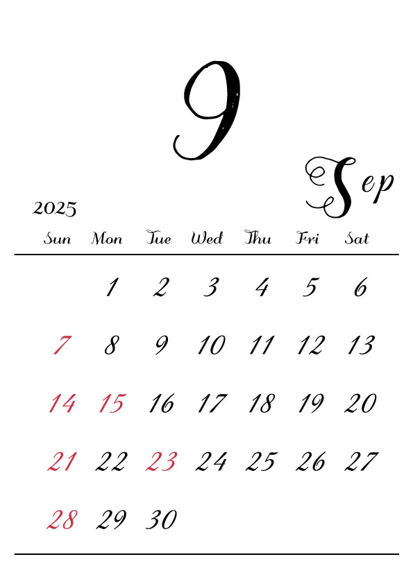2025年令和7年カレンダー 縦型09 12ヶ月分