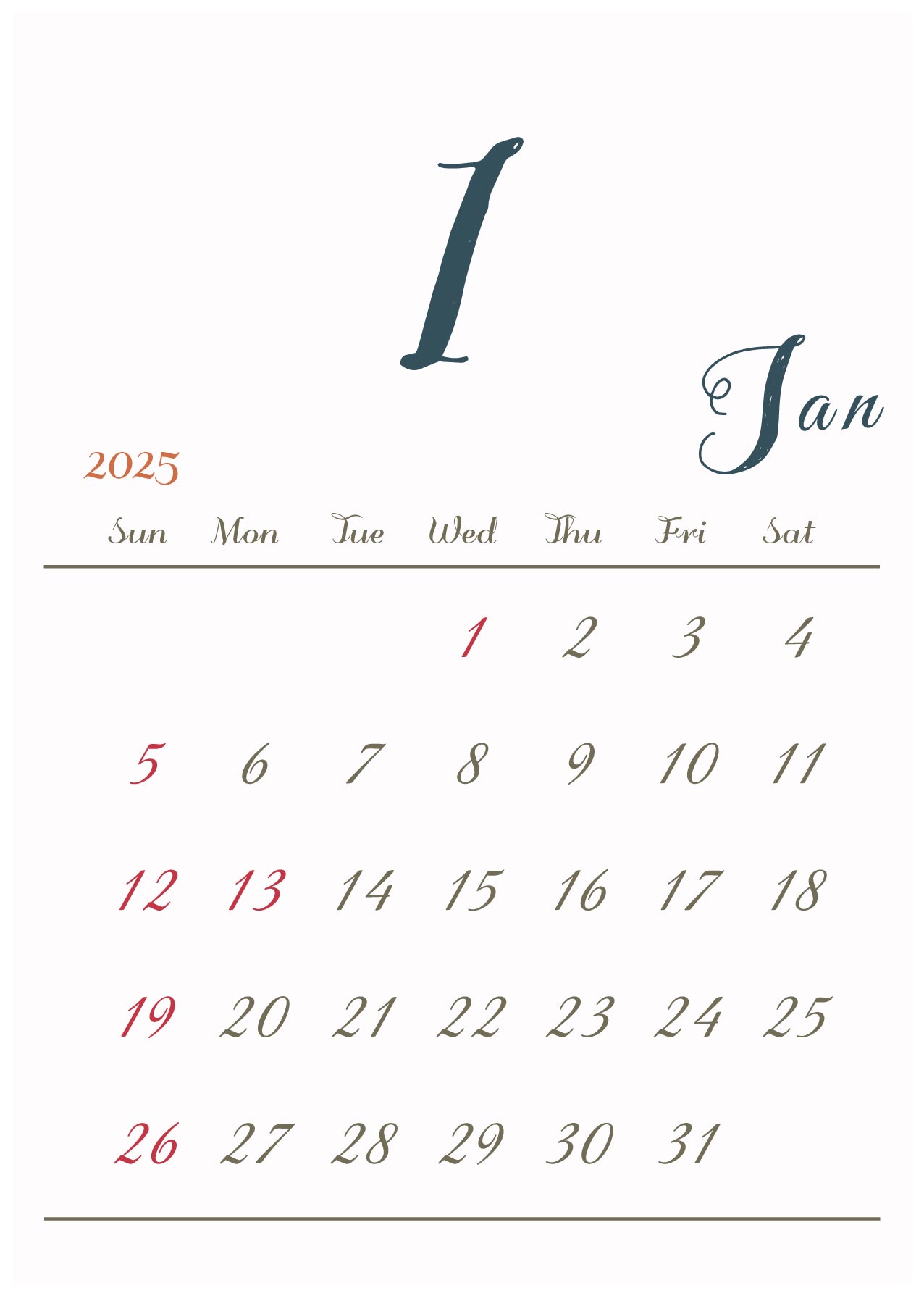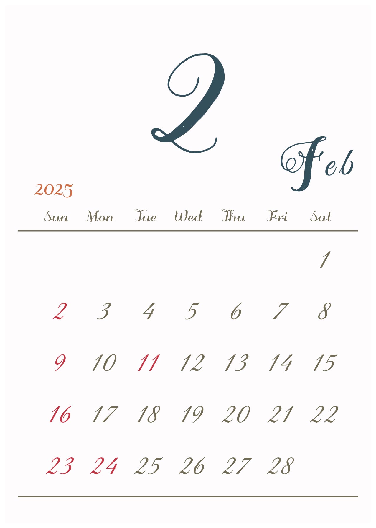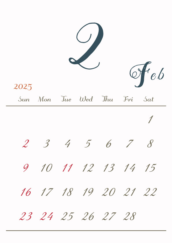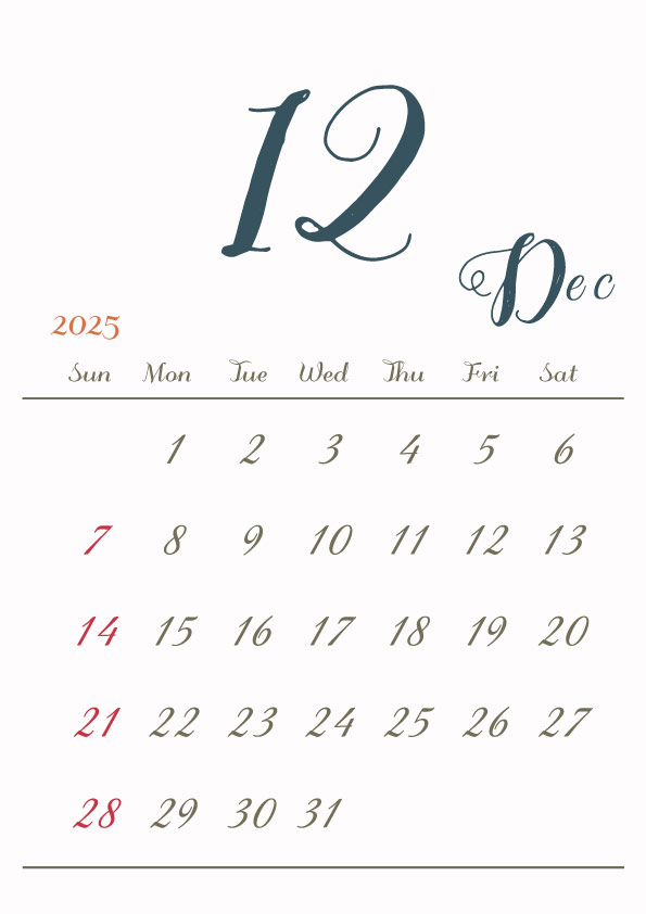 2025年令和7年カレンダー 縦型11 12ヶ月分