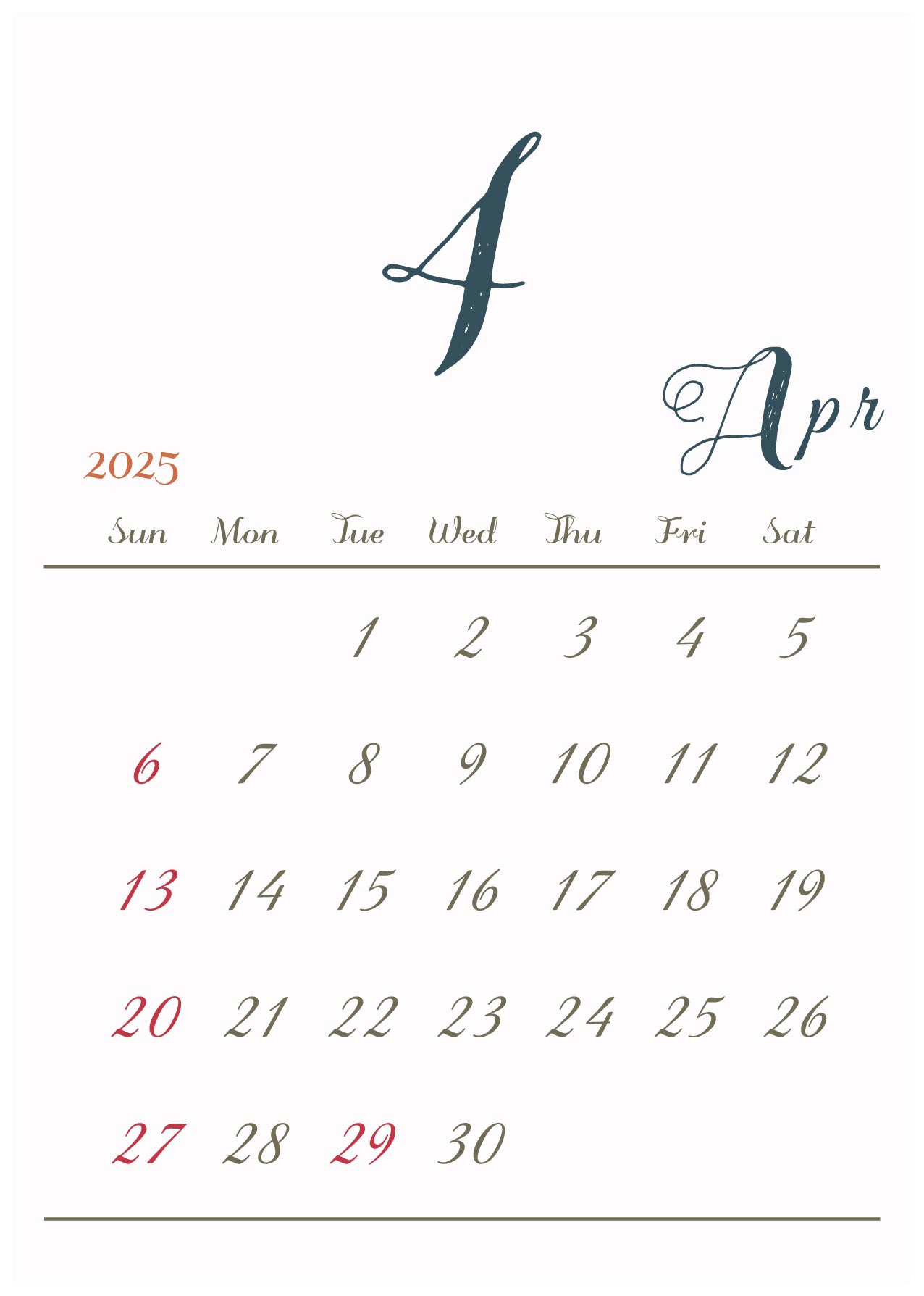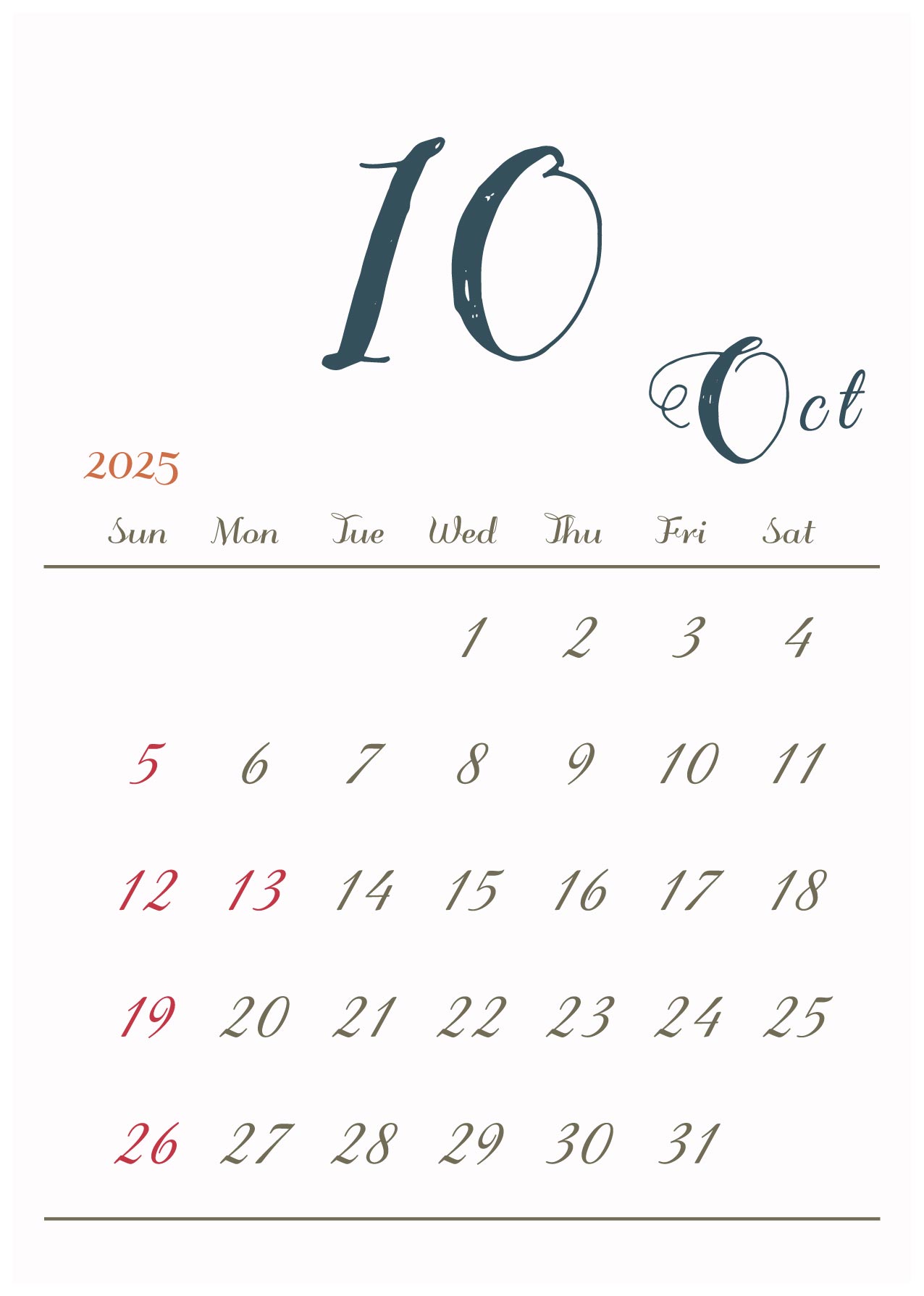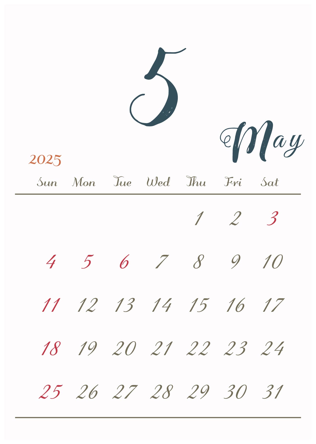 月の数字を大きくメインにしたシンプルでおしゃれなデザインです