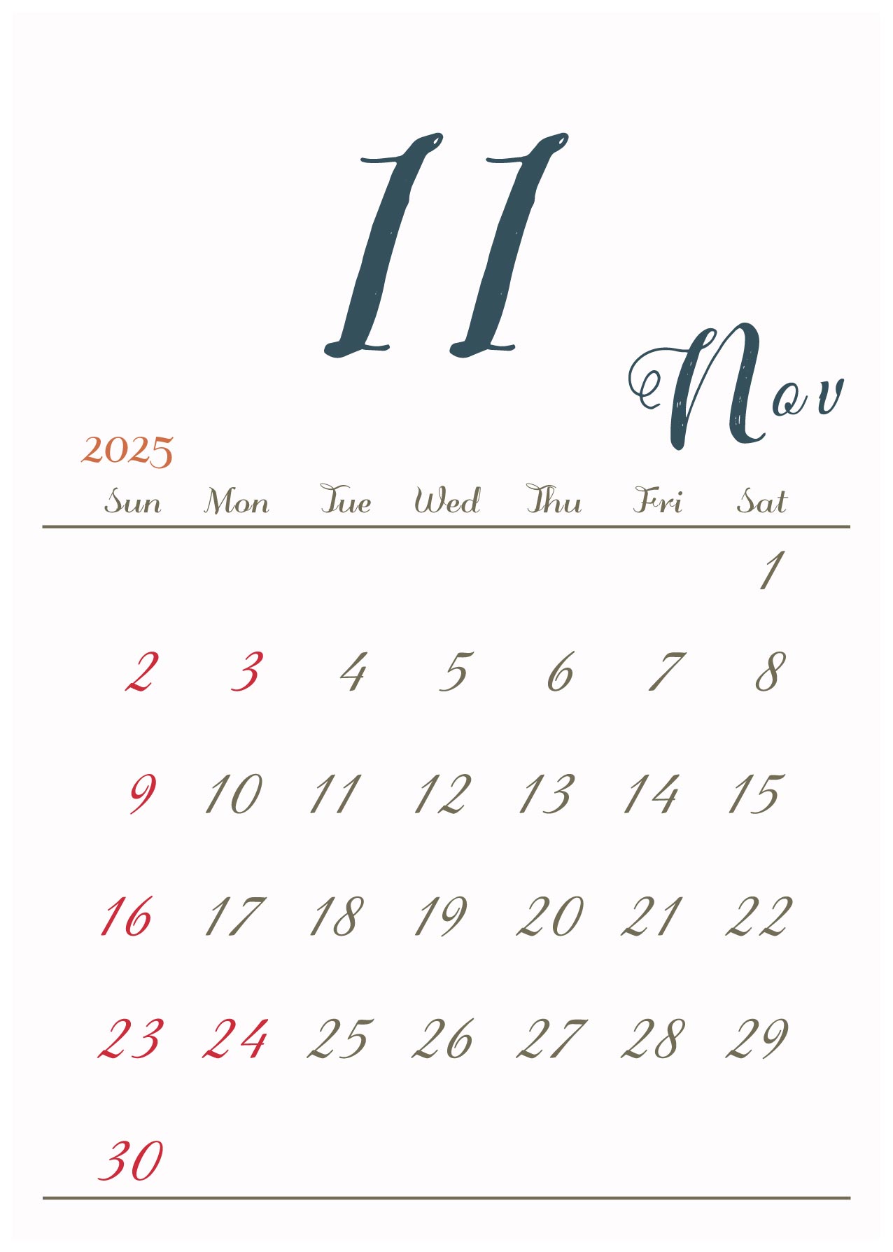 2025年令和7年カレンダー 縦型11