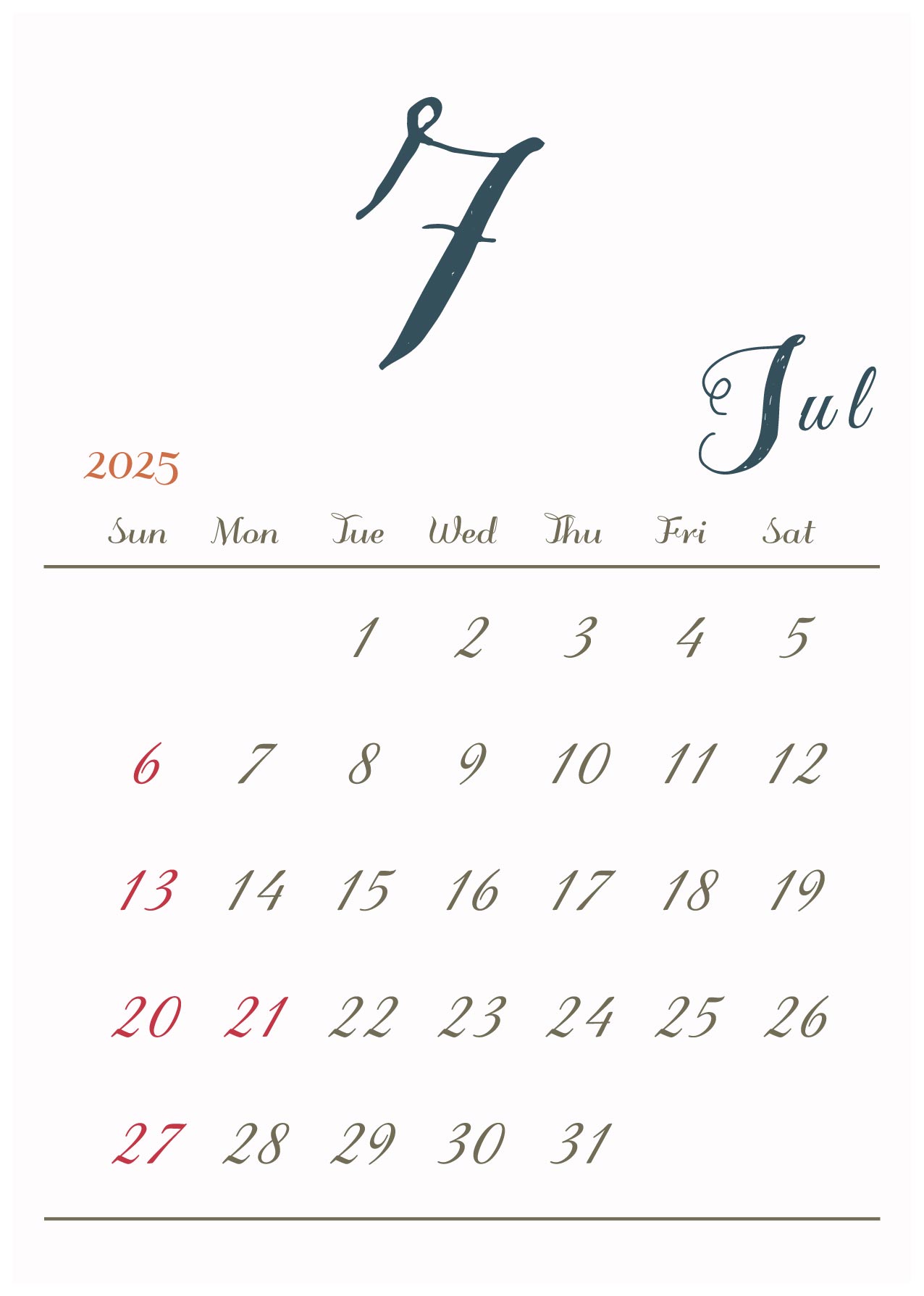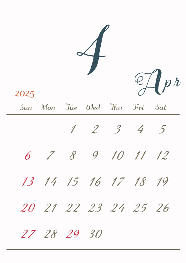 2025年令和7年の縦型カレンダー