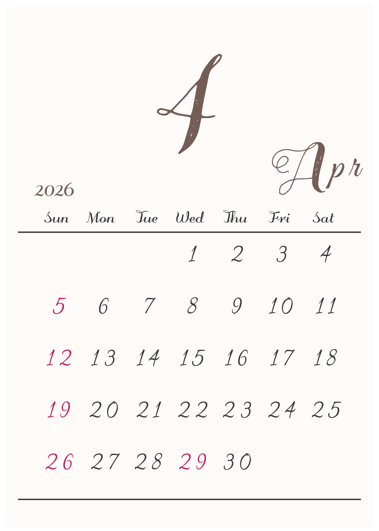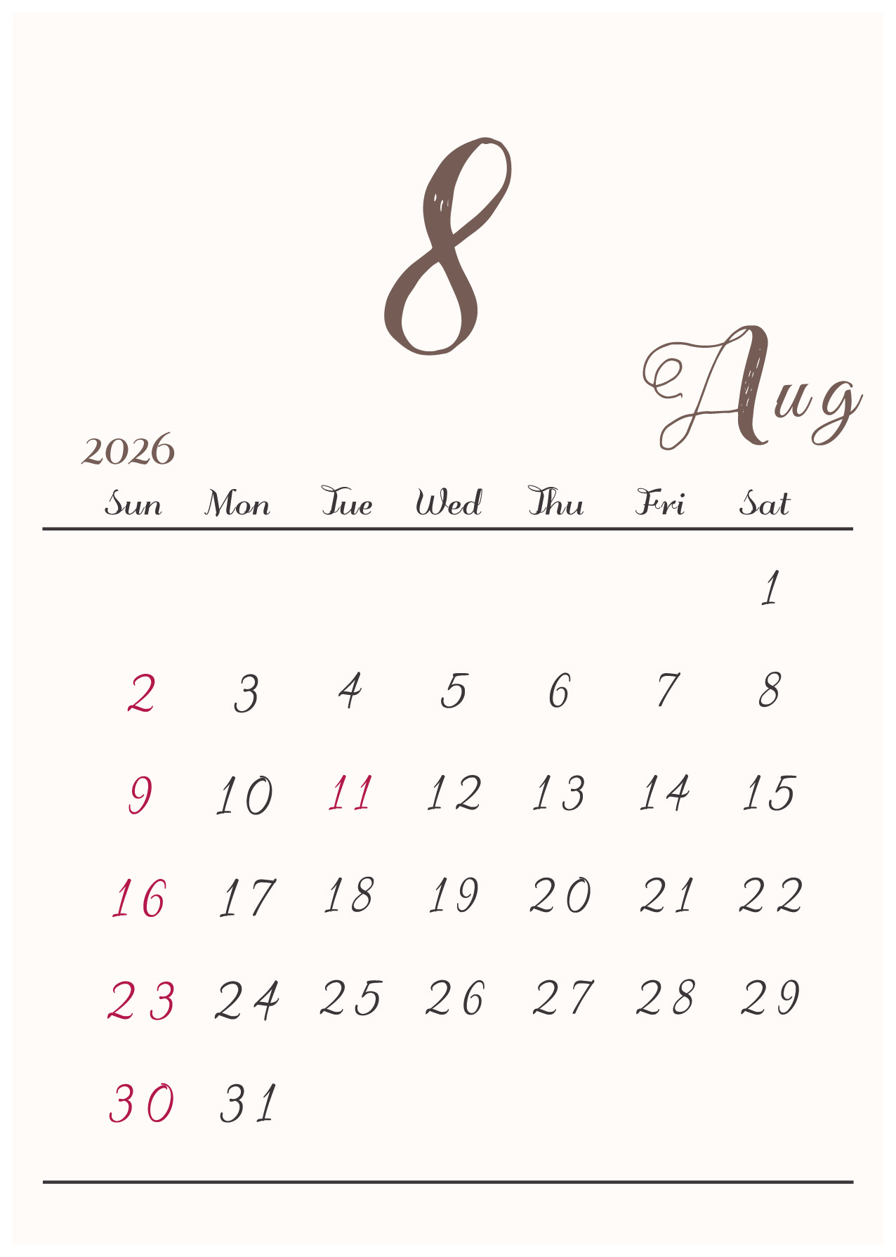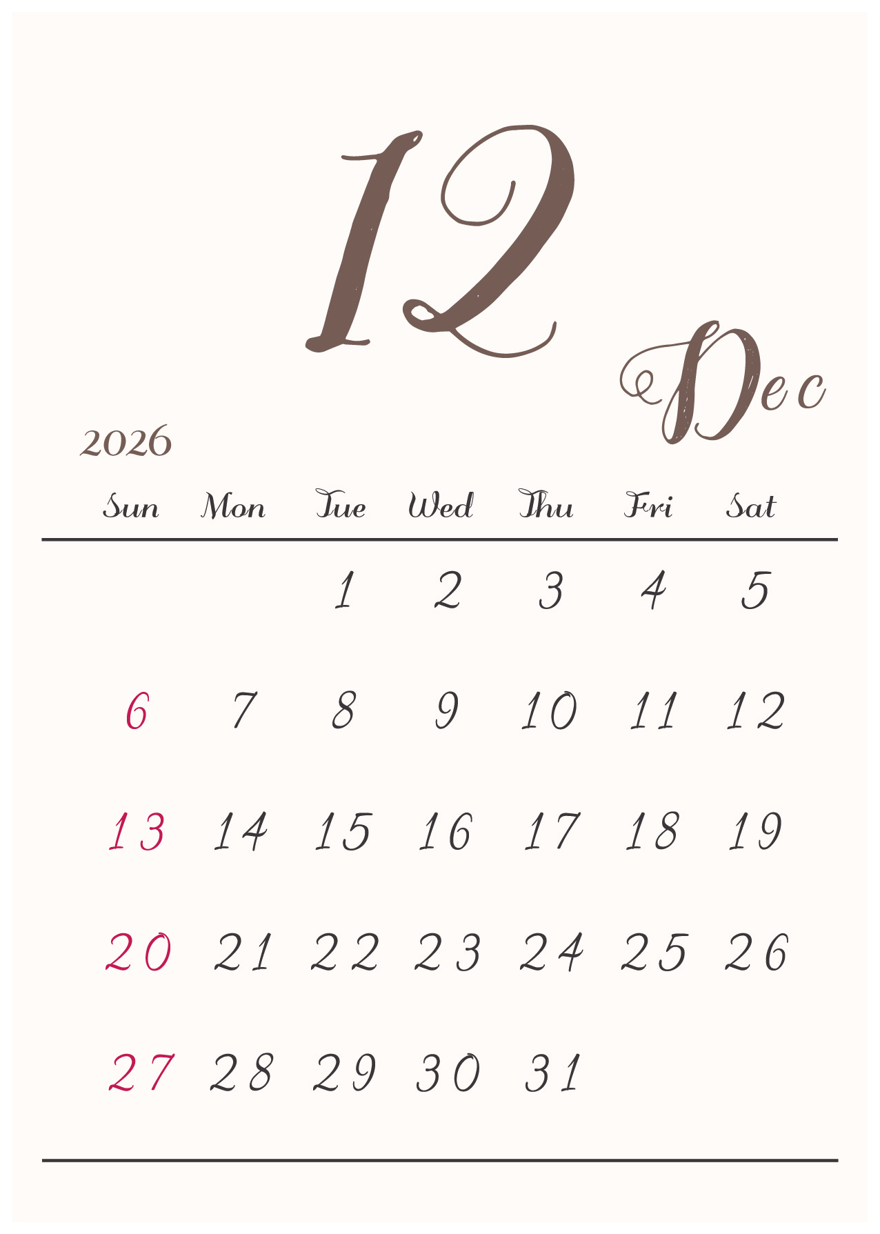 2026年(令和8年)カレンダー 縦型04-2 12ヶ月分