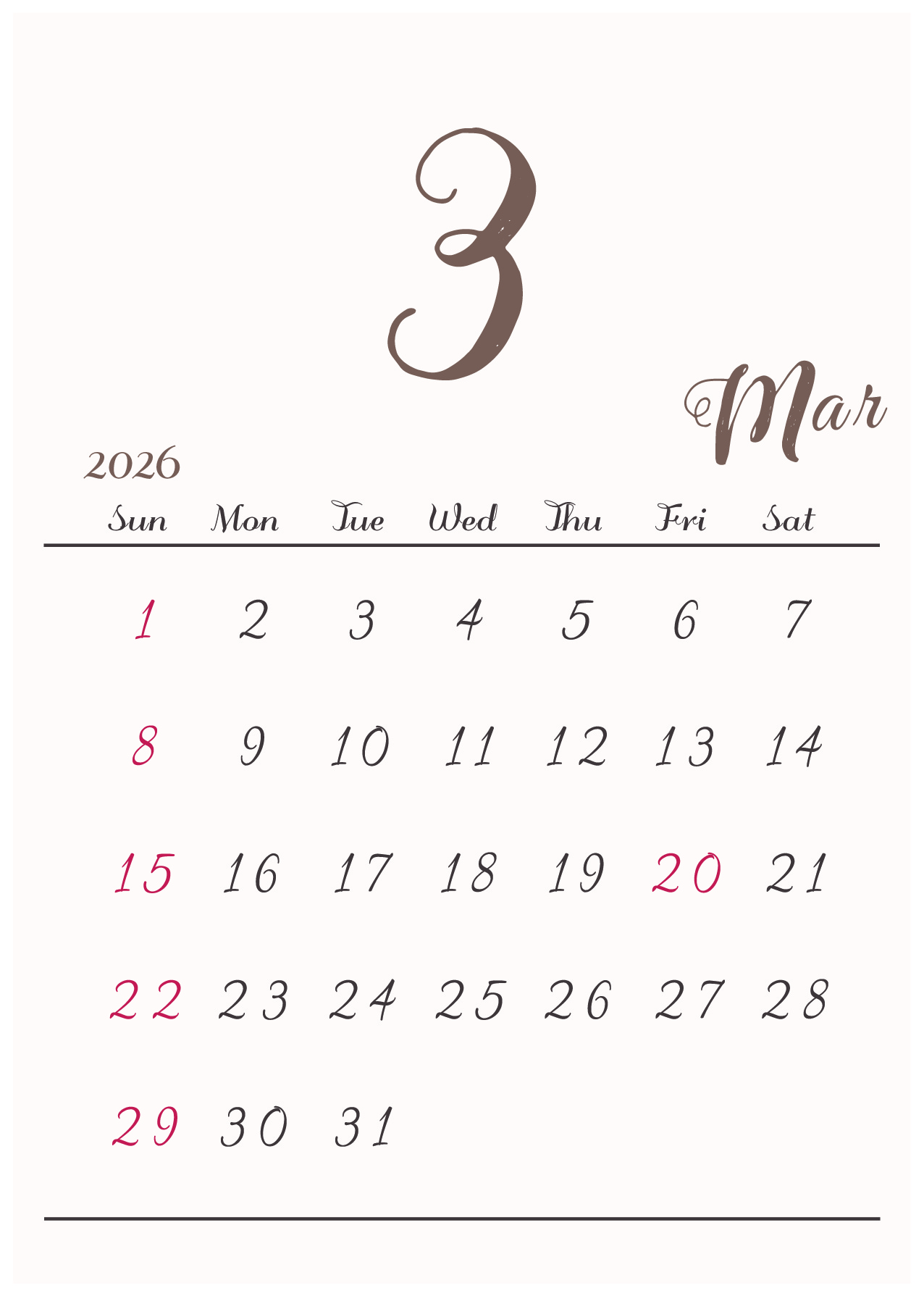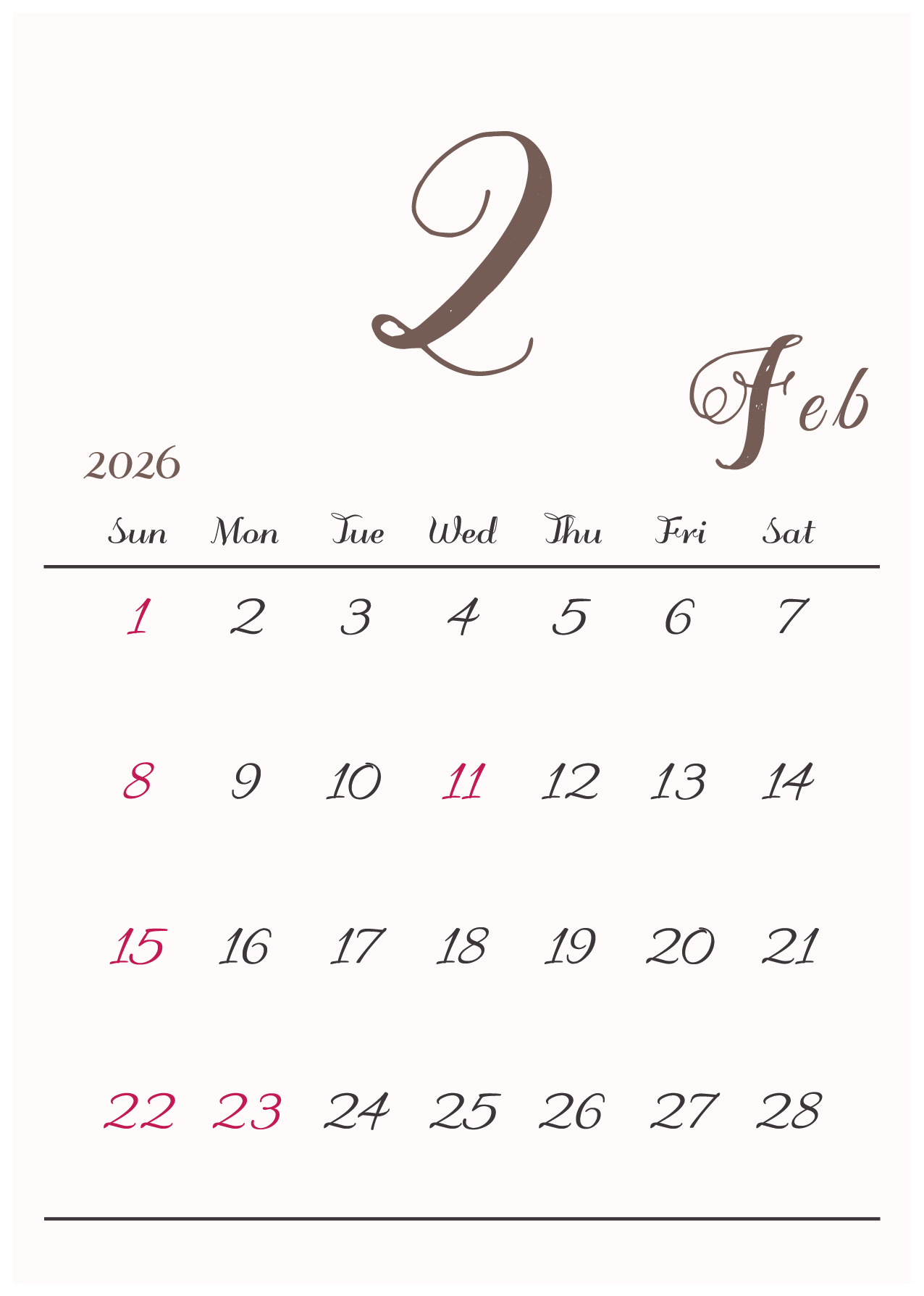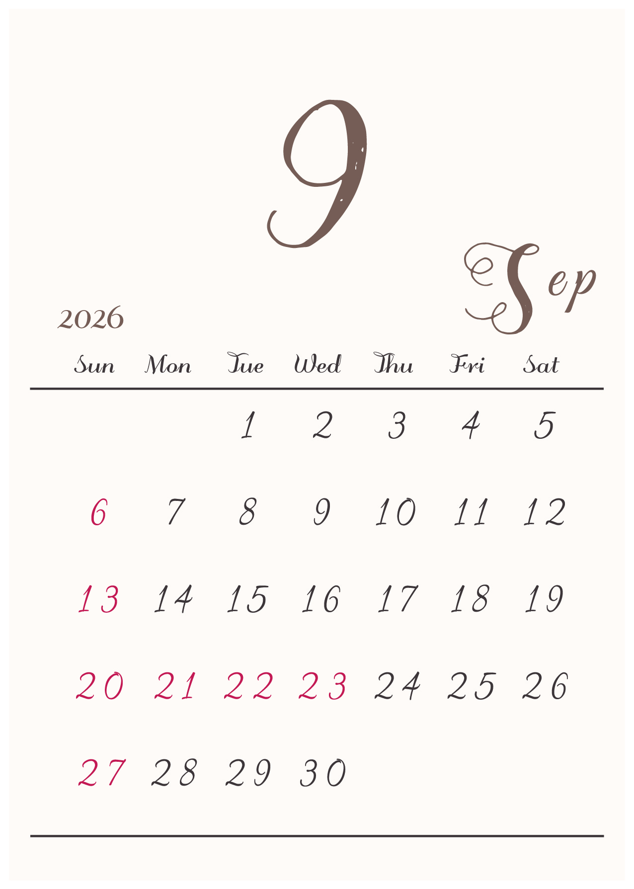2026年(令和8年)カレンダー 縦型04-2 12ヶ月分