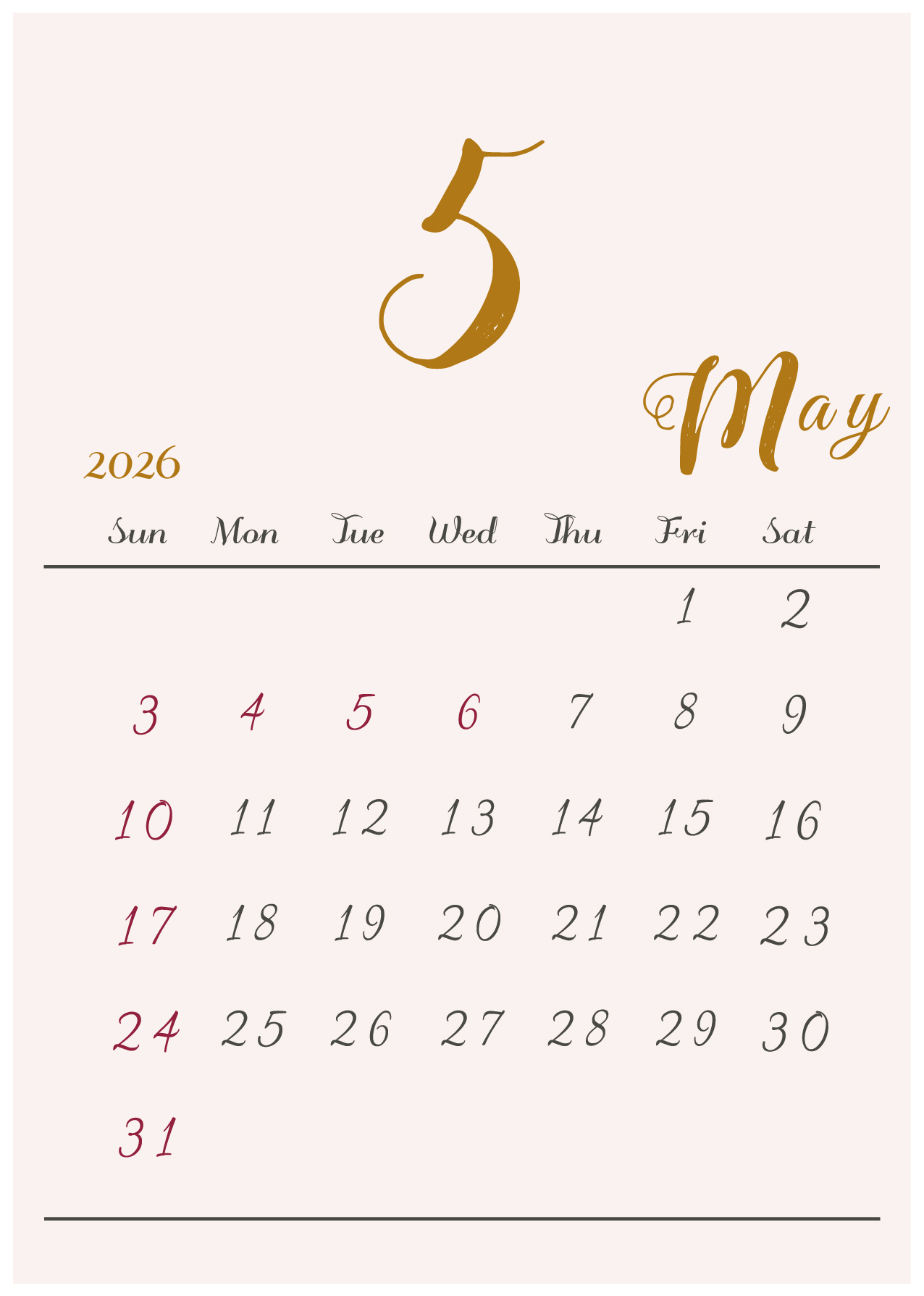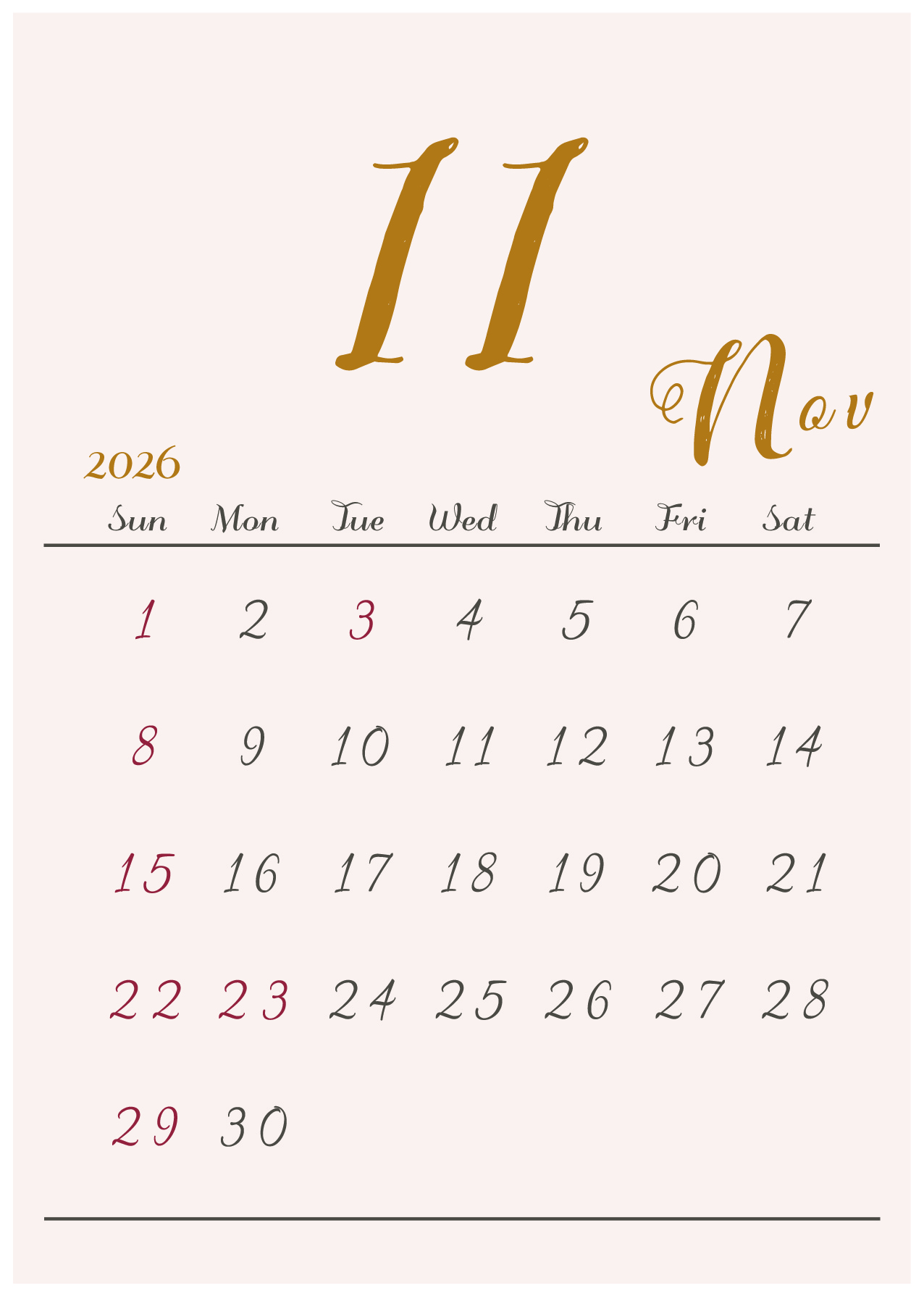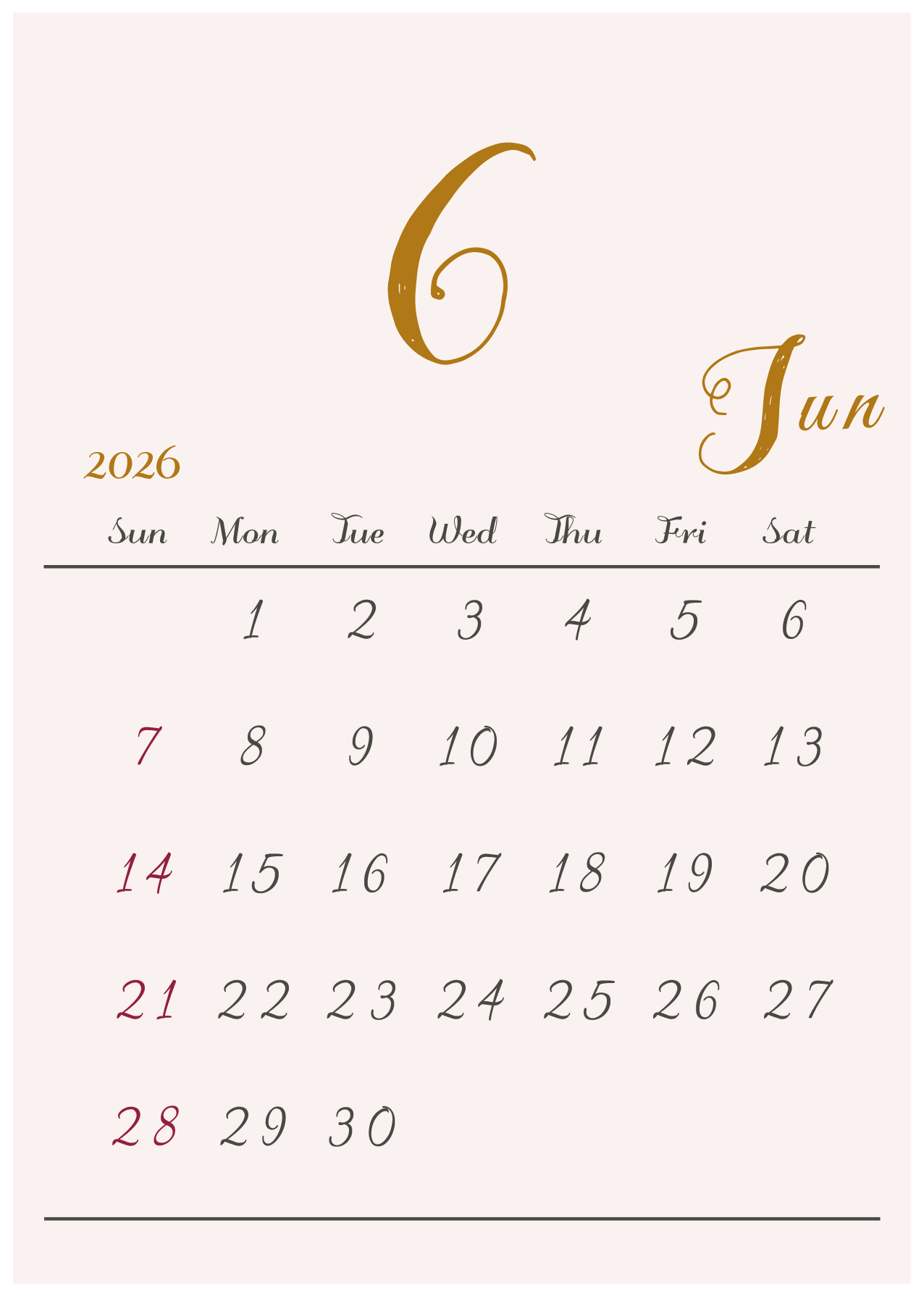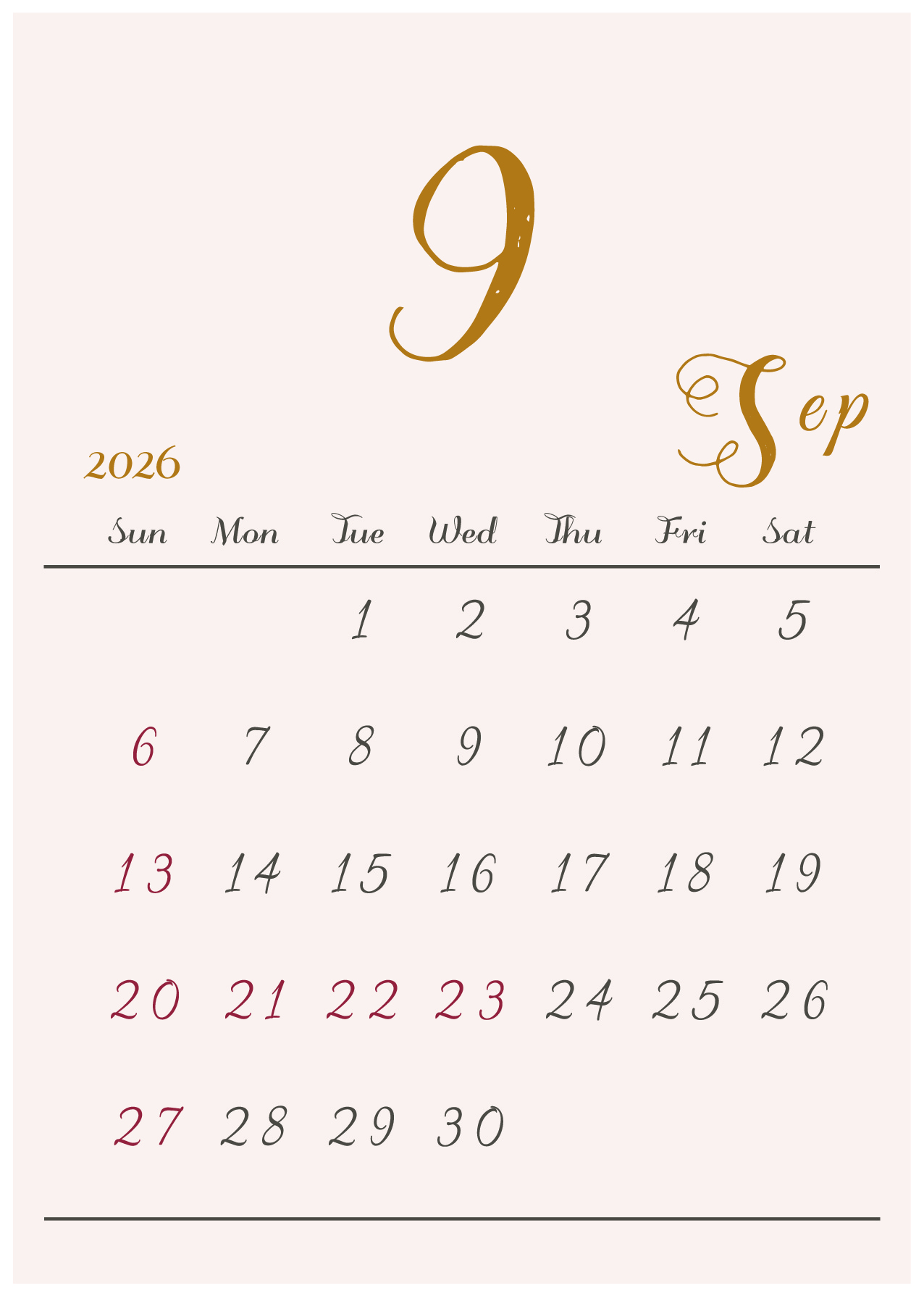 背景に淡い色をつけたシンプルでおしゃれなデザインカレンダー