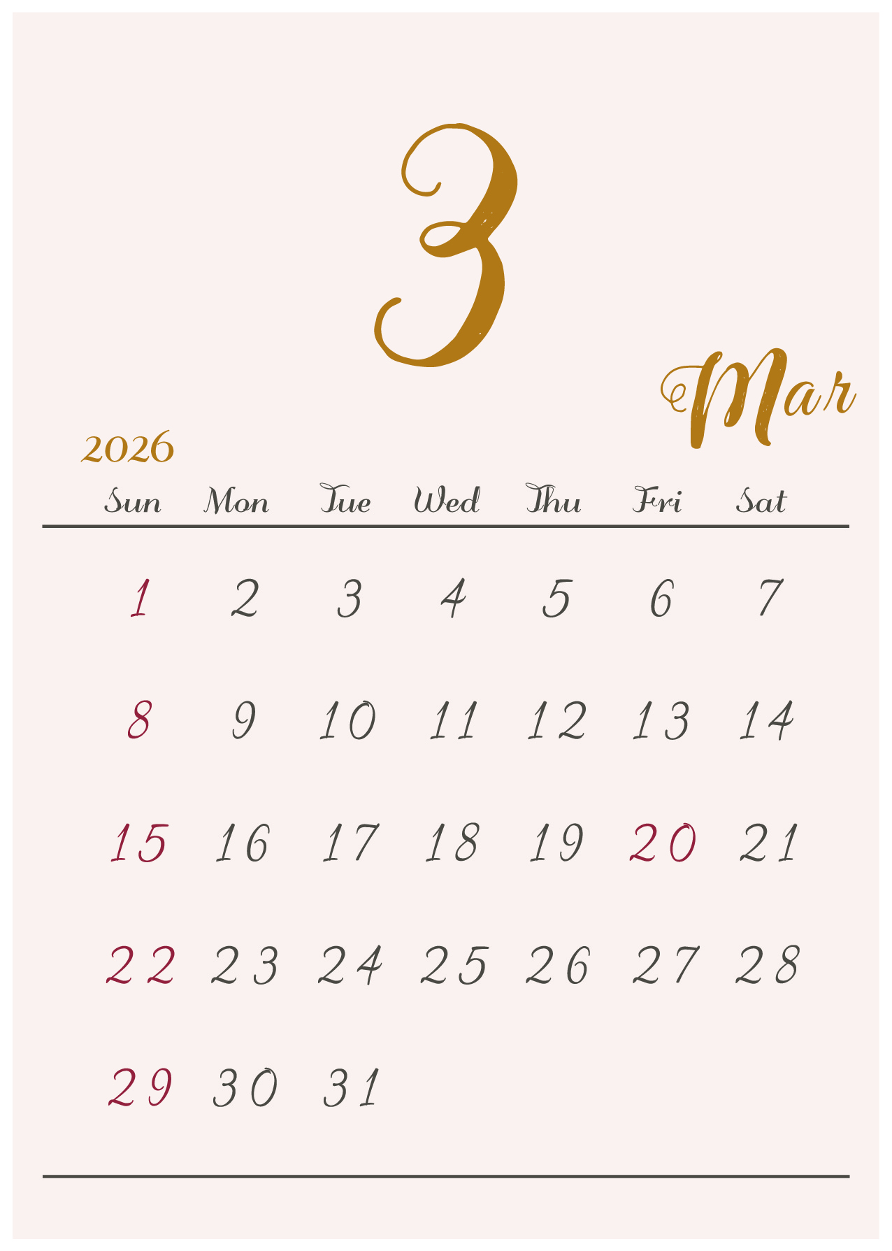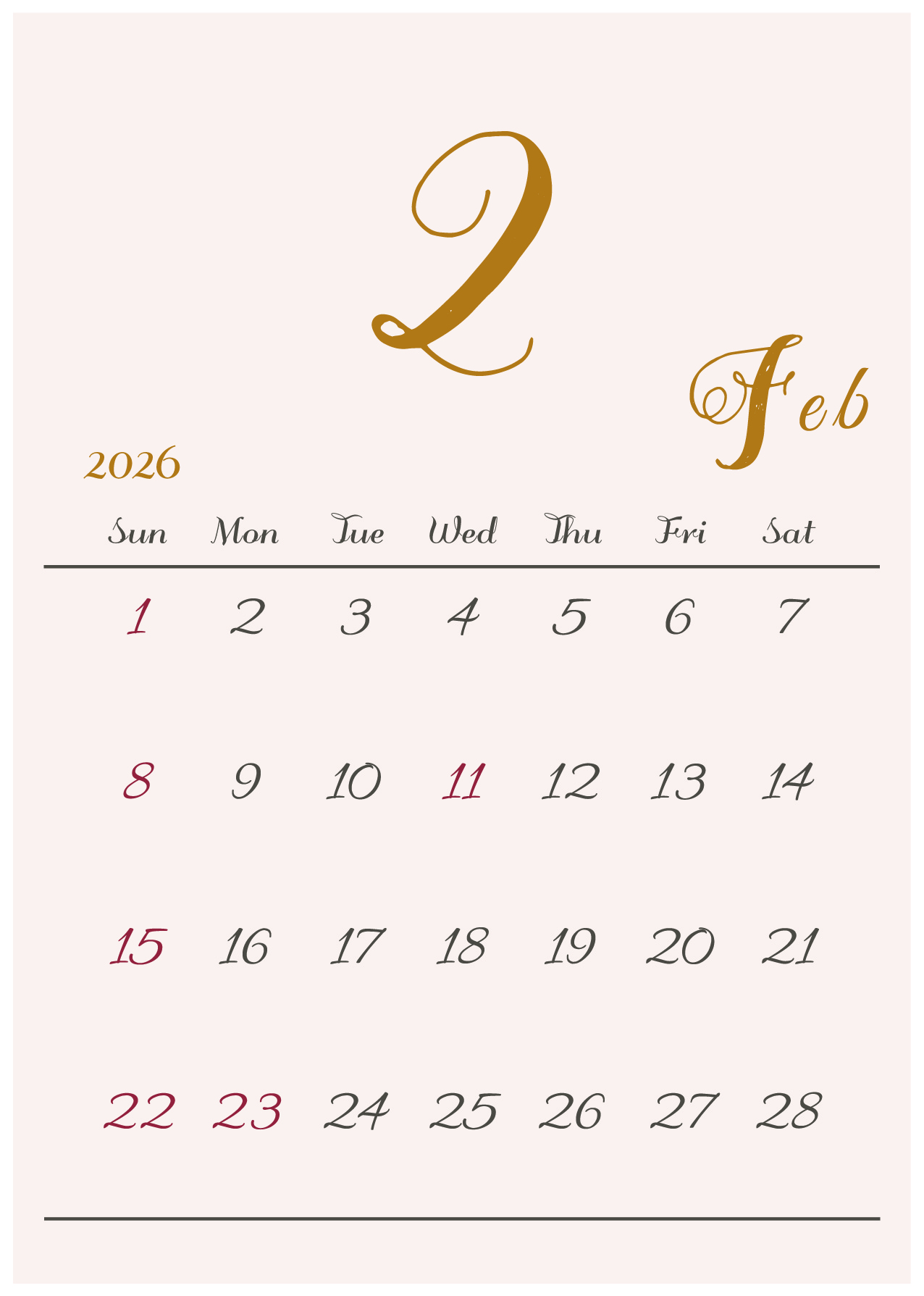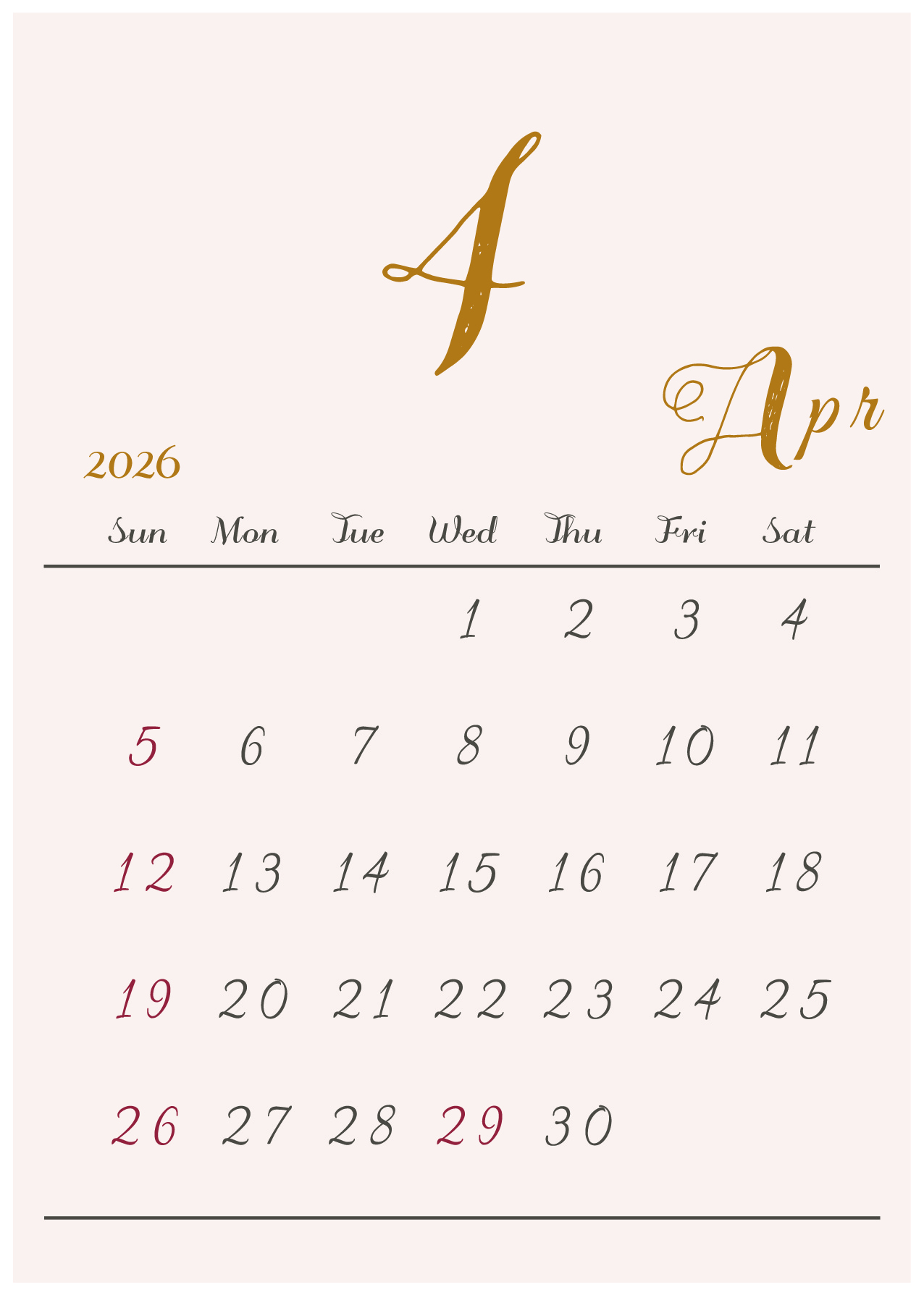 2026年(令和8年)カレンダー 縦型04-4