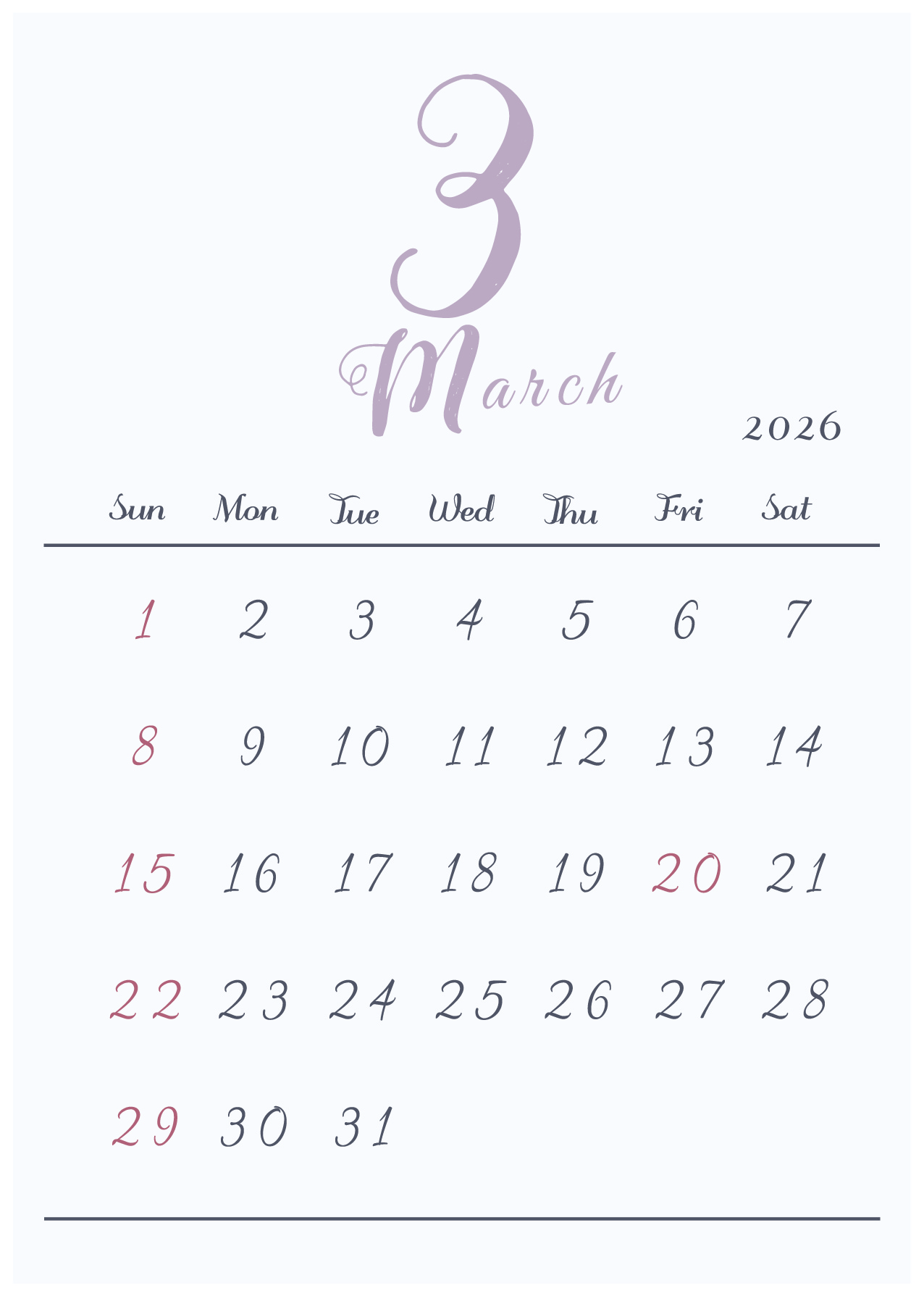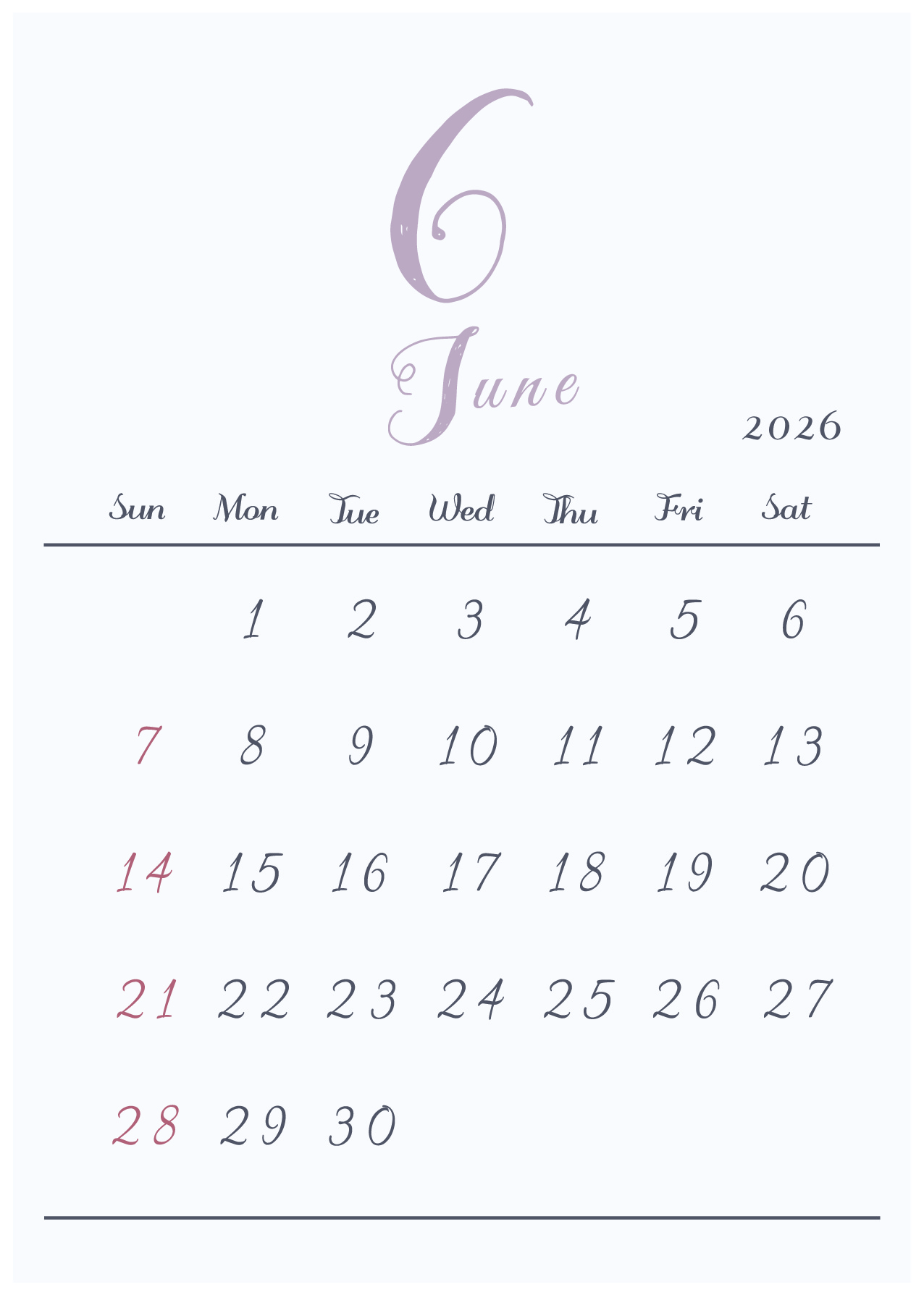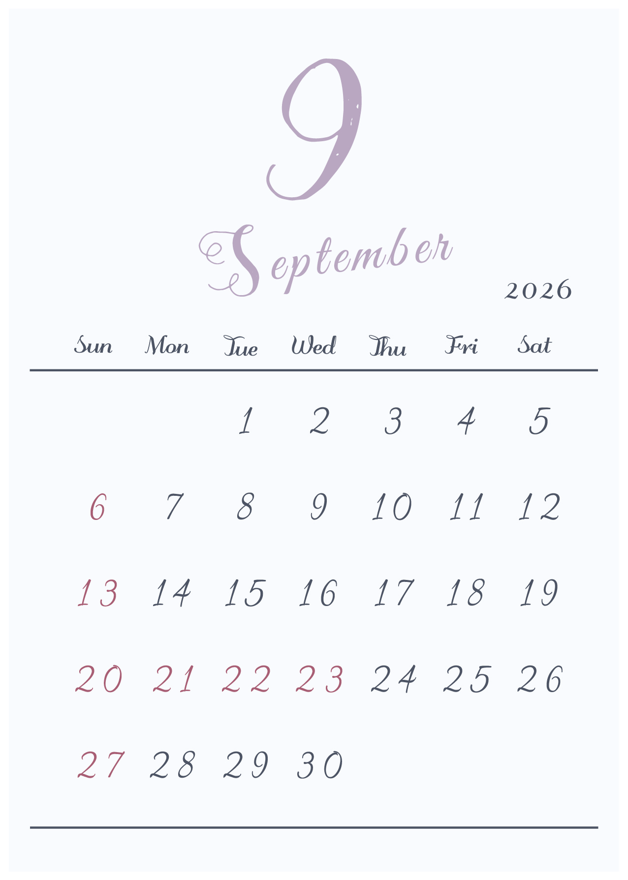 背景に淡い色をつけたシンプルでおしゃれなデザインカレンダー