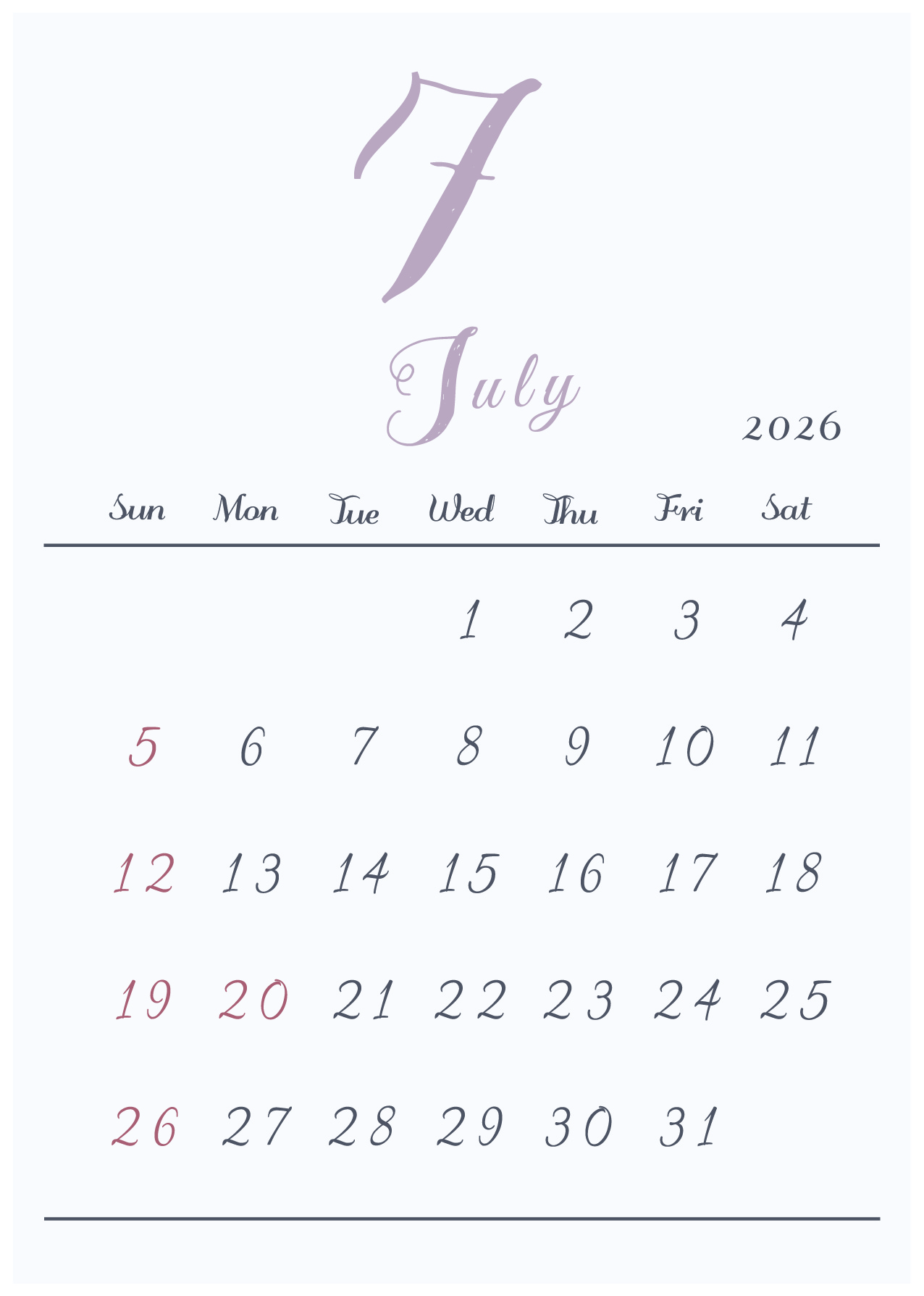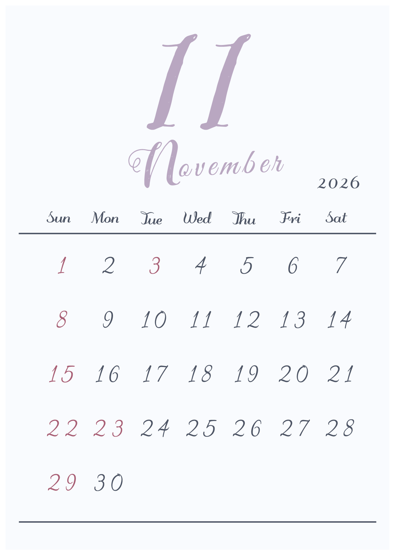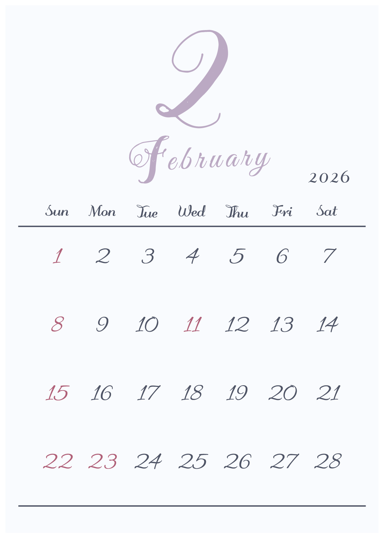 背景に淡い色をつけたシンプルでおしゃれなデザインカレンダー
