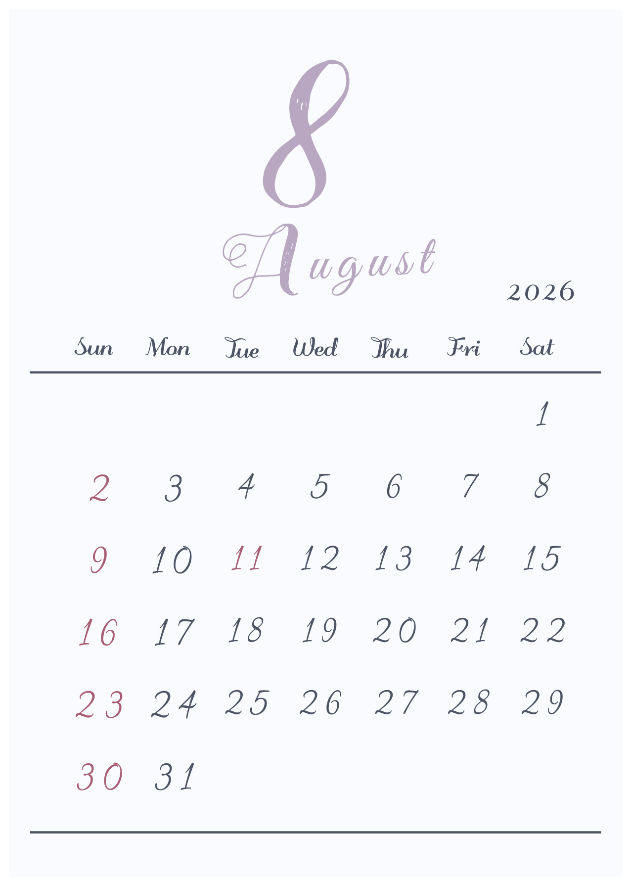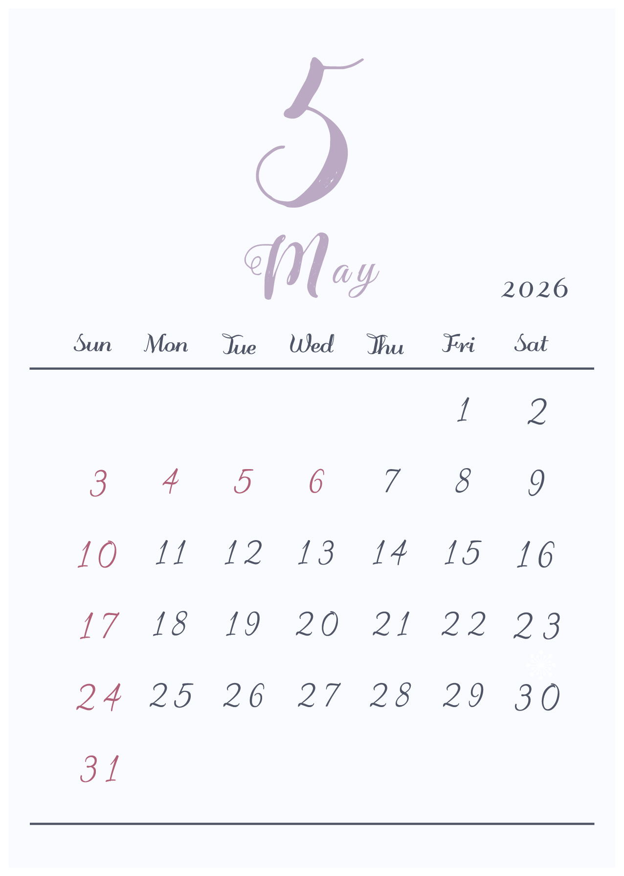 2026年(令和8年)カレンダー 縦型05-2 12ヶ月分