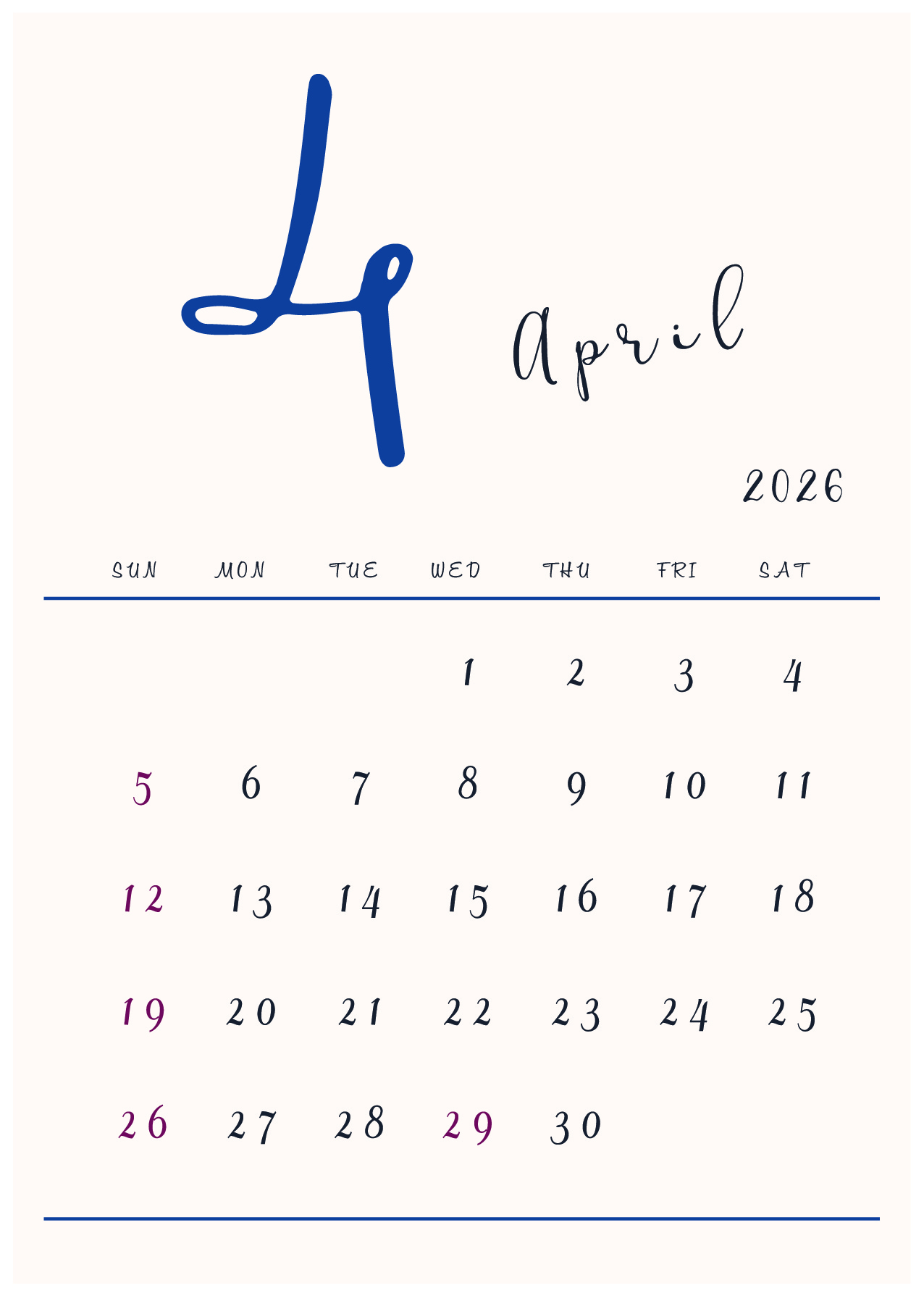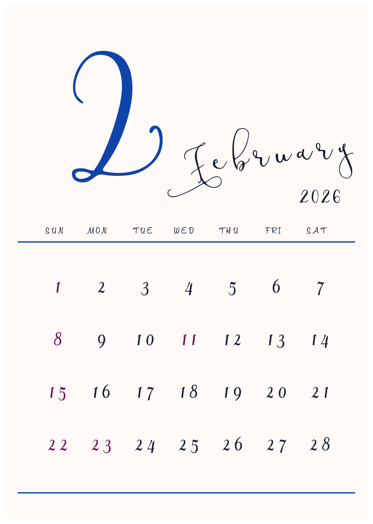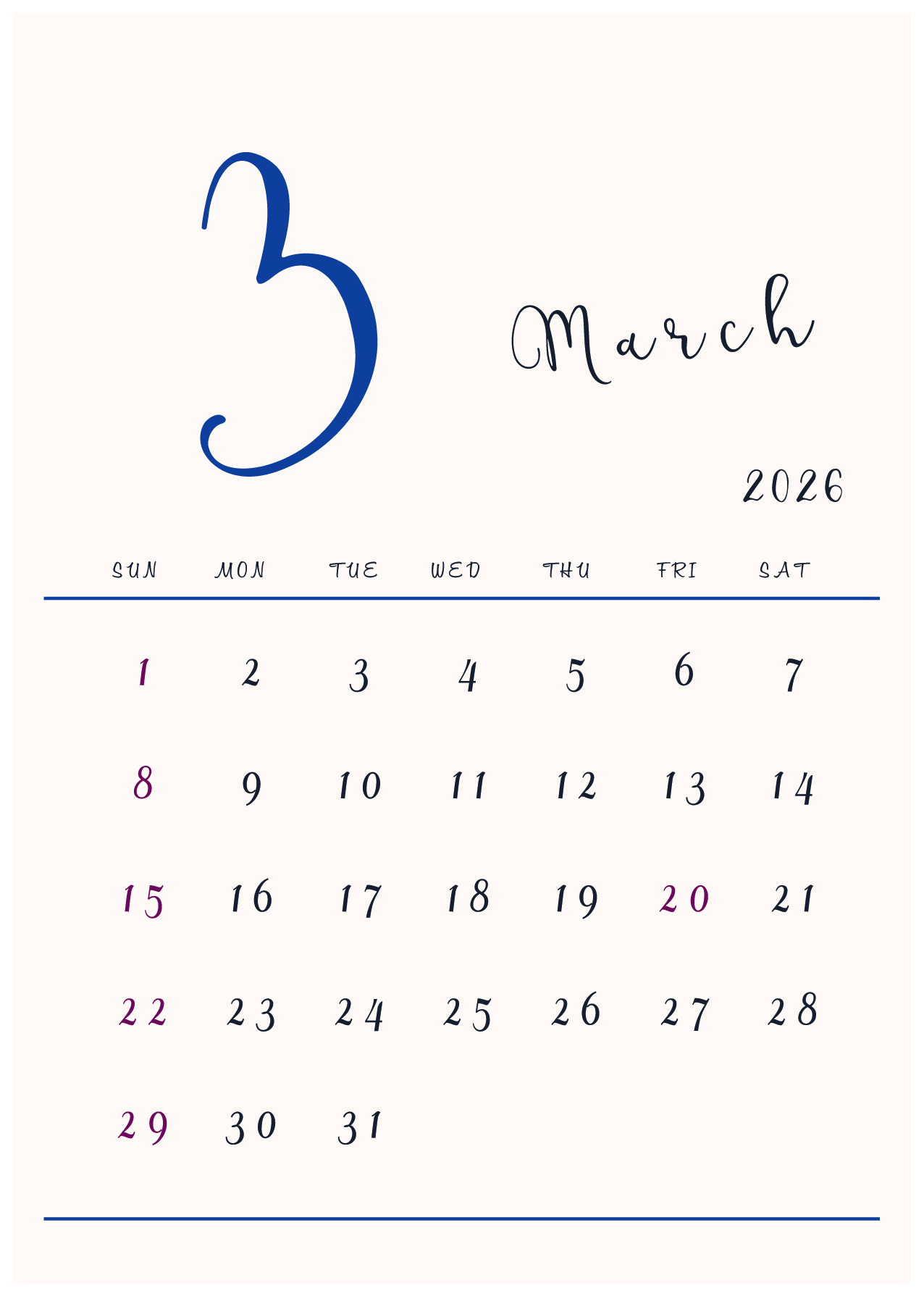 背景に淡い色をつけたシンプルでおしゃれなデザインカレンダー