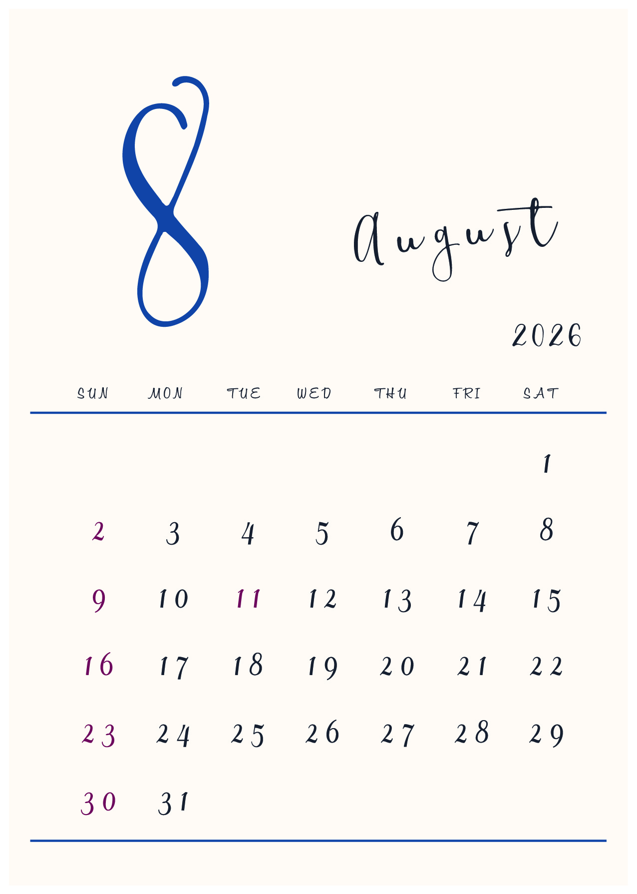 2026年(令和8年)カレンダー 縦型06-3 12ヶ月分