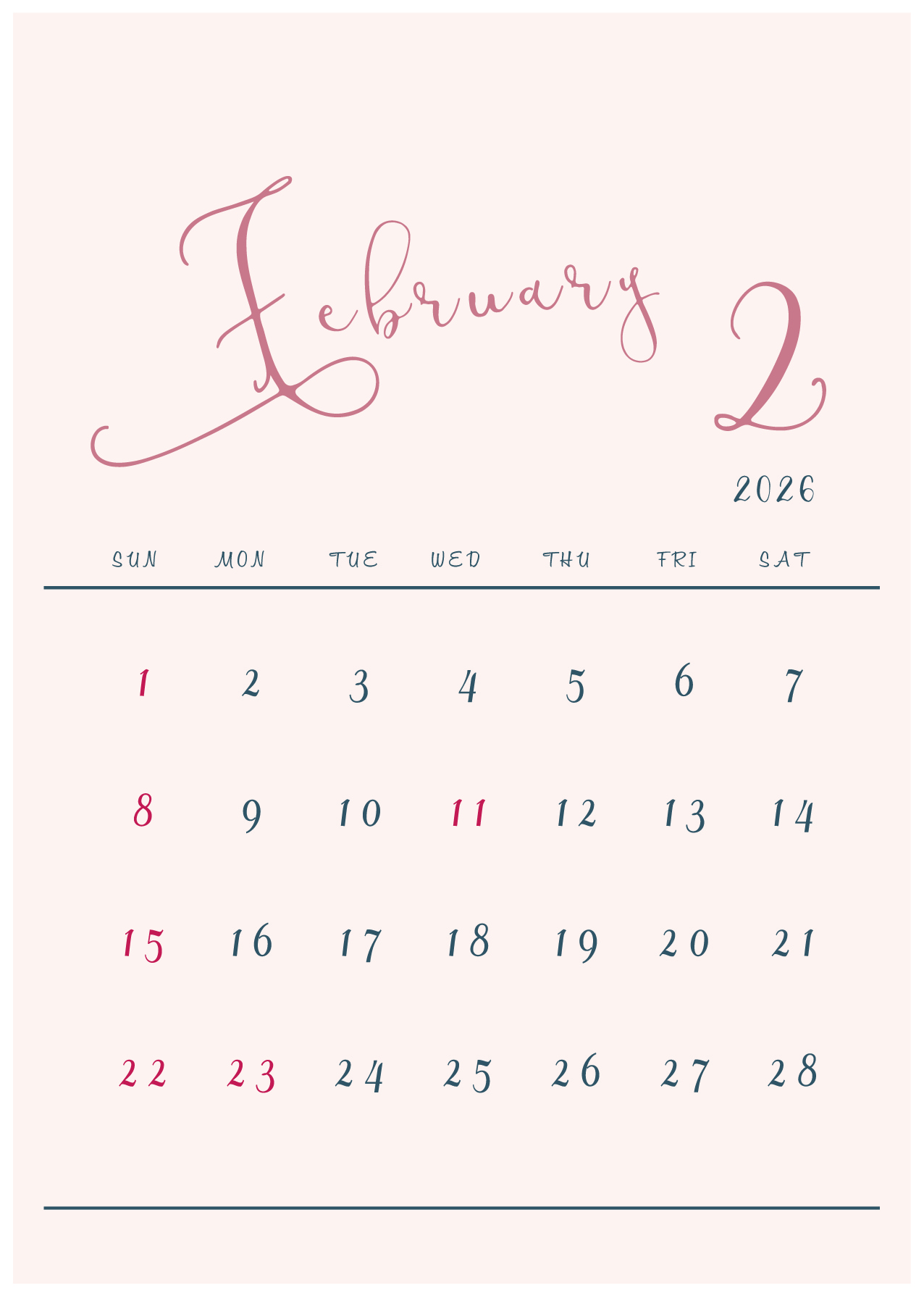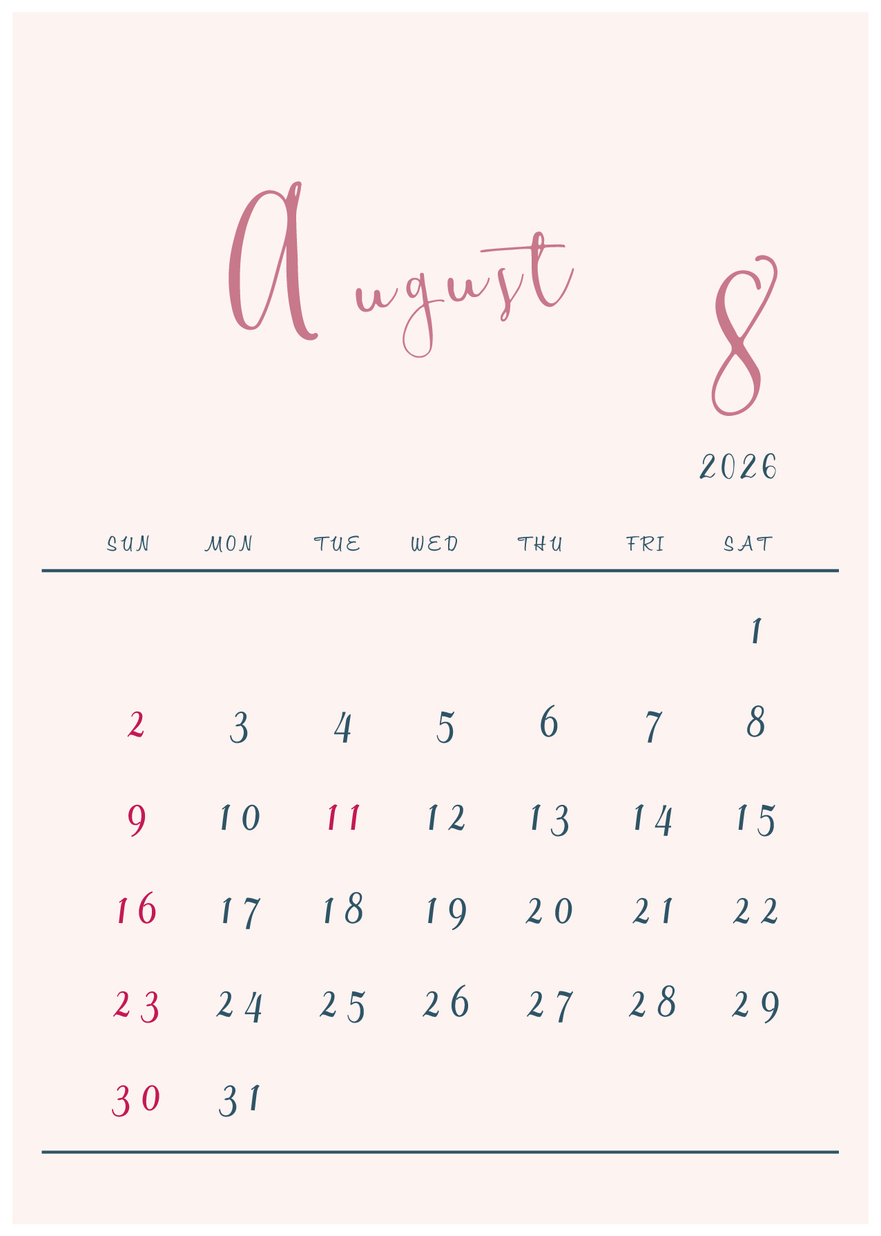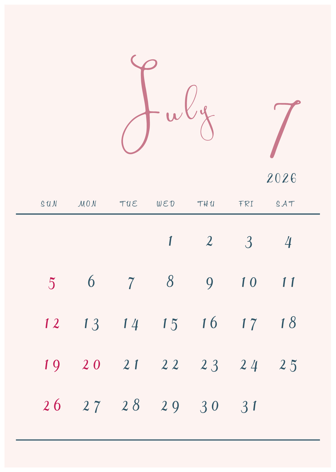 2026年(令和8年)カレンダー 縦型07-2