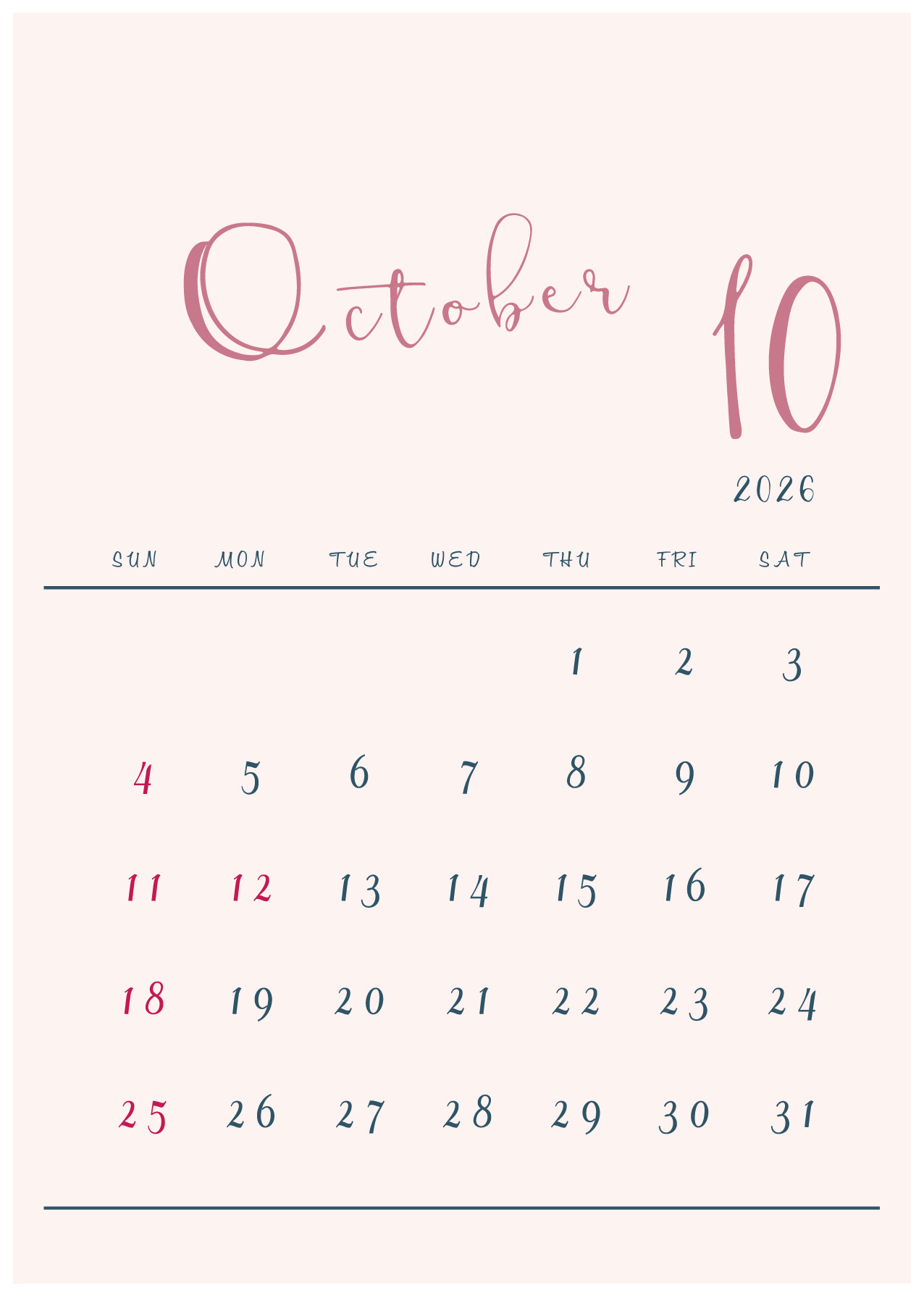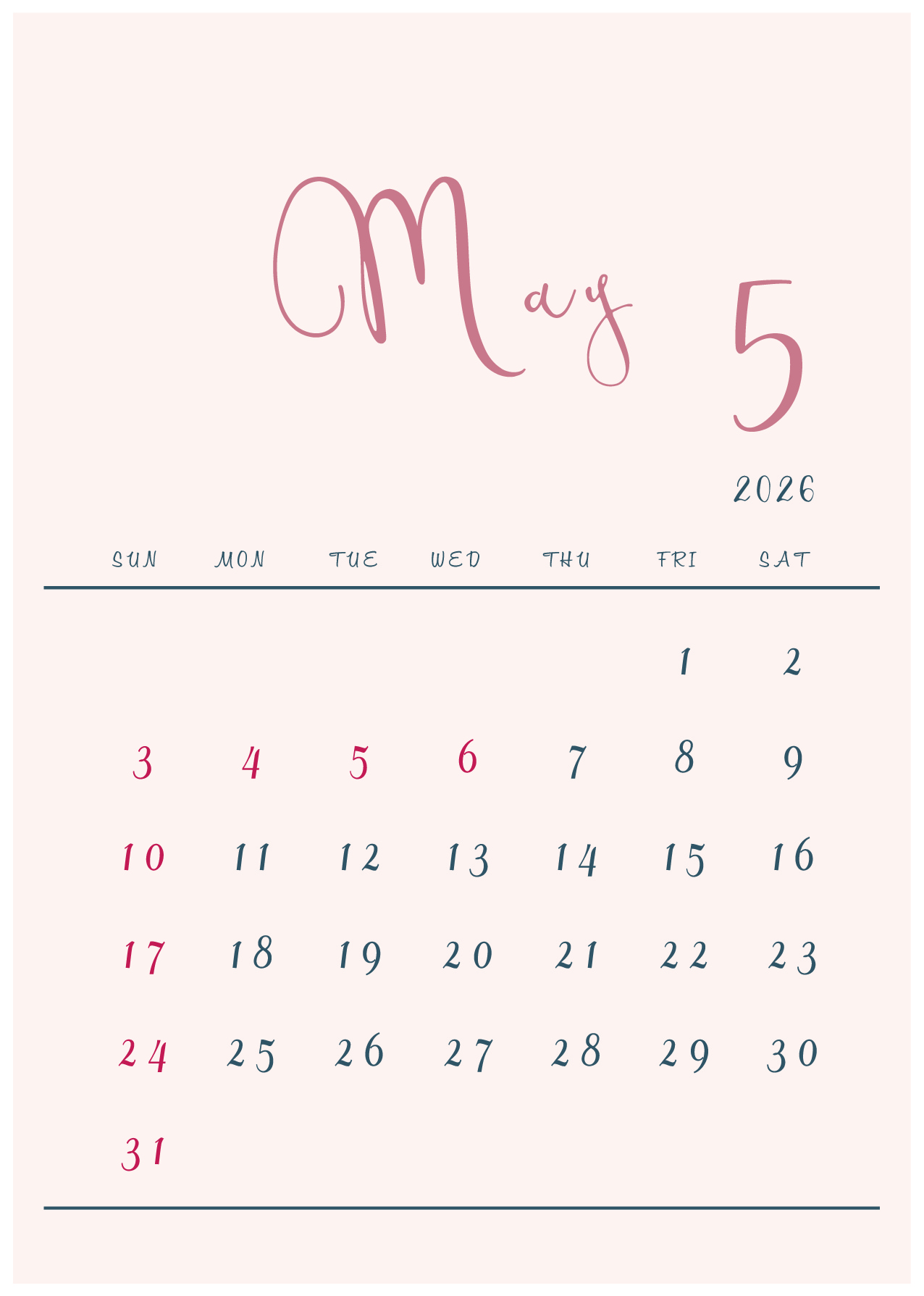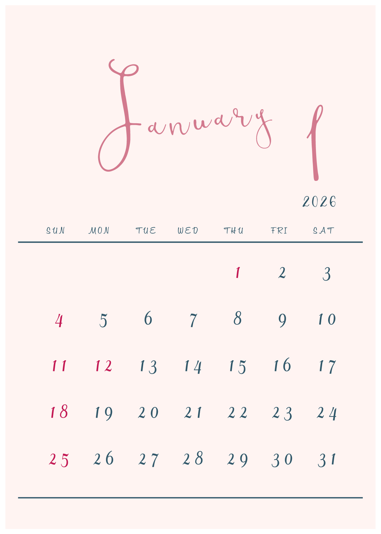 2026年(令和8年)カレンダー 縦型07-2