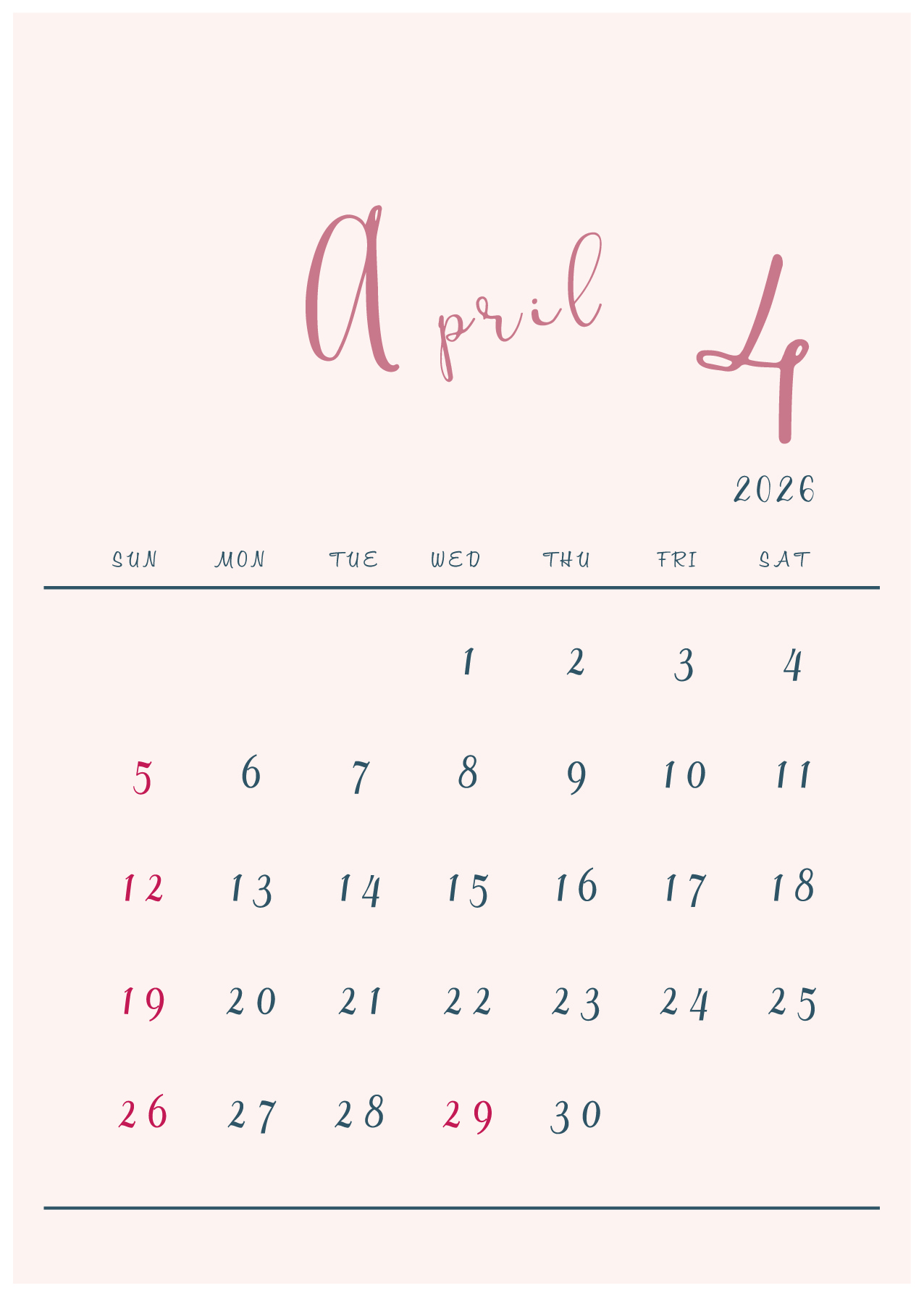 背景に淡い色をつけたシンプルでおしゃれなデザインカレンダー