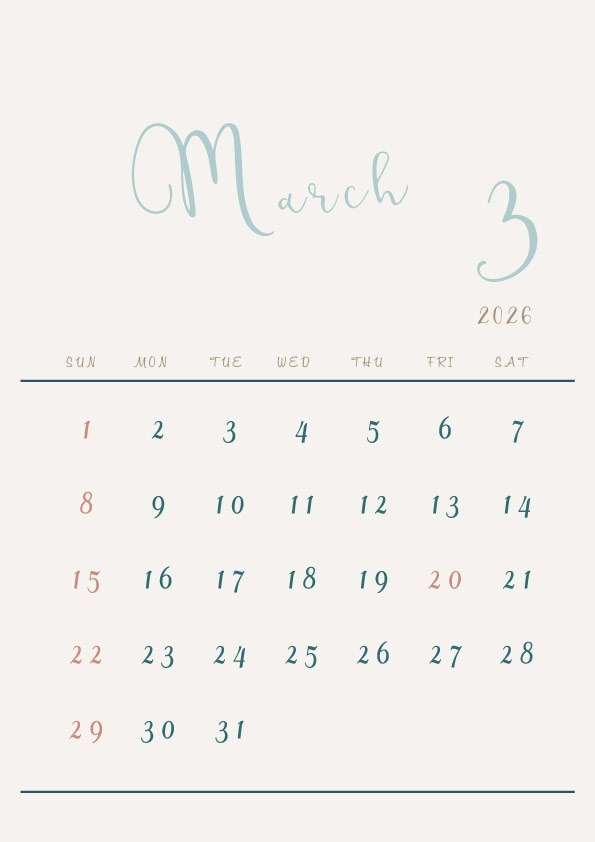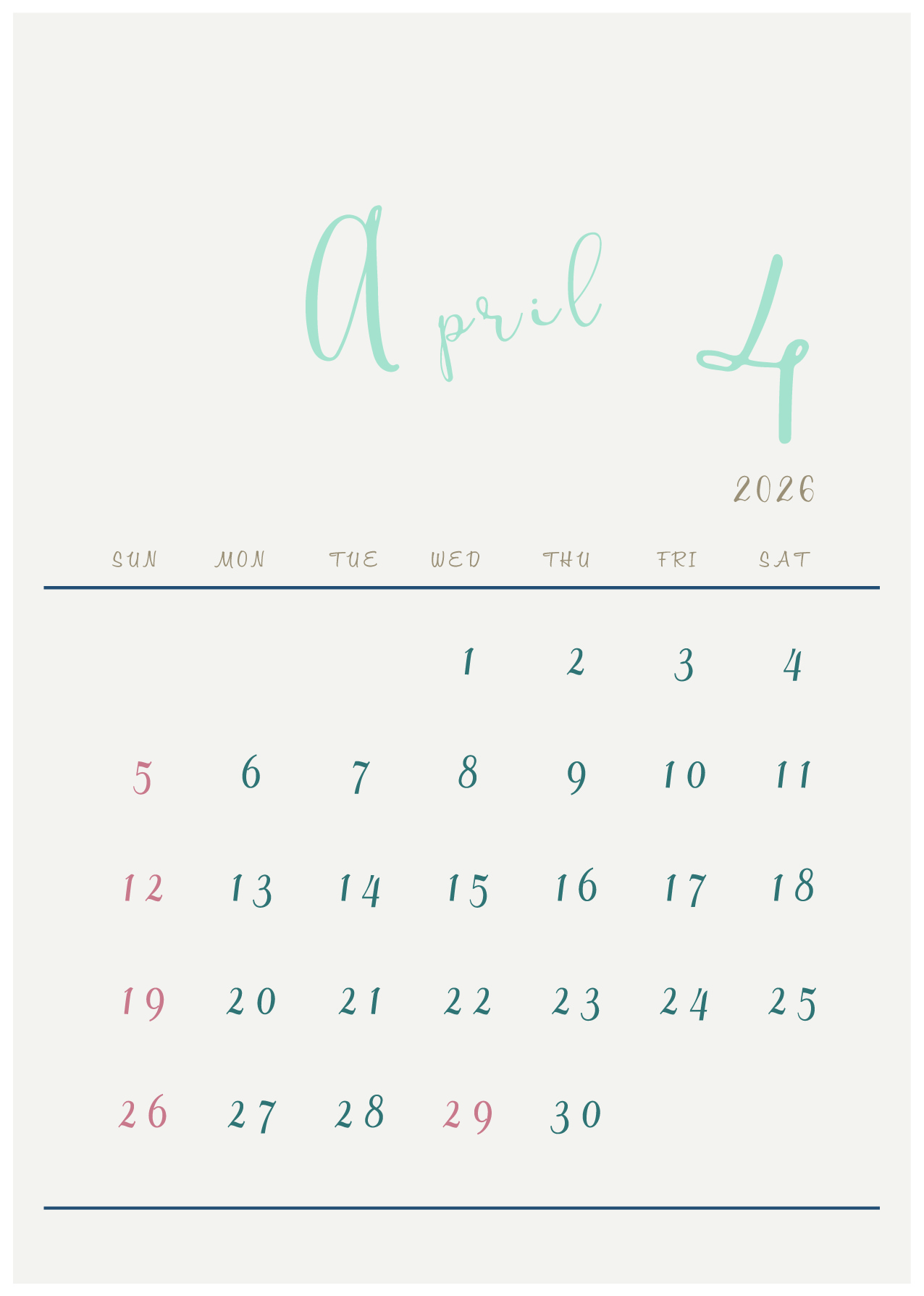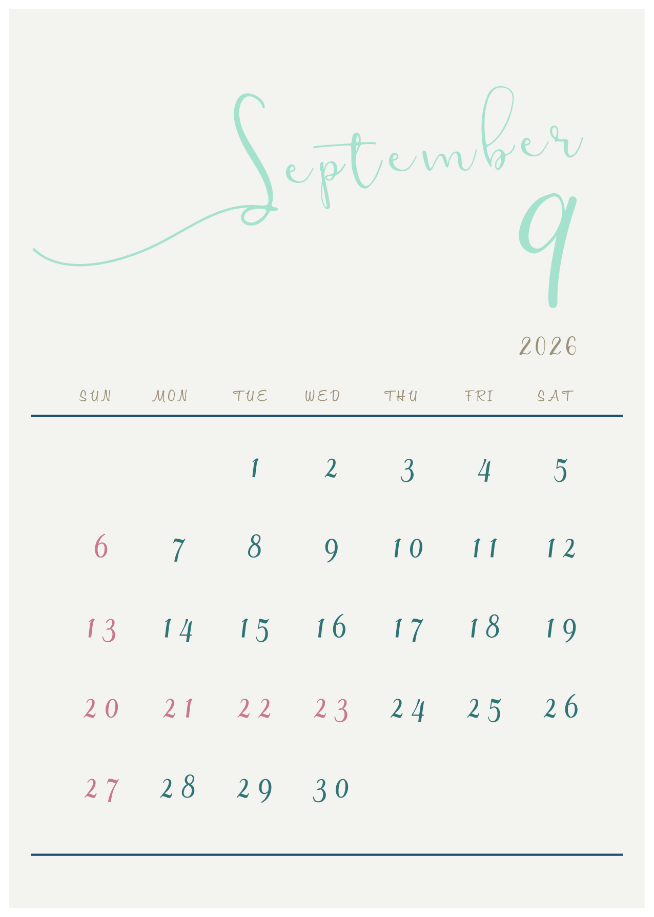 背景に淡い色をつけたシンプルでおしゃれなデザインカレンダー