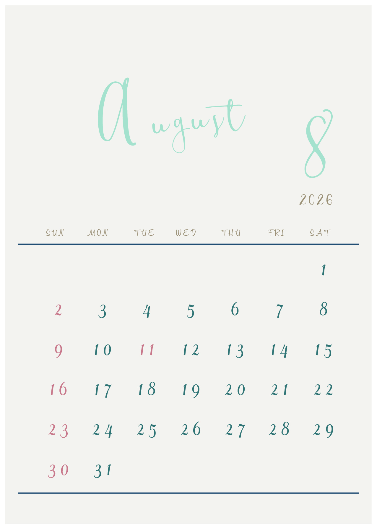 2026年(令和8年)カレンダー 縦型07-4 12ヶ月分