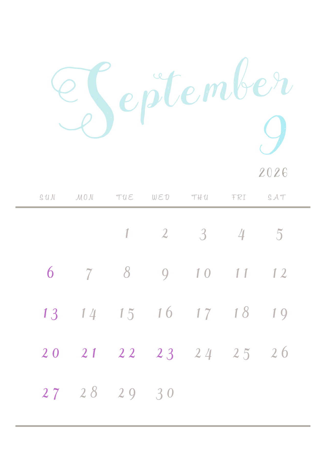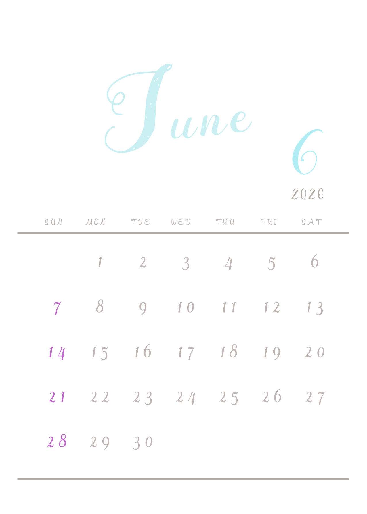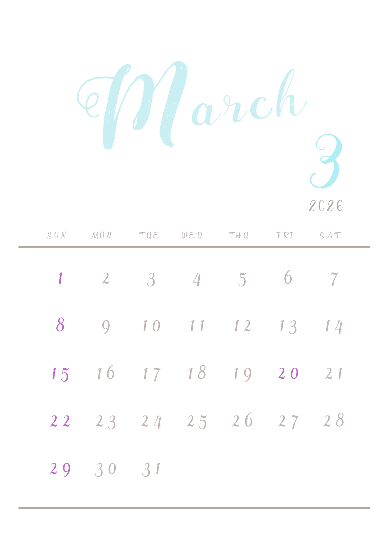 背景に淡い色をつけたシンプルでおしゃれなデザインカレンダー