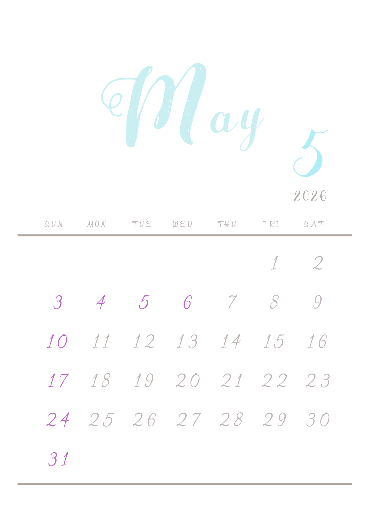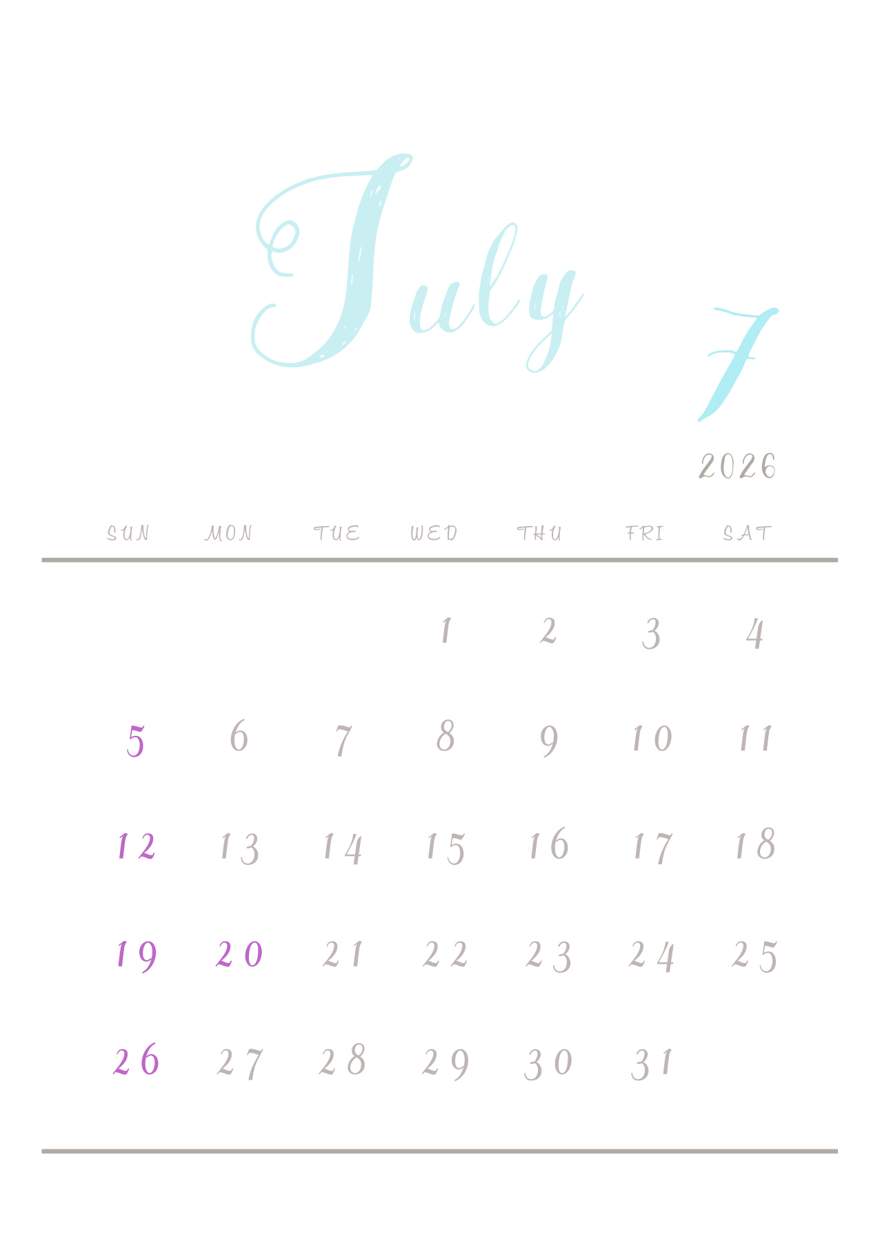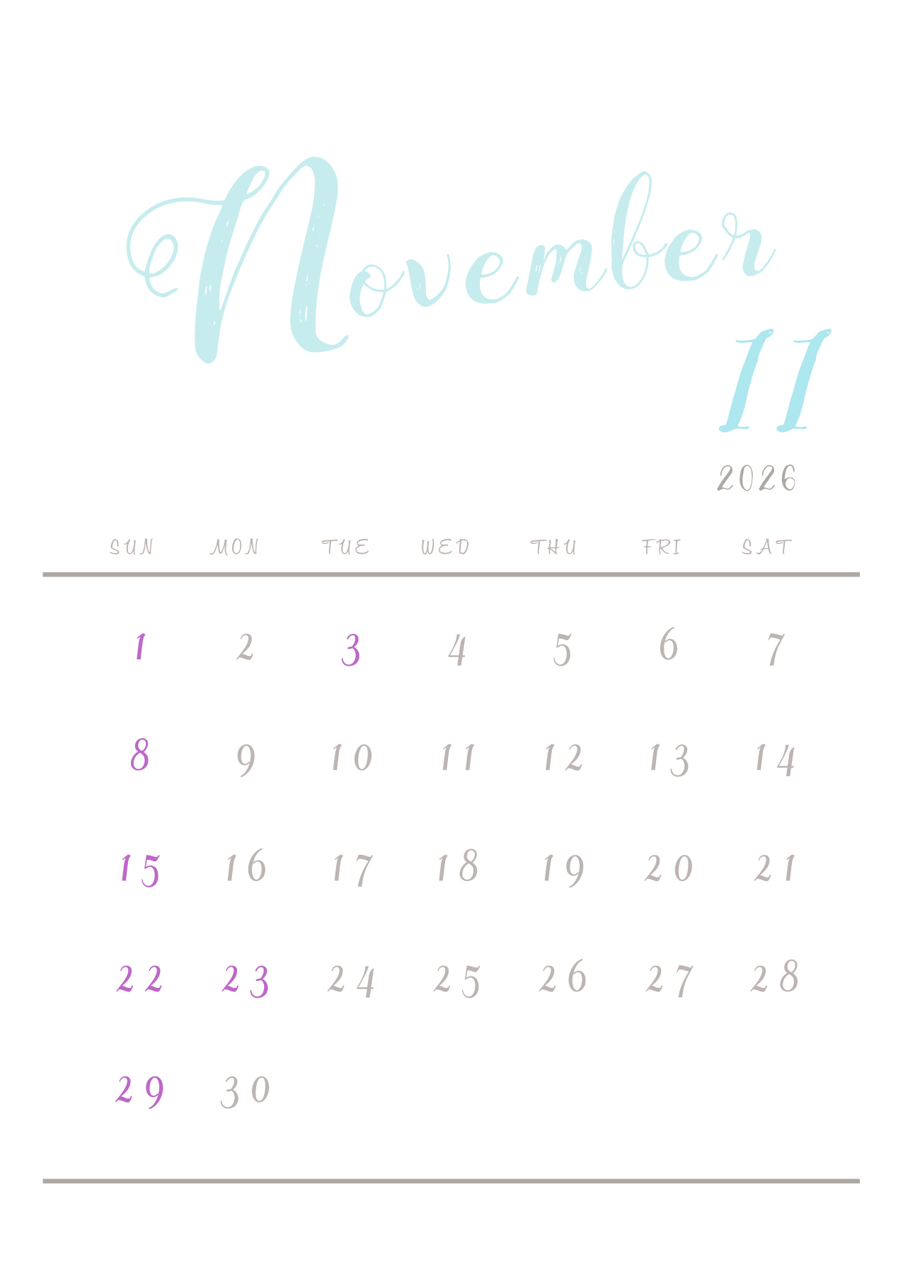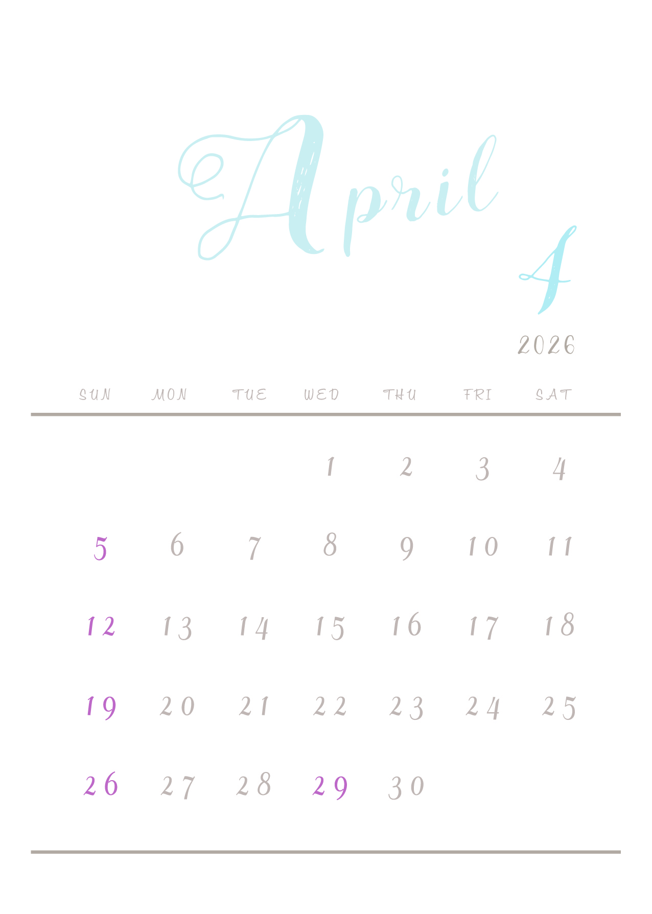 背景に淡い色をつけたシンプルでおしゃれなデザインカレンダー