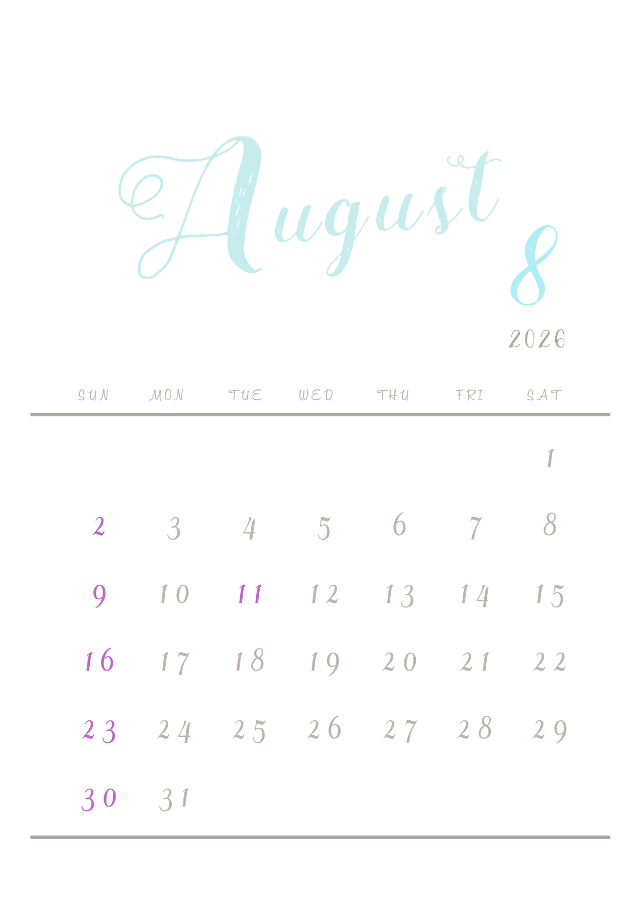 2026年(令和8年)カレンダー 縦型08-4 12ヶ月分