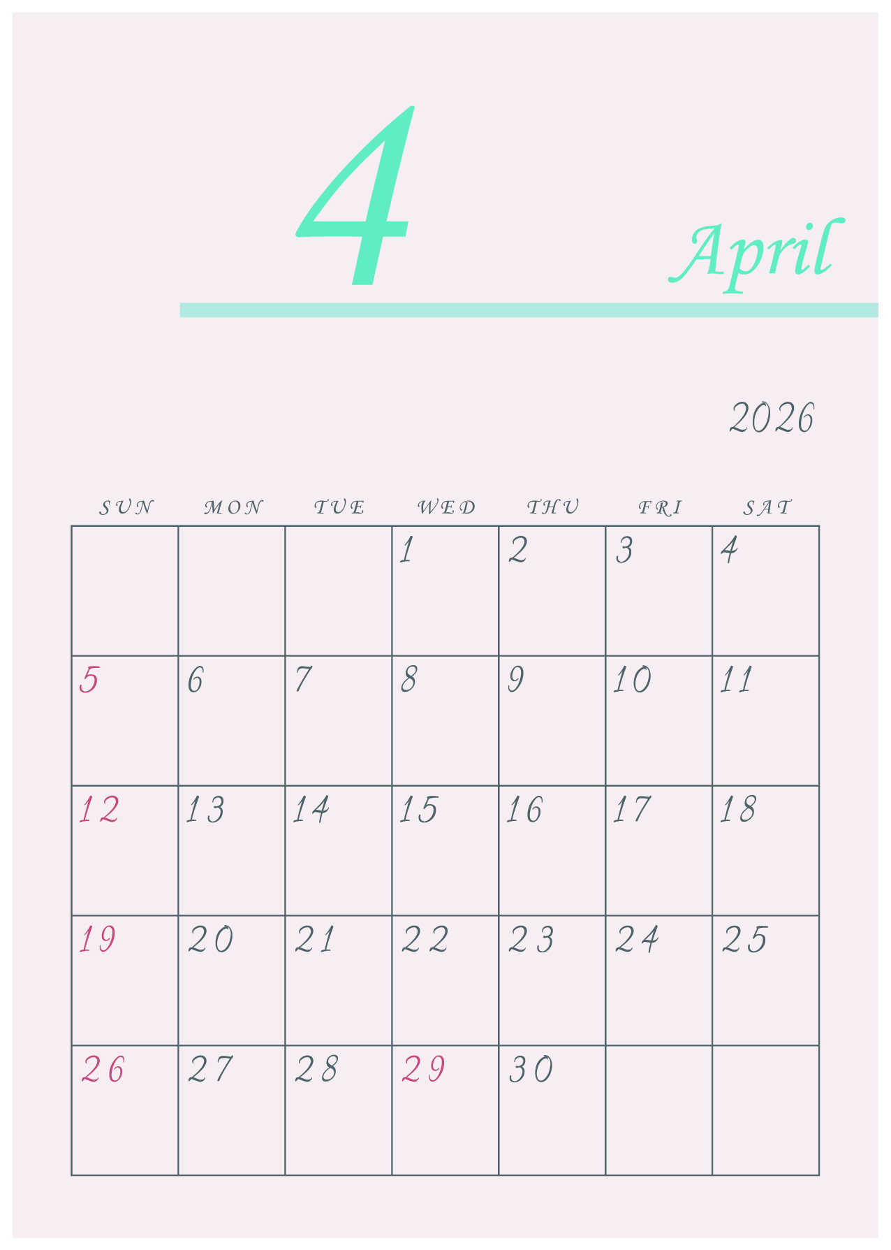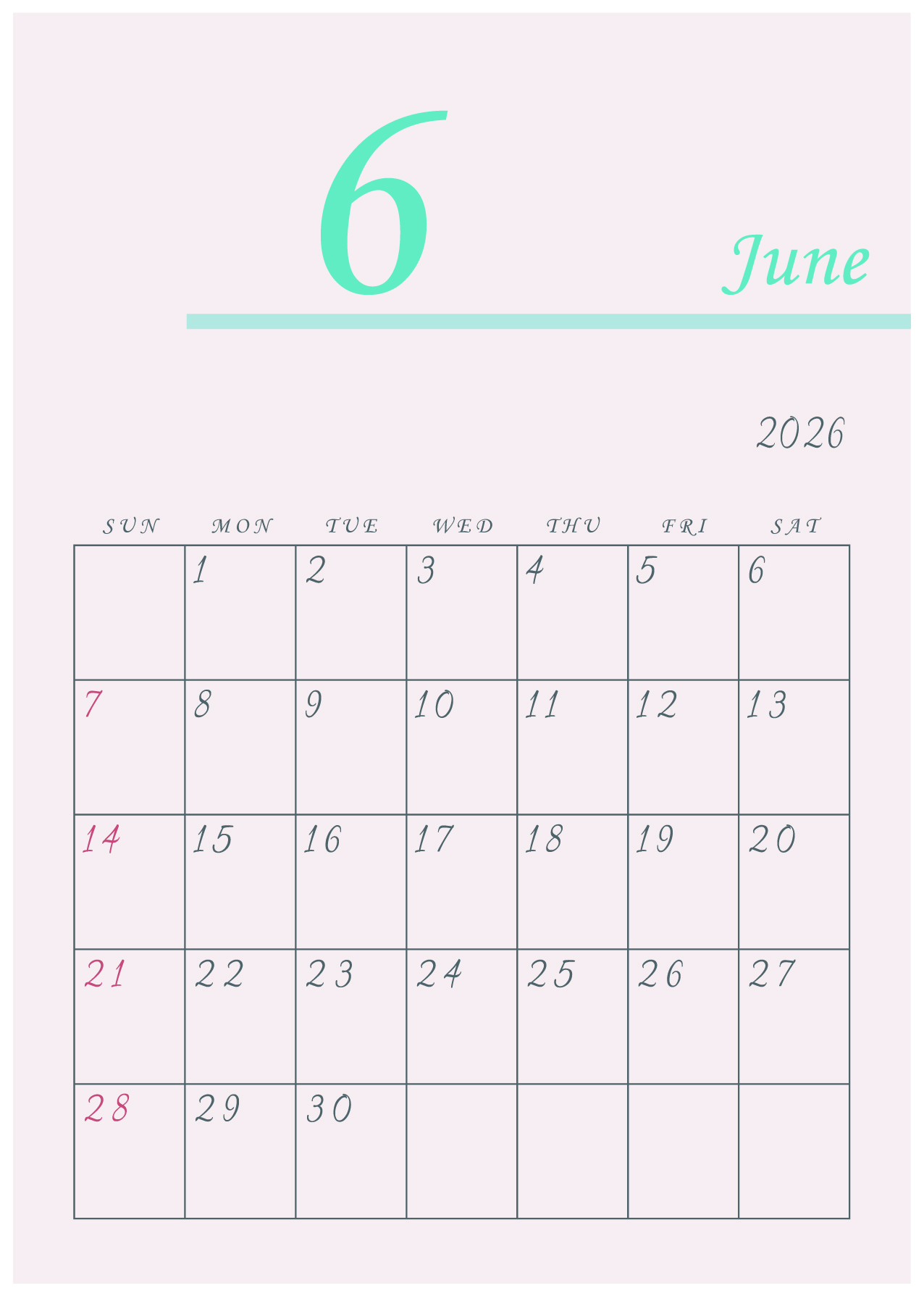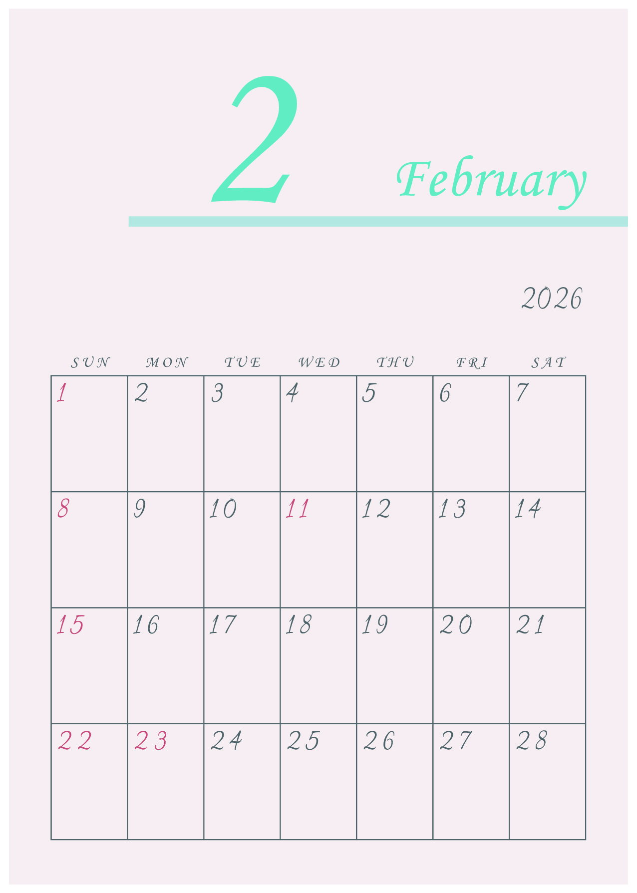 背景に淡い色をつけたシンプルでおしゃれなデザインカレンダー