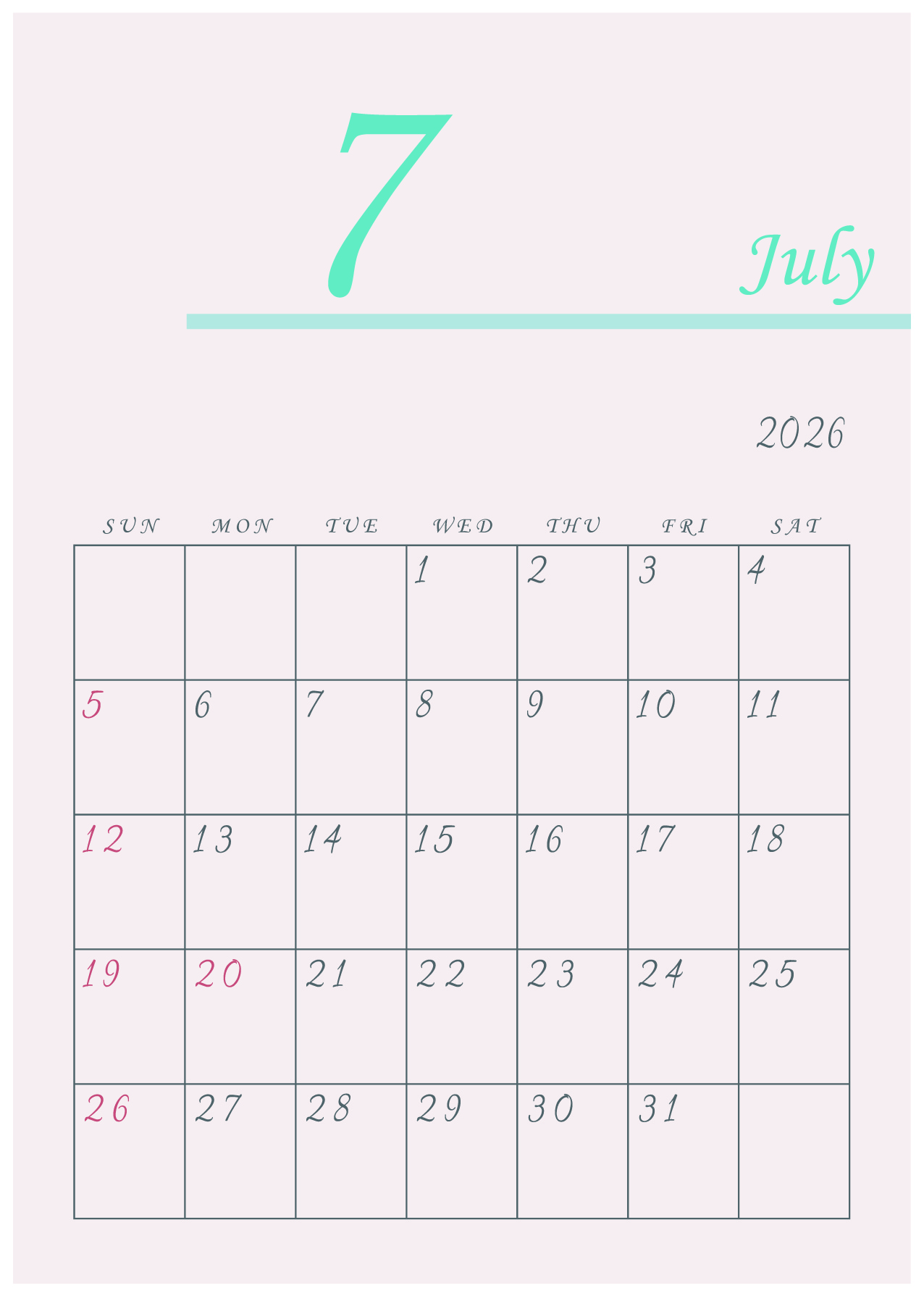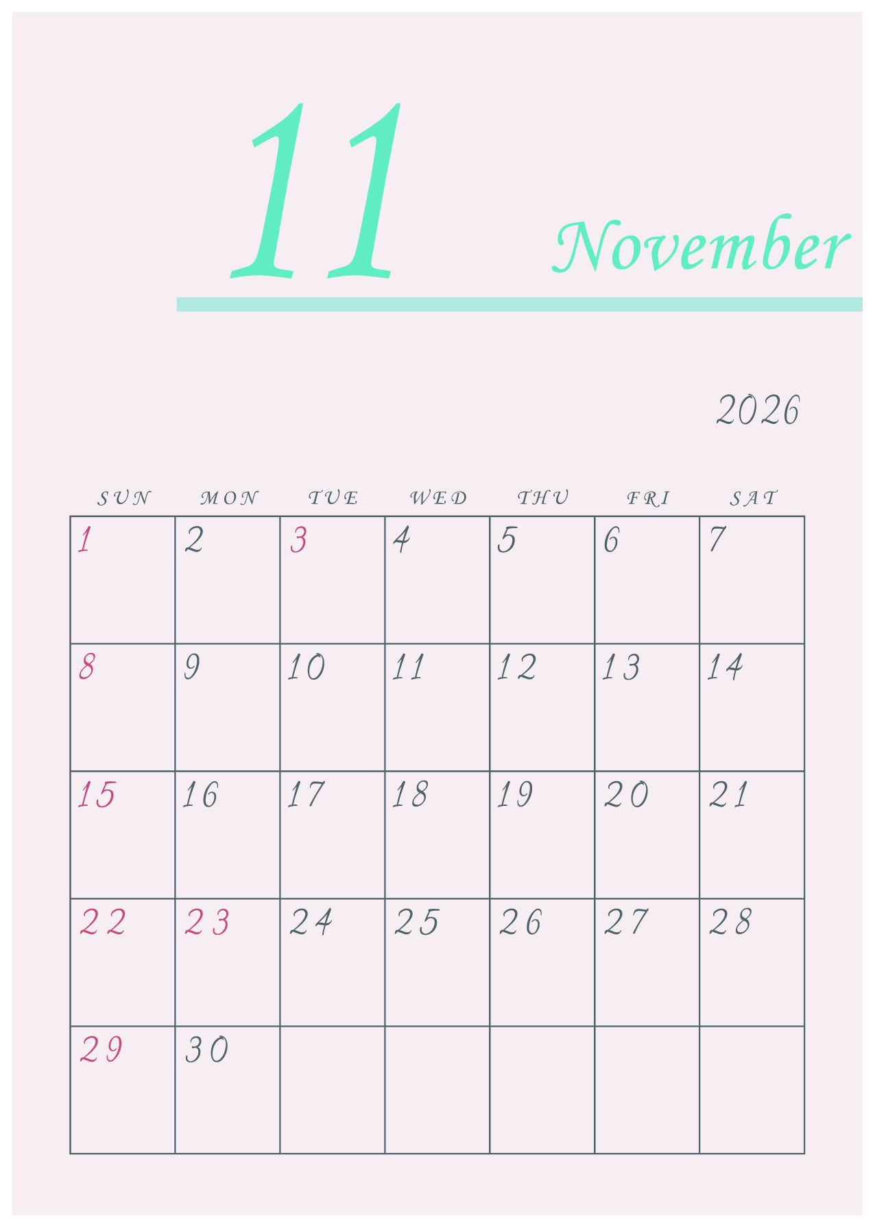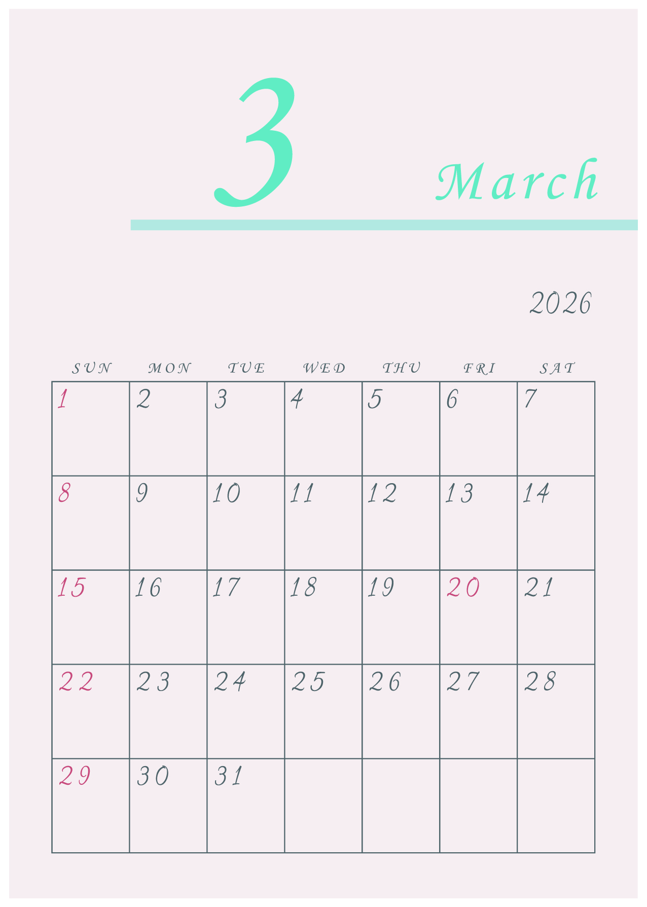 背景に淡い色をつけたシンプルでおしゃれなデザインカレンダー