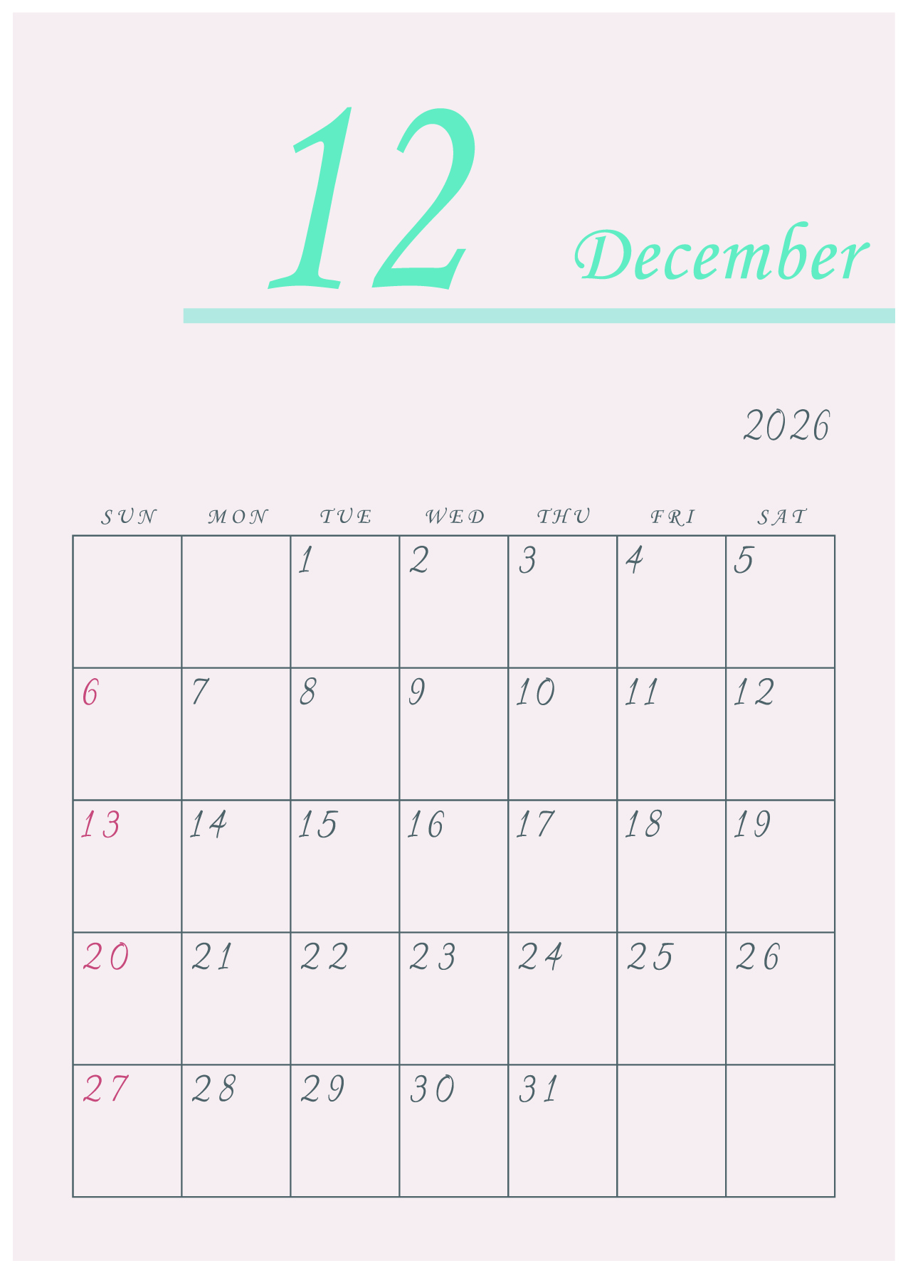 2026年(令和8年)カレンダー 縦型09-2 12ヶ月分