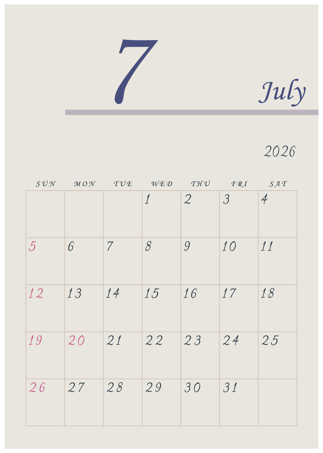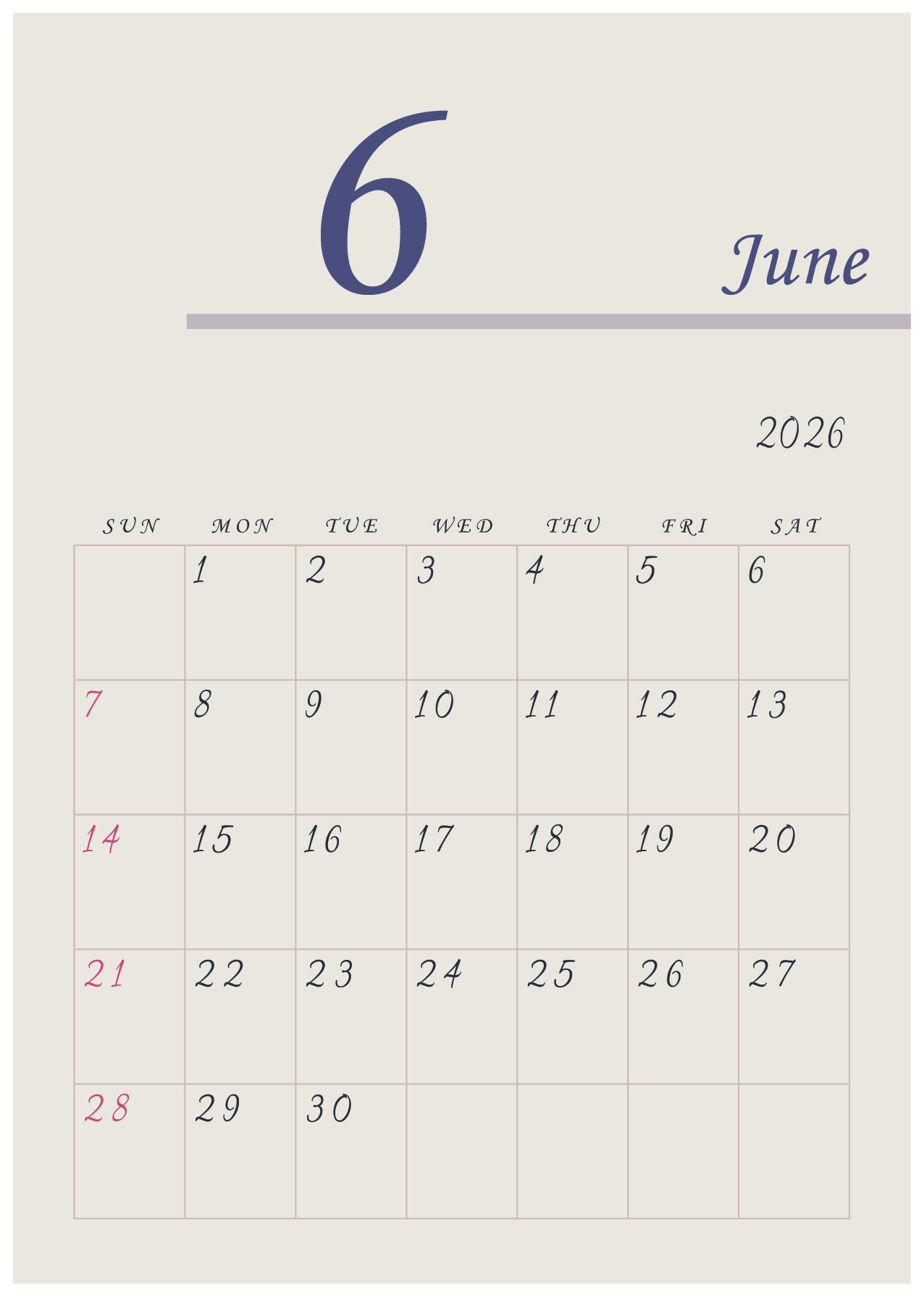 背景に淡い色をつけたシンプルでおしゃれなデザインカレンダー
