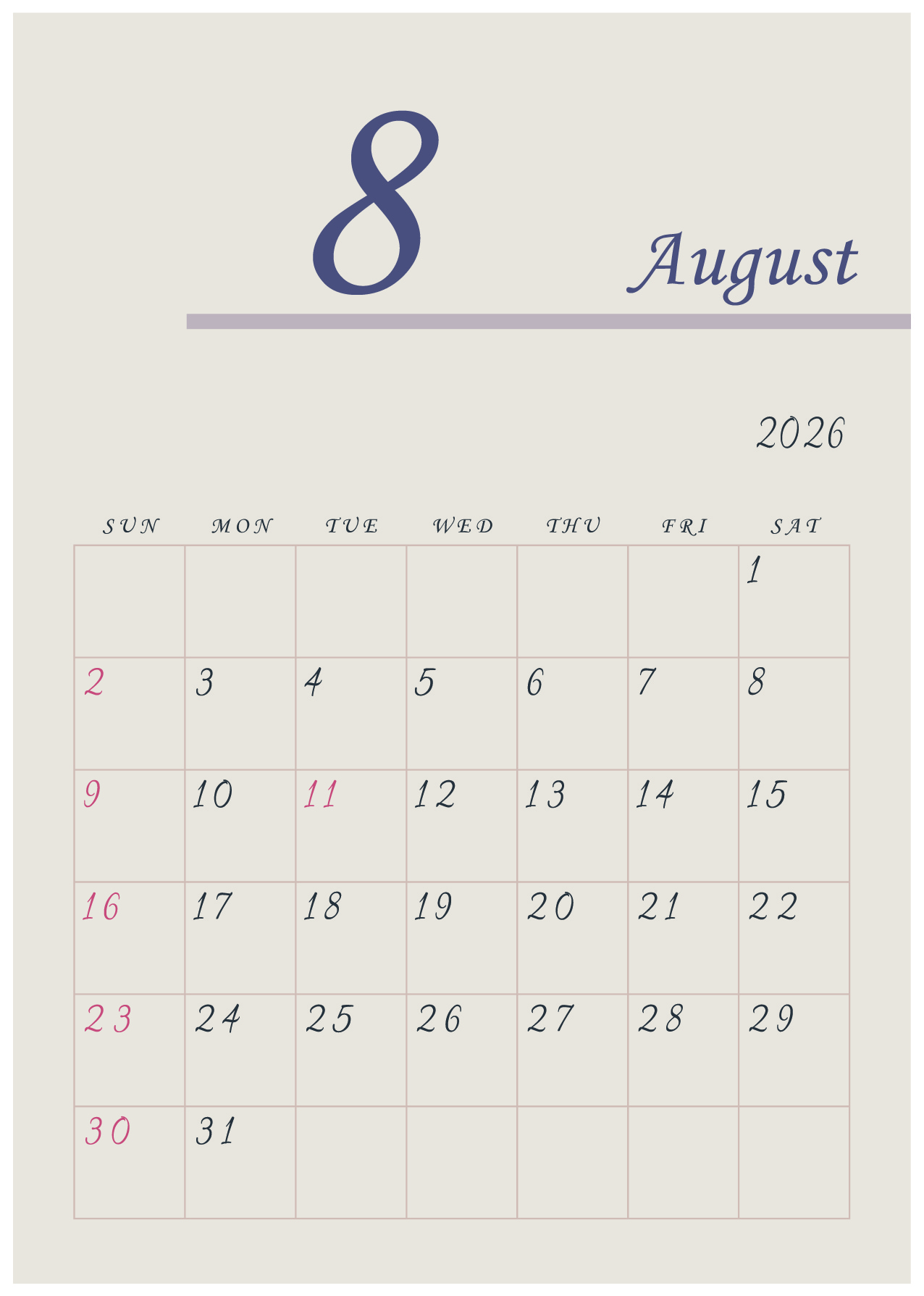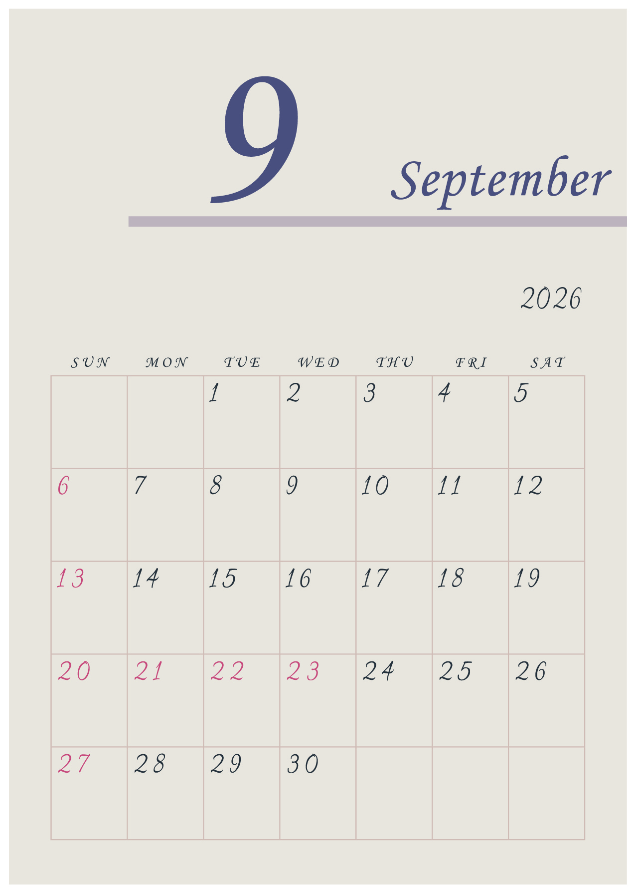 2026年(令和8年)カレンダー 縦型09-4 12ヶ月分