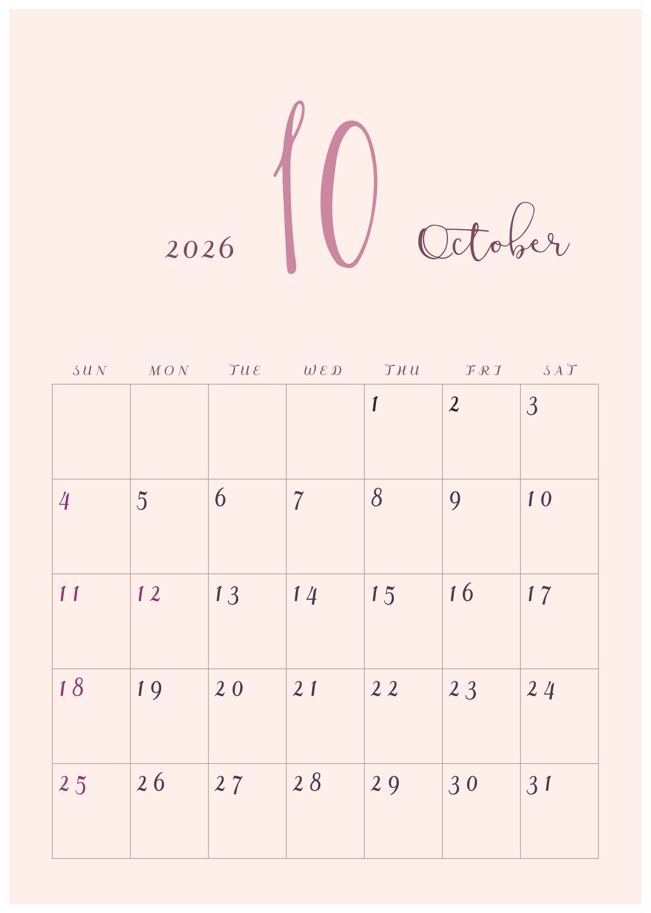 2026年(令和8年)カレンダー 縦型10-4 12ヶ月分