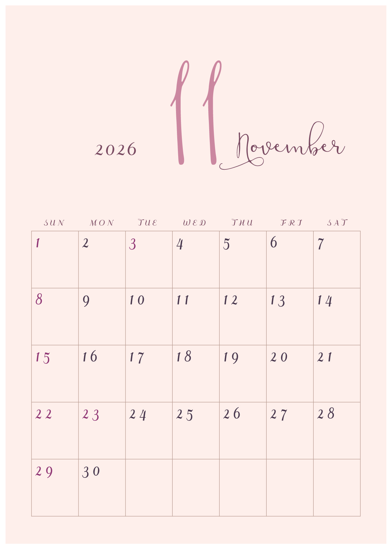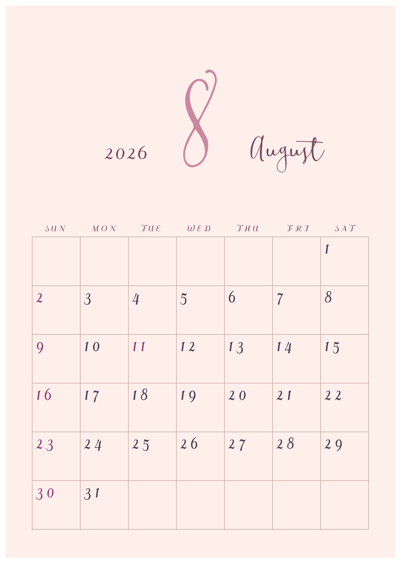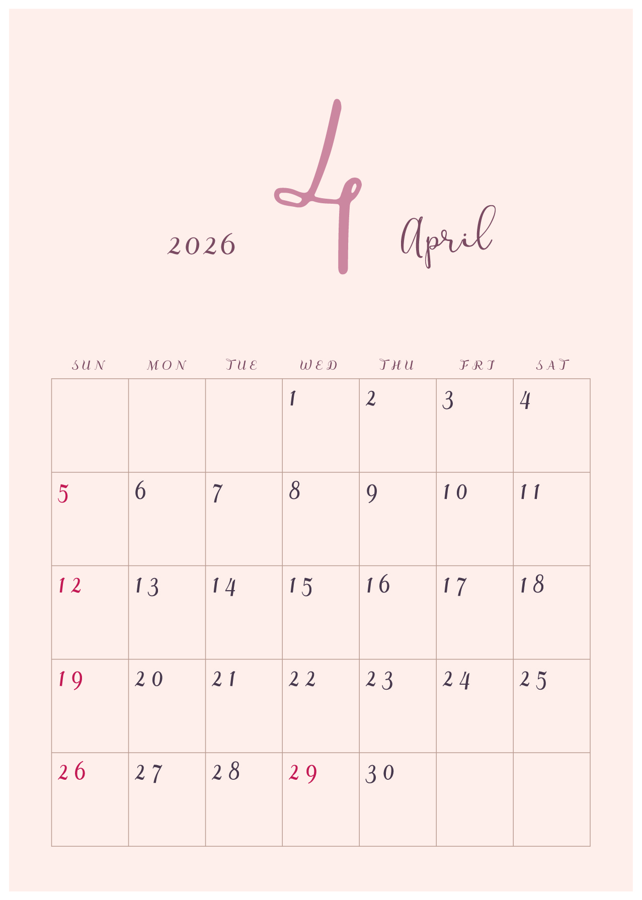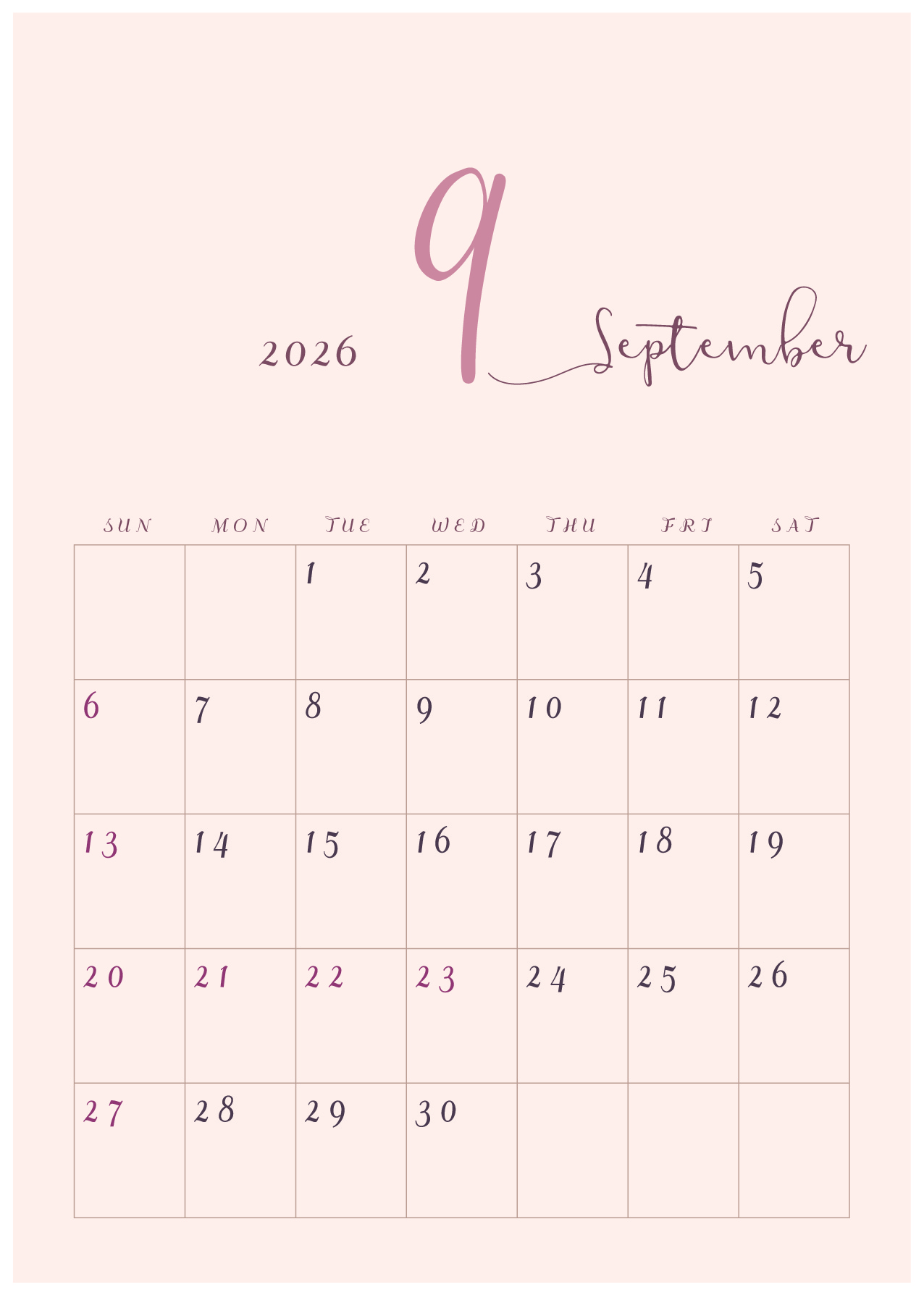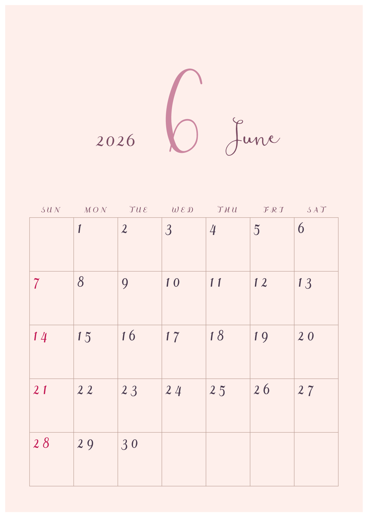 背景に淡い色をつけたシンプルでおしゃれなデザインカレンダー