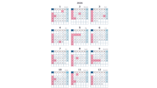 年間1月始まり 縦 2026年度(令和8年)PDF年間カレンダー10