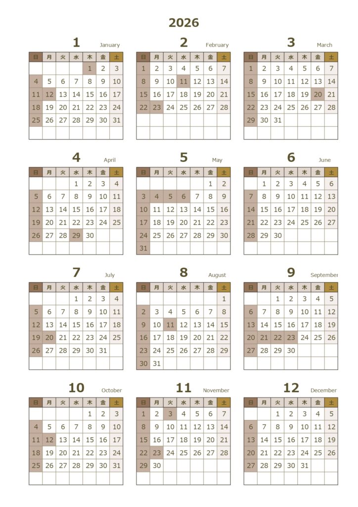 ■このPDFカレンダーは2026年(令和8年)1月から12月までの12ヶ月分です。