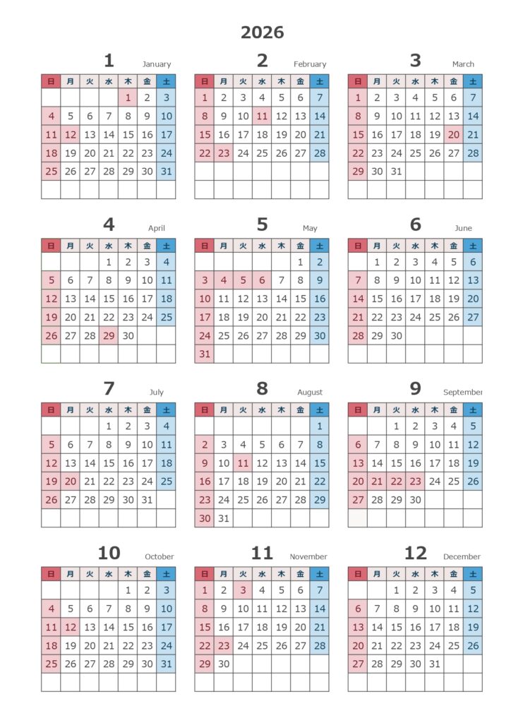 ■このPDFカレンダーは2026年(令和8年)1月から12月までの12ヶ月分です。